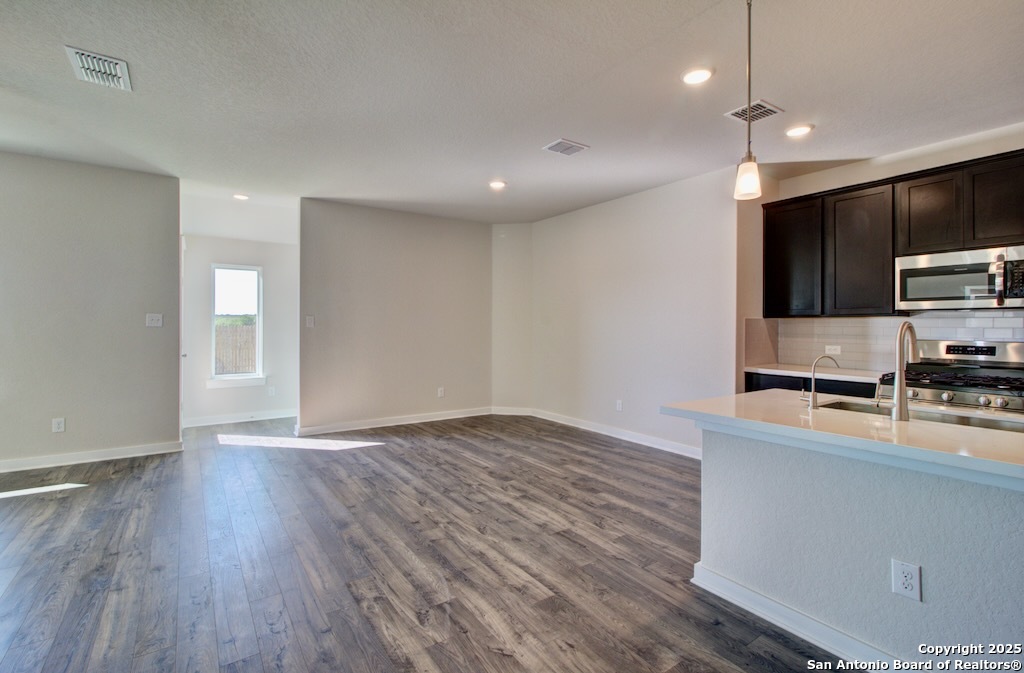 Additional Access to Laundry From Owner's Closet. Welcome home to the Driskill plan by DRB Homes, a beautifully designed quick move in home located in the highly sought after Westridge community. This single story home offers 3 bedrooms, 2 bathrooms, and 1,809 square feet of well planned living space. The open concept layout connects the kitchen, dining, and great room, creating an ideal space for everyday living and entertaining. The kitchen includes omegastone countertops, stainless steel gas appliances, an undermount sink, and ample cabinetry for storage and function. The private Owner's Suite is a relaxing retreat, featuring a ceramic tile shower, double vanity, and a private water closet. A unique feature includes an additional door from the closet to the laundry room for added convenience. Exterior highlights include a charming covered patio, 2 car garage, and elegant stone accents on the exterior. Westridge residents will enjoy upcoming community amenities like a pool, pickleball court, and playground. Schedule your private showing today this one won't last!