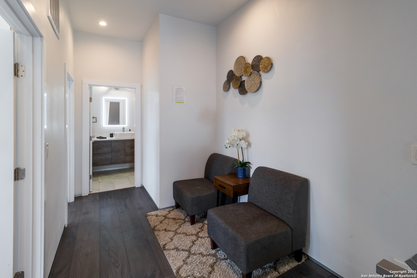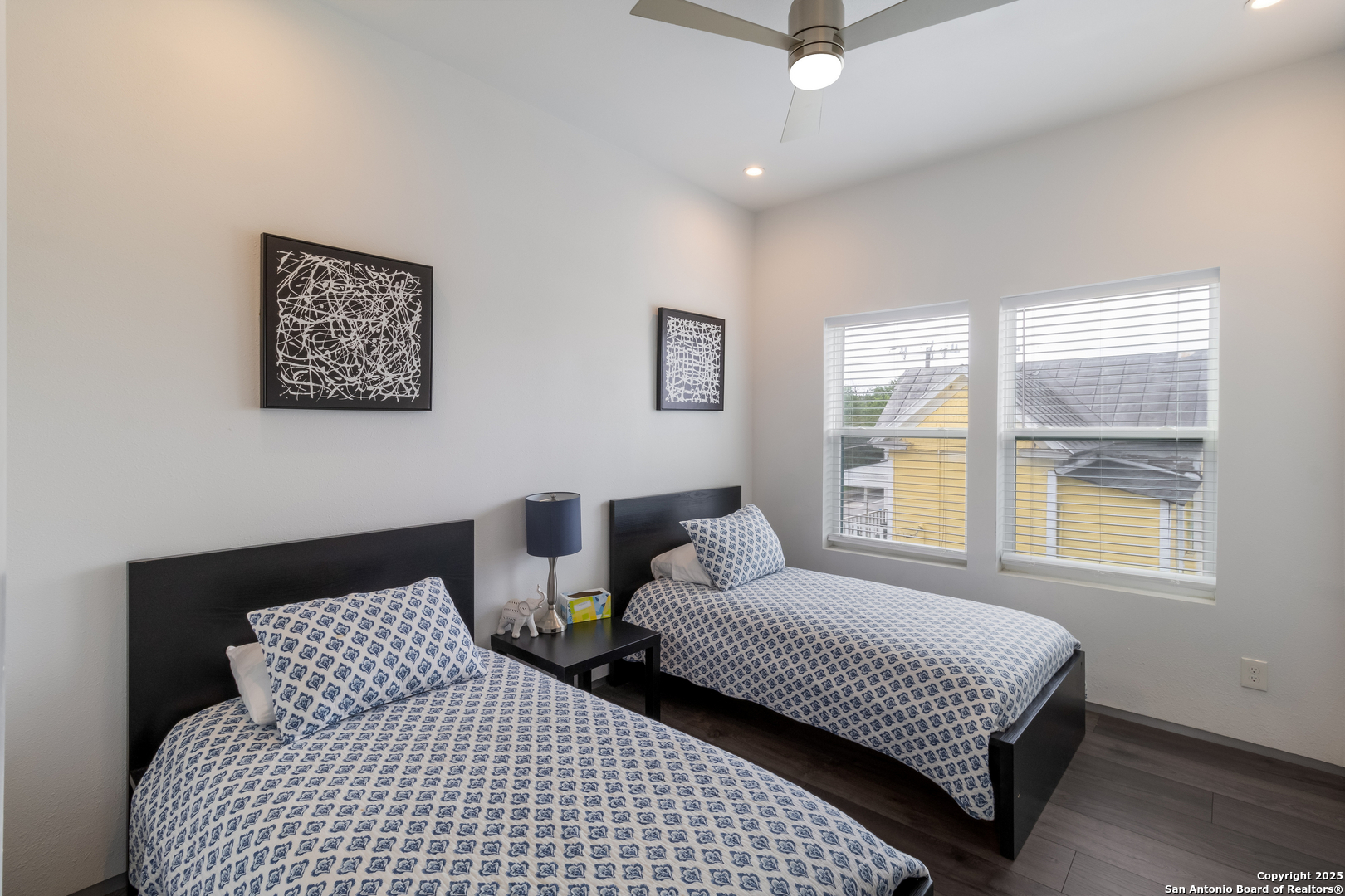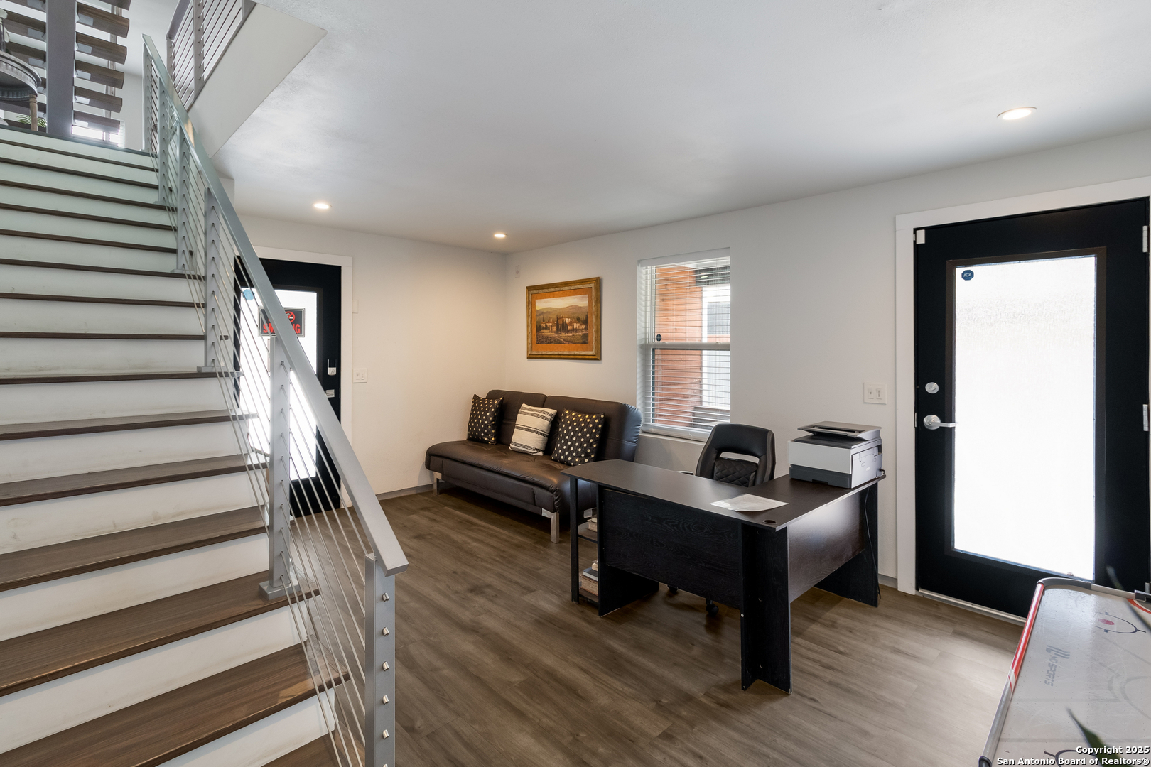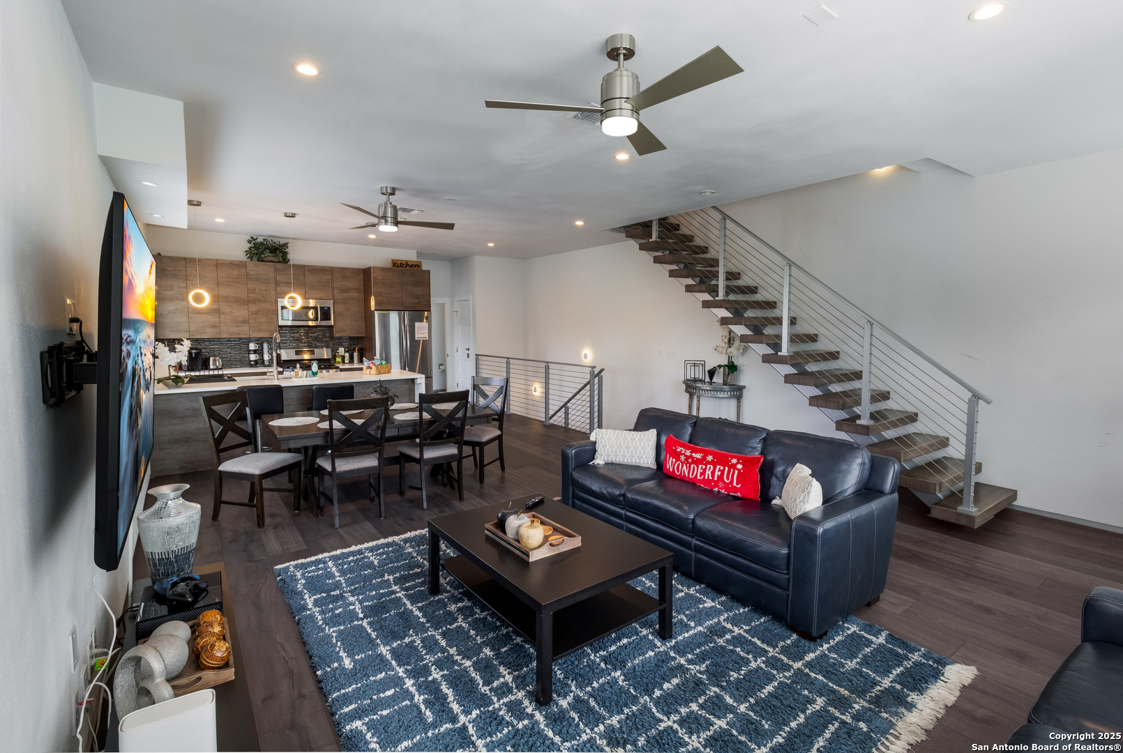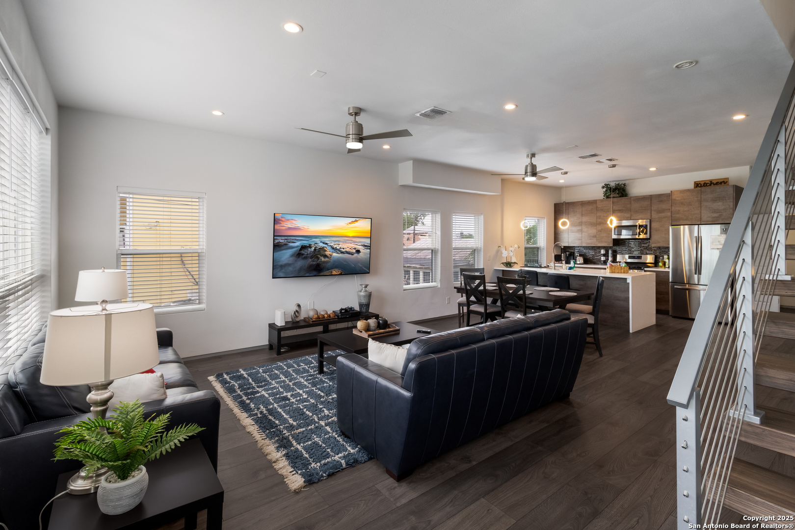 Turn-key FULLY FURNISHED luxury Air Bnb with a rooftop view of the San Antonio skyline! This exceptional 3-bedroom, 2.5-bathroom three-story condo is fully furnished and ready to generate income. Located in the heart of San Antonio, this home offers modern living with all the conveniences you could desire. The entry level features a spacious living area or flex space, perfect for a variety of uses. The second floor serves as the heart of the home, with an open living and dining area flooded with natural light, creating a welcoming space for both relaxation and entertaining. The kitchen features a waterfall counter with a breakfast bar, stainless steel appliances, and gas cooking. The third floor is dedicated to the bedrooms and full-sized bathrooms. The primary bedroom is a luxurious retreat, complete with a double vanity, modern shower, and a walk-in closet. A cozy seating area and the laundry room are also located on this floor for added convenience. The secondary bedrooms are generously sized, and the guest bathroom offers a full-sized shower and oversized vanity. Head up to the rooftop to enjoy 360-degree views of the San Antonio skyline. The rooftop terrace is perfect for outdoor dining, with plenty of seating space to take in the stunning vistas. Conveniently located within walking distance to the famous River Walk, this condo provides easy access to I-37, I-35, and I-10, offering both a prime location and ultimate comfort.