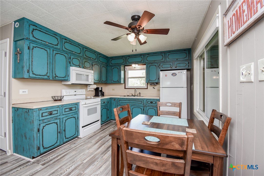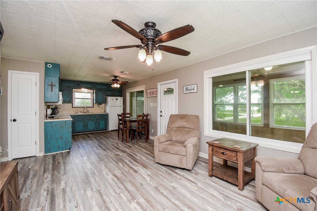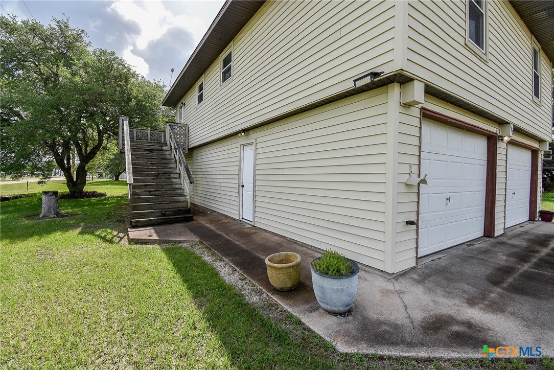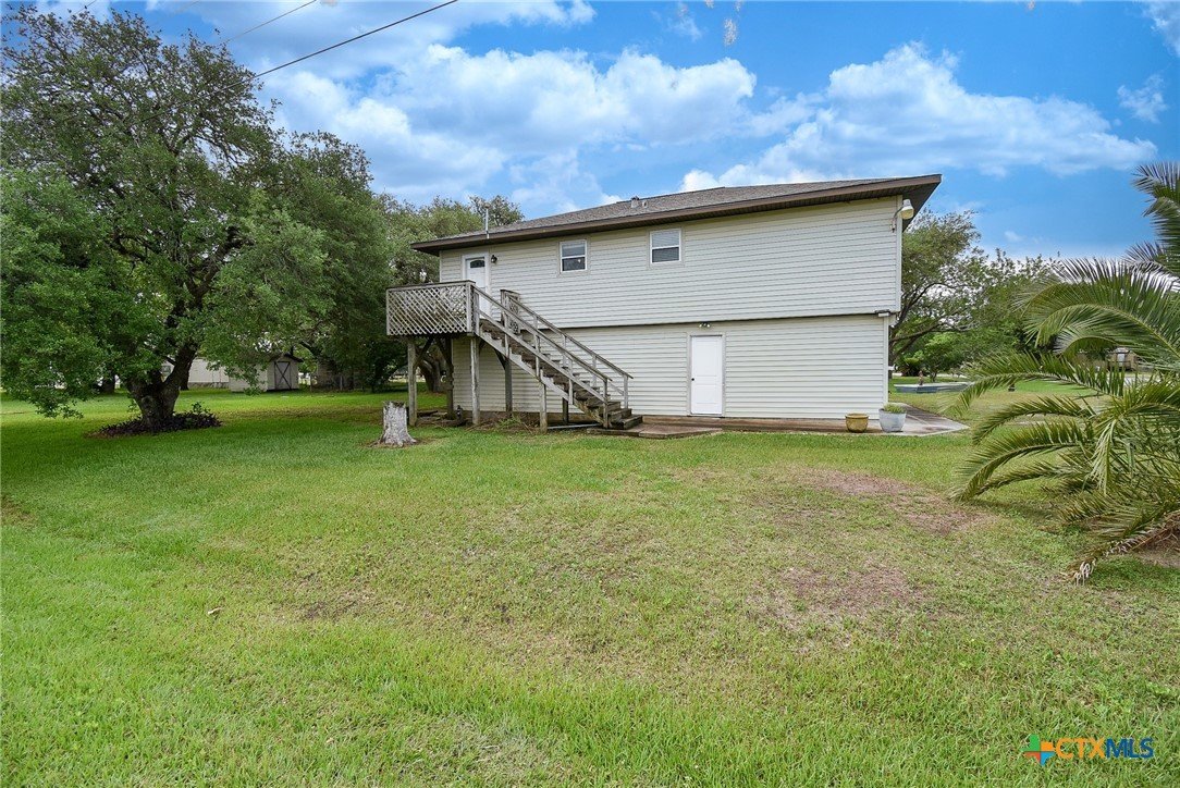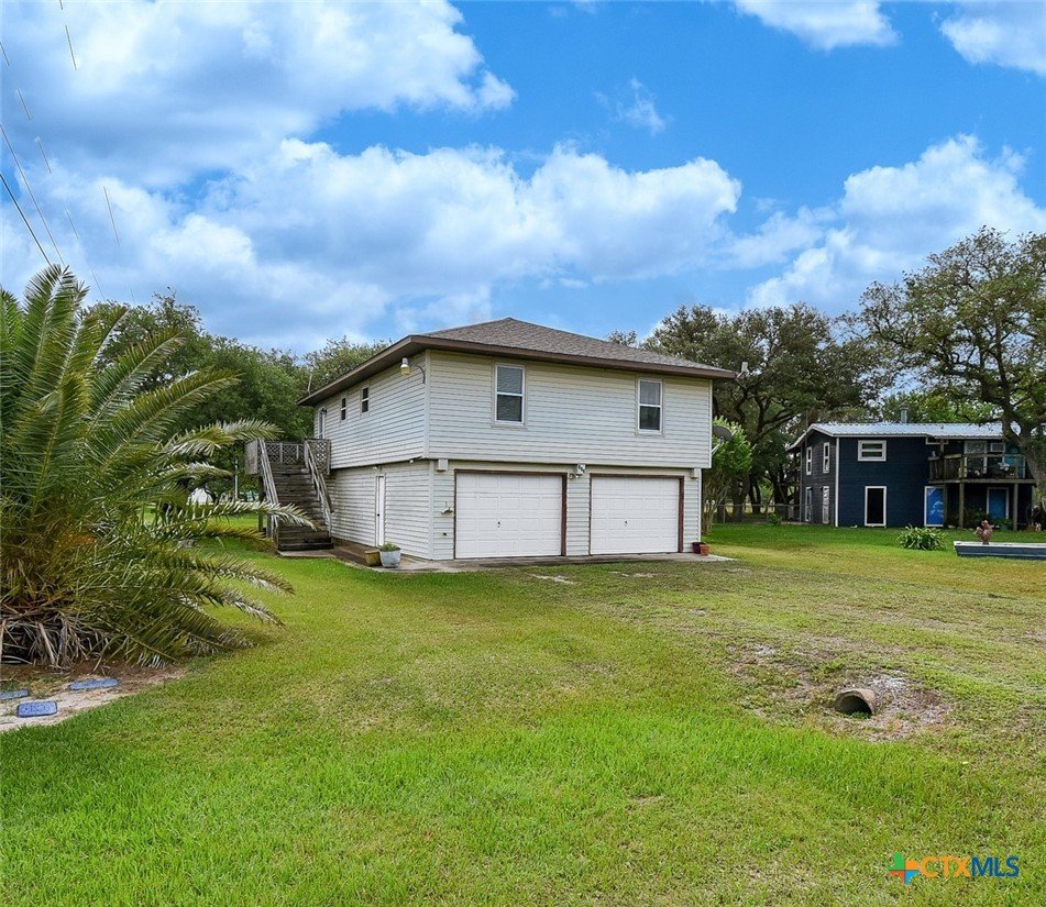Bay breeze and shade trees await at 225 Swallow Dr. in gated Cape Carancahua. This 3-bed, 2-bath home sits on two lots stretching from Swallow to Bayview with three culverts/driveways and mature shade trees. Furnished and ready to move in, you can drop your bags and enjoy the coastal lifestyle. Upstairs: open-concept living, kitchen and dining, two bedrooms, full bath, indoor laundry and an enclosed porch with wall-to-wall windows overlooking the backyard. Downstairs: third bedroom, second bath, 2-car garage and workshop. Updates include new flooring (2021), new windows with lifetime warranty (2021), new exterior doors (2021), refrigerator (2022) and interior doors (2023). Roof replaced after Harvey with windstorm-rated shingles; A/C 2017. Community amenities: Gated Entry, Community Center, 2 Pools, 3 Lighted Piers, Boat Ramp, Pavilion, Tennis, Volleyball, Playground and Nature Preserves. Ideal as a weekend retreat or primary home. Ready to show.