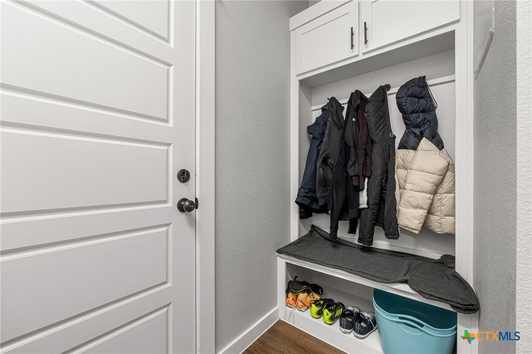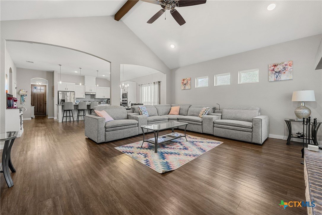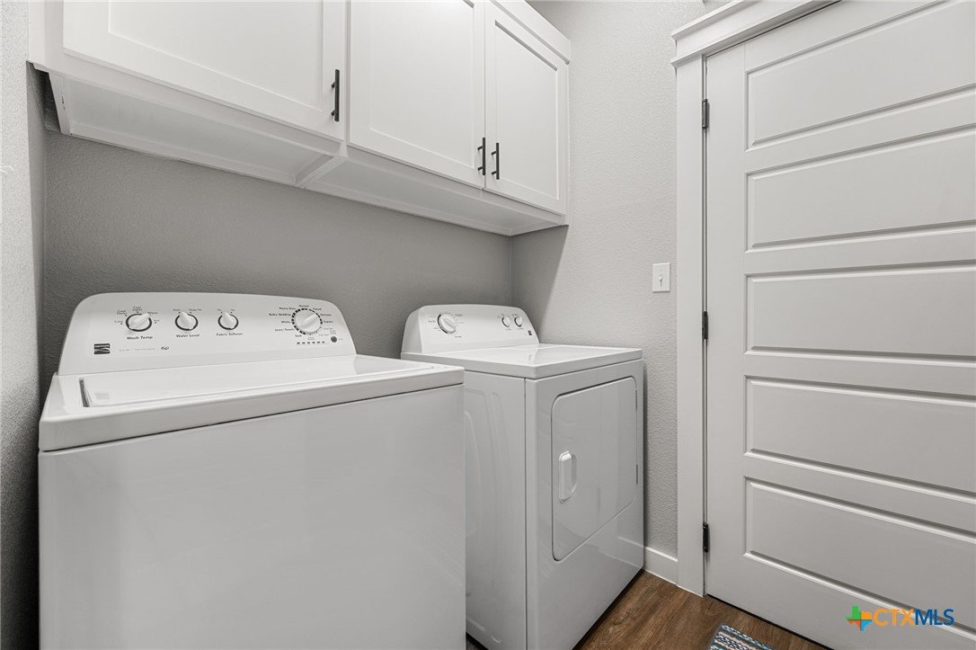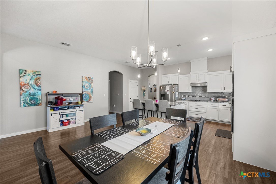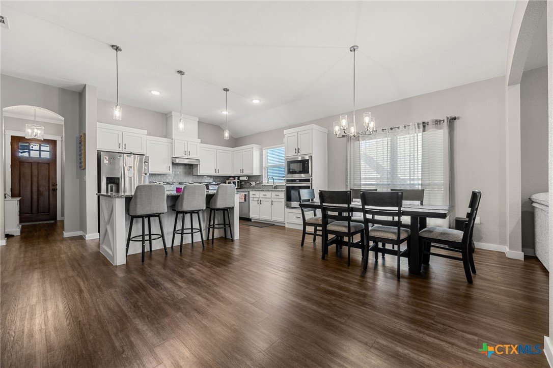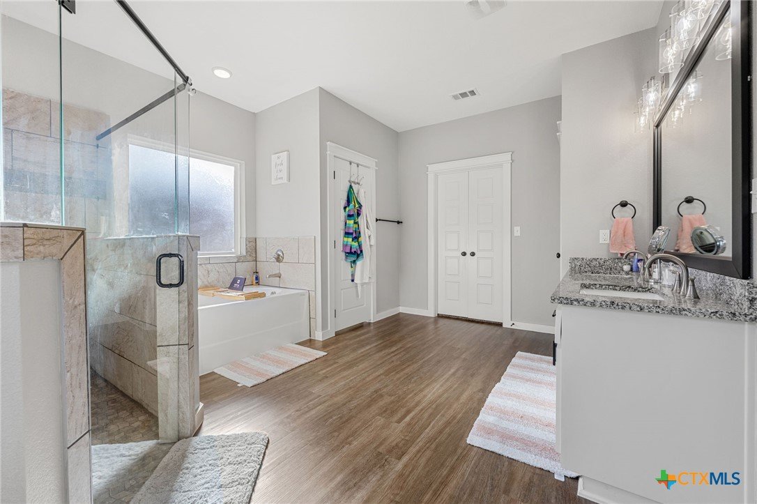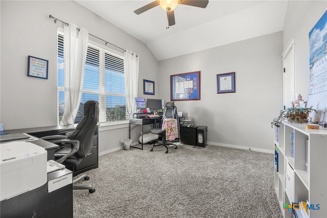 Welcome to this beautiful five bedroom, three bathroom, three car garage home in the Enclave at Warriors Legacy, offering a spacious layout and thoughtful design throughout. Exterior features include an irrigation system, gutters, concrete steps leading to the front entry, and a third garage bay that is fully separated by a framed wall, creating a private, enclosed space ideal for a traditional garage, gym, workshop, or flex room. The backyard was designed to complement the natural incline, creating a terraced outdoor retreat while still preserving a generous, level yard for everyday use. Enjoy the elevated, covered wood deck, ideal for relaxing or entertaining, along with a storage building at the upper level. Inside, a guest bedroom with a walk-in closet and a nearby full bathroom sits just off the entry, making it perfect for guests, multigenerational living, or a home office. The home opens into a spacious great room connecting the kitchen, dining, and living areas. The living room features a centered wood-burning fireplace, while the dining space comfortably fits a Texas-sized table. The kitchen offers a massive island, custom cabinetry, granite countertops, separate oven and cooktop, built-in microwave, vent hood, and oversized pantry. The primary suite provides a private retreat with a spa-like bathroom featuring a Texas-sized walk-in shower, double vanities, a soaker tub, and a large walk-in closet. The spacious layout allows room for a sitting area, creating a true owner’s retreat. Two additional bedrooms are located downstairs with great natural light and closet space. All bathrooms and the kitchen feature granite countertops. Upstairs includes a large fifth bedroom currently used as a movie room, plus a 10.5 by 31 foot unfinished attic with extensive decking for storage, along with additional storage throughout the home. Schedule your showing today!