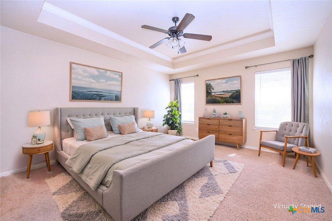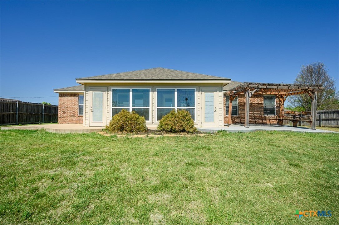 Set on a spacious three quarter-acre, this home offers room to breathe and a setting that feels just a little more private than most. Step inside to a great room where wood laminate floors and a tray ceiling create a warm, inviting space to gather or unwind. Just beyond, the dining room flows easily into the kitchen, making everyday meals and special occasions feel effortless. The owner’s suite is a true retreat, featuring its own tray ceiling and a bathroom designed for comfort with an oversized shower and a Texas-sized walk-in closet thoughtfully outfitted with plenty of organization solutions. A sunroom adds even more versatility, perfect for morning coffee, hobbies, or simply enjoying the natural light year-round. Out back, the extended patio invites you to slow down and stay awhile, with a pergola-covered section that’s ideal for relaxing evenings or weekend get-togethers. With generous space inside and out, this home blends comfort, function, and a setting that’s easy to enjoy every day.
