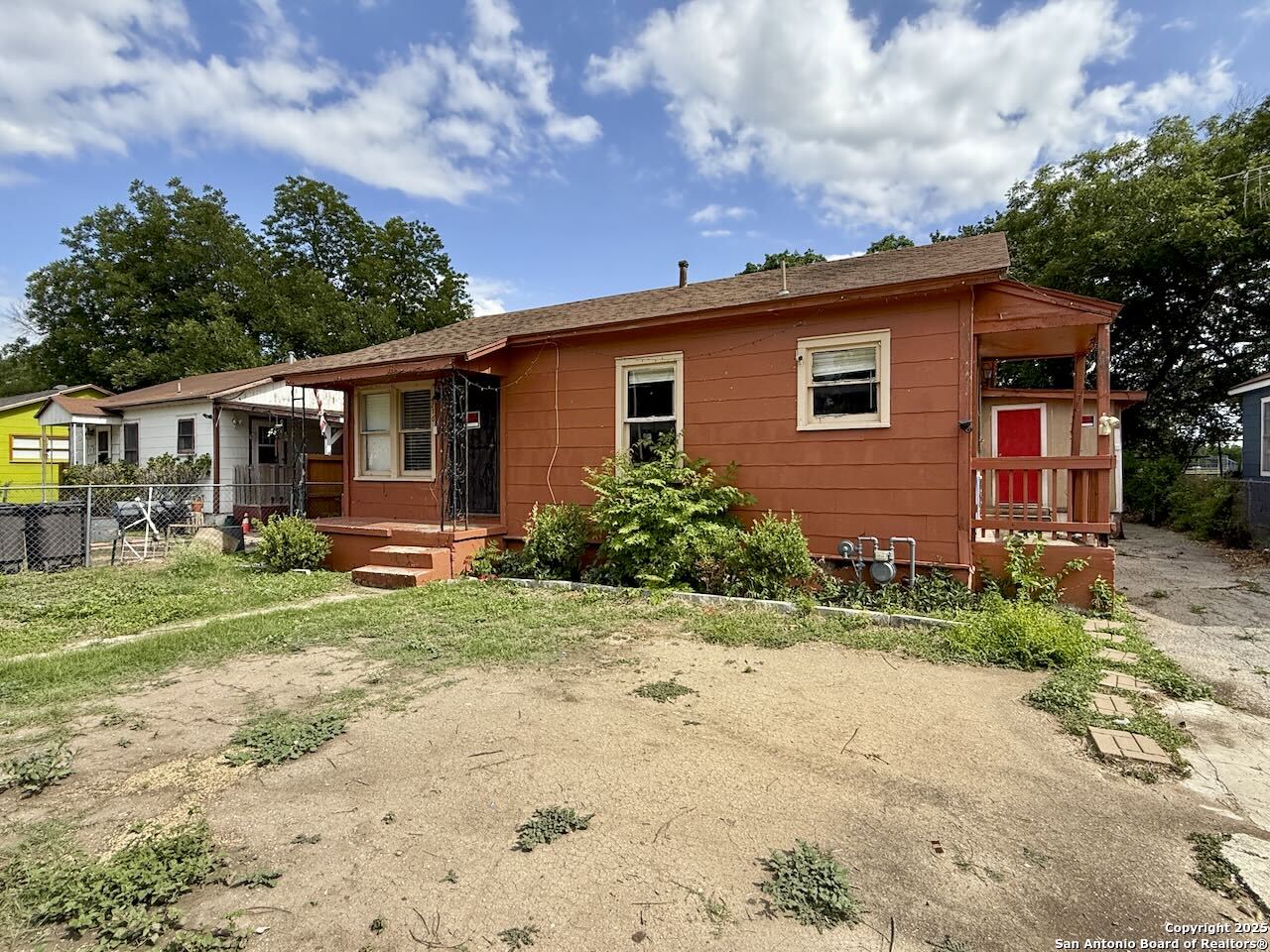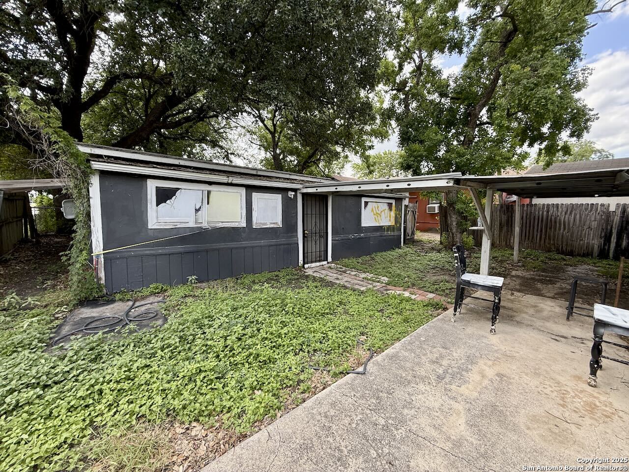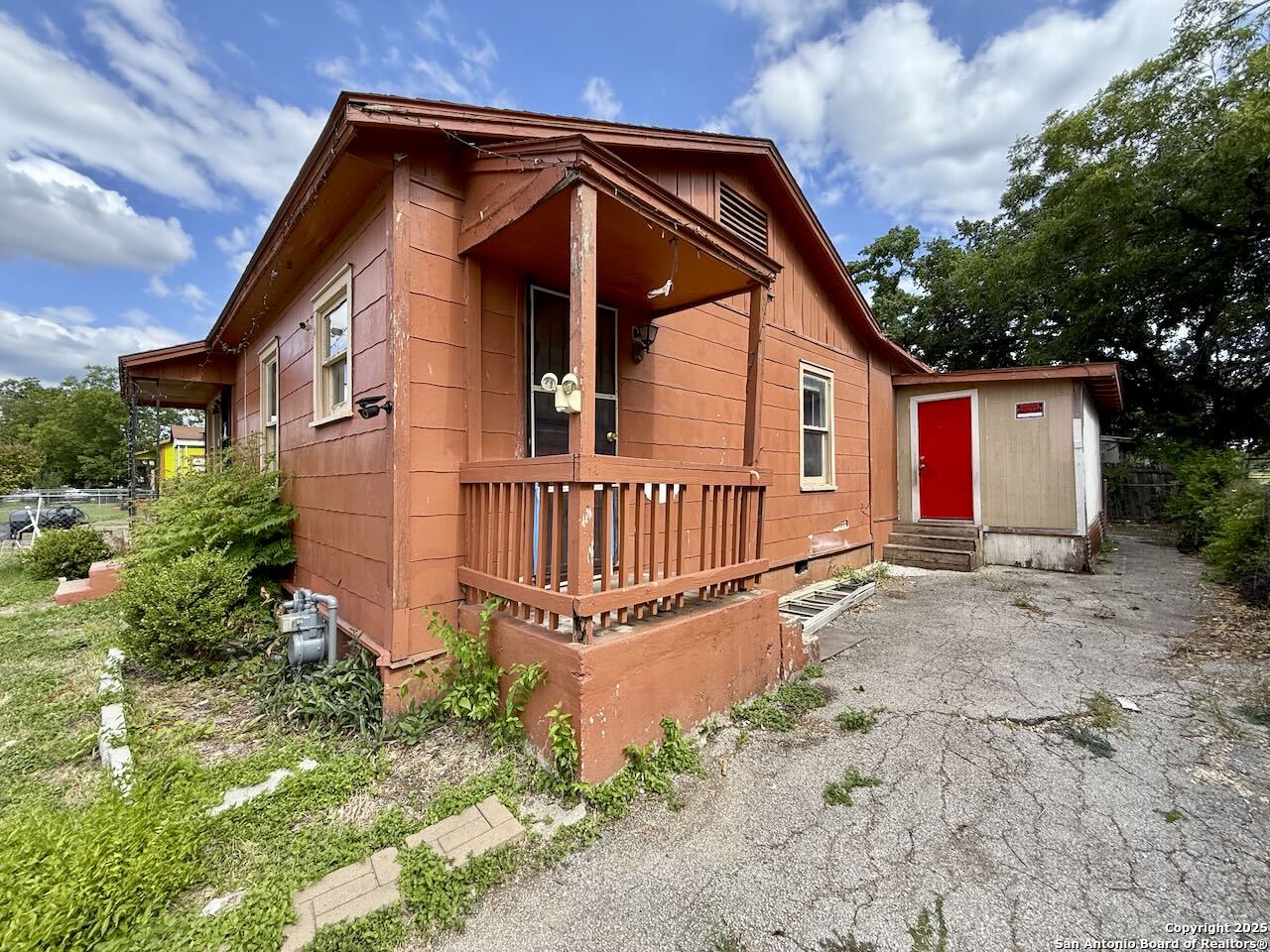 The property needs work and is being sold as is, perfect for rehab, renovation, or rental. It presents a unique opportunity in a growing area near downtown San Antonio. The main house features three bedrooms and two bathrooms, ready for updates to unlock its full potential. In addition, a separate structure includes its own kitchen, living area, storage space, and a covered two-car carport-ideal for rental income, guest quarters, or multigenerational living. Rear alley access from Culberson Ave provides added privacy and the potential for a separate entrance to the back unit. Located just 5 to 6 miles south of downtown in the Quintana/Southtown area, the property is close to the River Walk, Market Square, and a variety of local cultural attractions. Public transit, shopping, and dining options are all nearby, offering convenience for residents and tenants alike. This is an excellent opportunity for investors, developers, or anyone looking to add value in a centrally located and rapidly evolving part of San Antonio.
