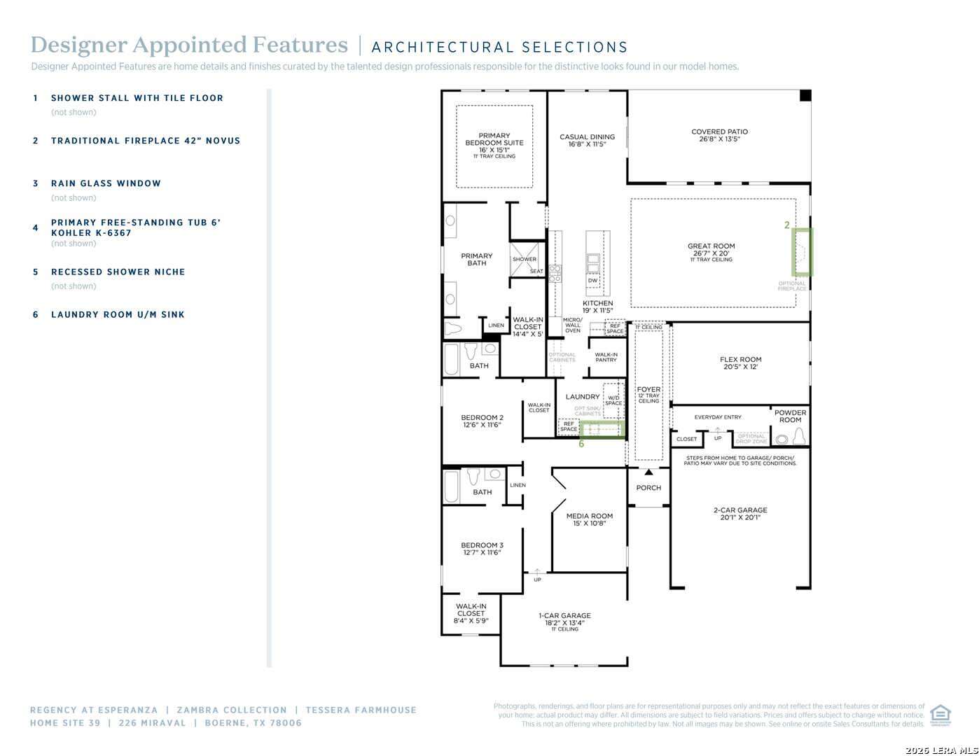 MLS# 1961992 - Built by Toll Brothers - Dec 2026 completion! ~ Beautifully designed to make an impression, the Tessera features an expansive great room with tray ceiling, a lovely focal point for the main living areas. Overlooking a large covered patio, the airy casual dining area is set alongside the well-designed kitchen, offering a large center island with breakfast bar, plenty of counter and cabinet space, a convenient workspace, and a sizable walk-in pantry. Defining the superb primary bedroom suite are a beautiful tray ceiling, a generous walk-in closet, and a splendid primary bath with dual vanities, a large luxe shower with seat, linen storage, and a private water closet. Secondary bedrooms feature walk-in closets and private baths, and are central to an ample media room. Additional highlights include a spacious flex room, a convenient powder room, an everyday entry, a centrally located laundry, and plenty of additional storage. Disclaimer: Photos are images only and should not be relied upon to confirm applicable features.