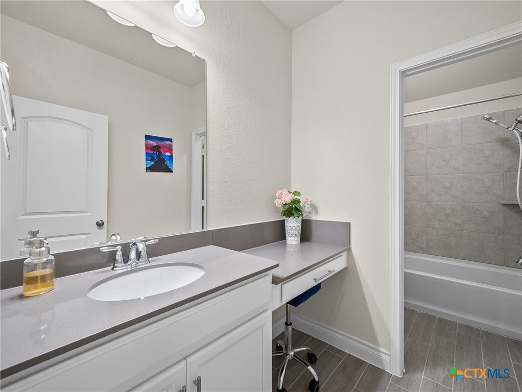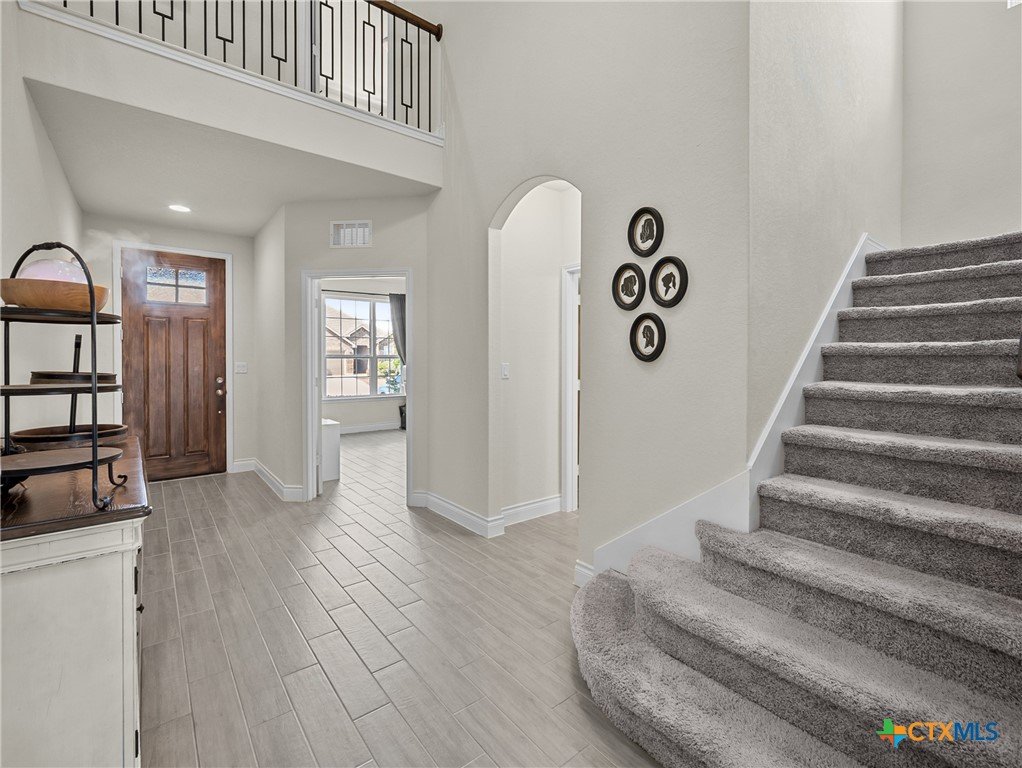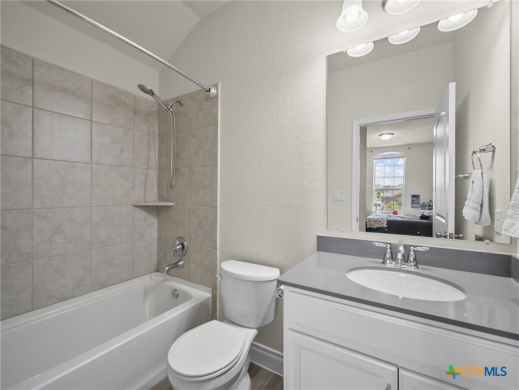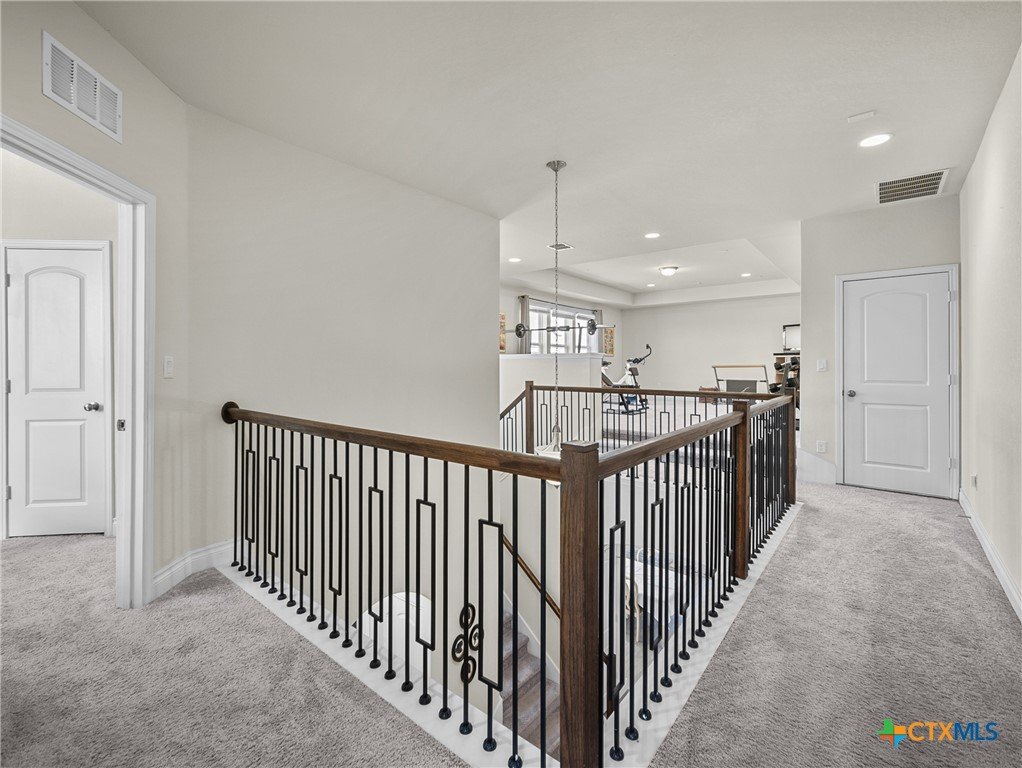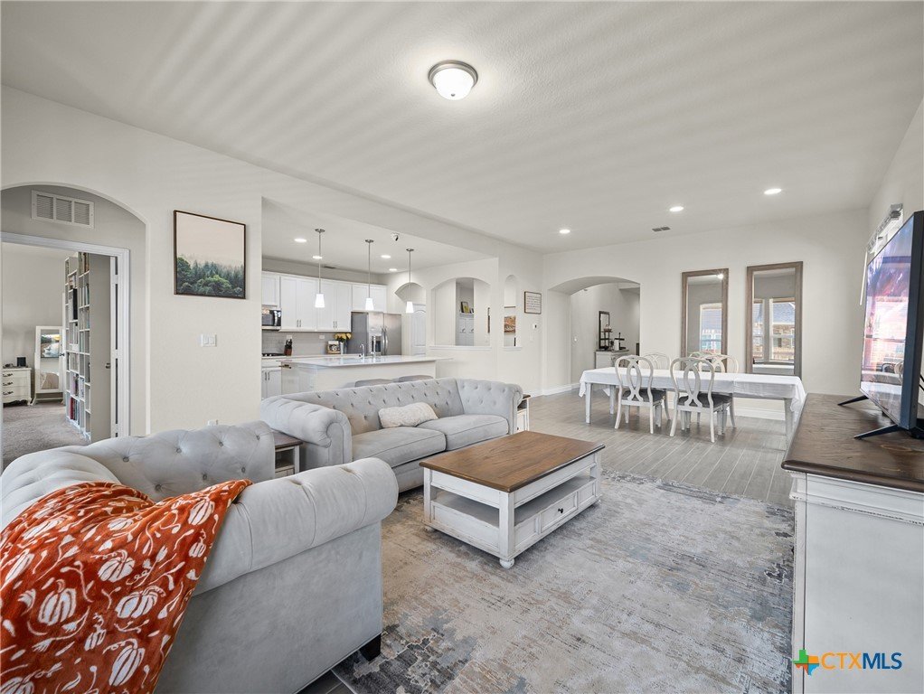 The best value per square foot in Veramendi right now. This Pulte-built, four-sided masonry home delivers the durability buyers want, paired with a layout that actually works for everyday living. From the moment you walk in, it flows. A private study with glass French doors sits just off the entry, opening into a bright, connected living, dining, and kitchen space with soaring ceilings, wood-look tile flooring, and natural light throughout. The kitchen is built for real life, with white cabinetry, subway tile backsplash, Corian countertops, a large island, double ovens, and a gas range designed for both daily use and gathering. The downstairs primary suite offers privacy and function, featuring dual walk-in closets, elevated vanities, and an expanded walk-in shower. Upstairs, a large flex space adds flexibility for a gym, media room, or second living area, along with three additional bedrooms, including one with a private ensuite. A 2.5-car tandem garage provides the extra space most homes lack, ideal for storage, a workshop, or keeping a third vehicle or gear tucked away. Step outside to an extended covered patio and landscaped backyard designed for easy enjoyment without extra upkeep. Located just a short walk to Veramendi Elementary, with quick access to I-35, downtown New Braunfels, Gruene, and community amenities including trails, parks, and The Ledge pool. Timing matters - Move in by Memorial Day, settle in over the summer, and start the next school year already in place. And for qualified buyers, there’s a strategic advantage...assume the current VA loan, offering potential long-term savings compared to today’s market rates.