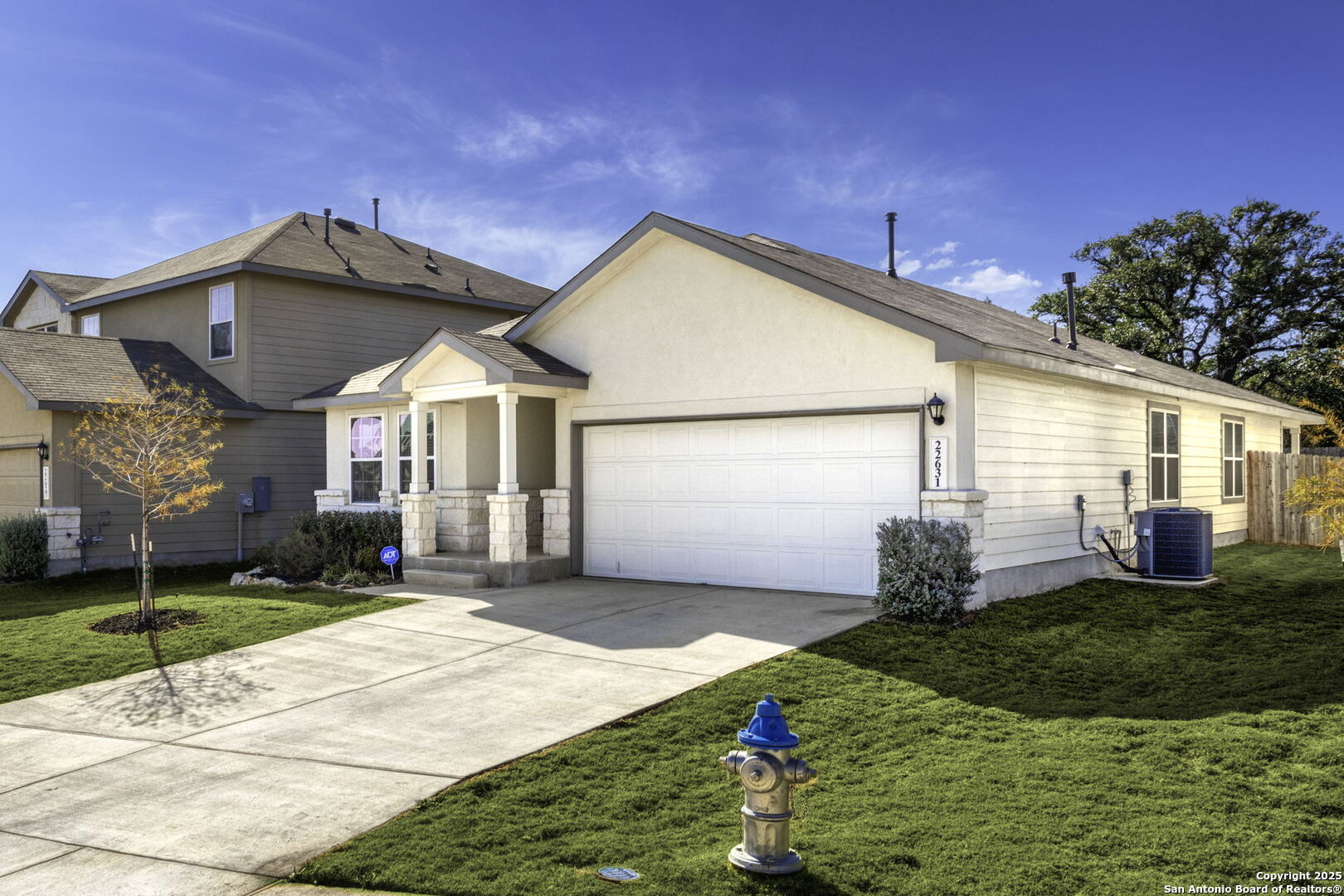 Welcome to your new home in vibrant San Antonio, Texas! This inviting rental property is perfectly situated, putting you just minutes away from a variety of delightful restaurants and a local department stores. You will appreciate the proximity to esteemed educational options, including LeafvSpring School at Cibolo Canyons and LeafvSpring School at Sonterra, both just a short drive away and close to Veteran Memorial HS. Methodist Hospital Stone Oak is also conveniently accessible within 17 minutes for your peace of mind. Key property features include a comfortable living space with central heating and cooling, along with air conditioning and ceiling fans to ensure year-round comfort. The open layout offers flexibility and warmth, making it an ideal space for relaxation and entertaining. Access to one of the coolest amenity centers in the area with club House, gym, pool, dog park, trails and sports courts. Very private yard backing to green belt. Rent covers your monitoring alarm system and smart home controls. Don't miss the chance to make this wonderful space your own! Pets are negotiable