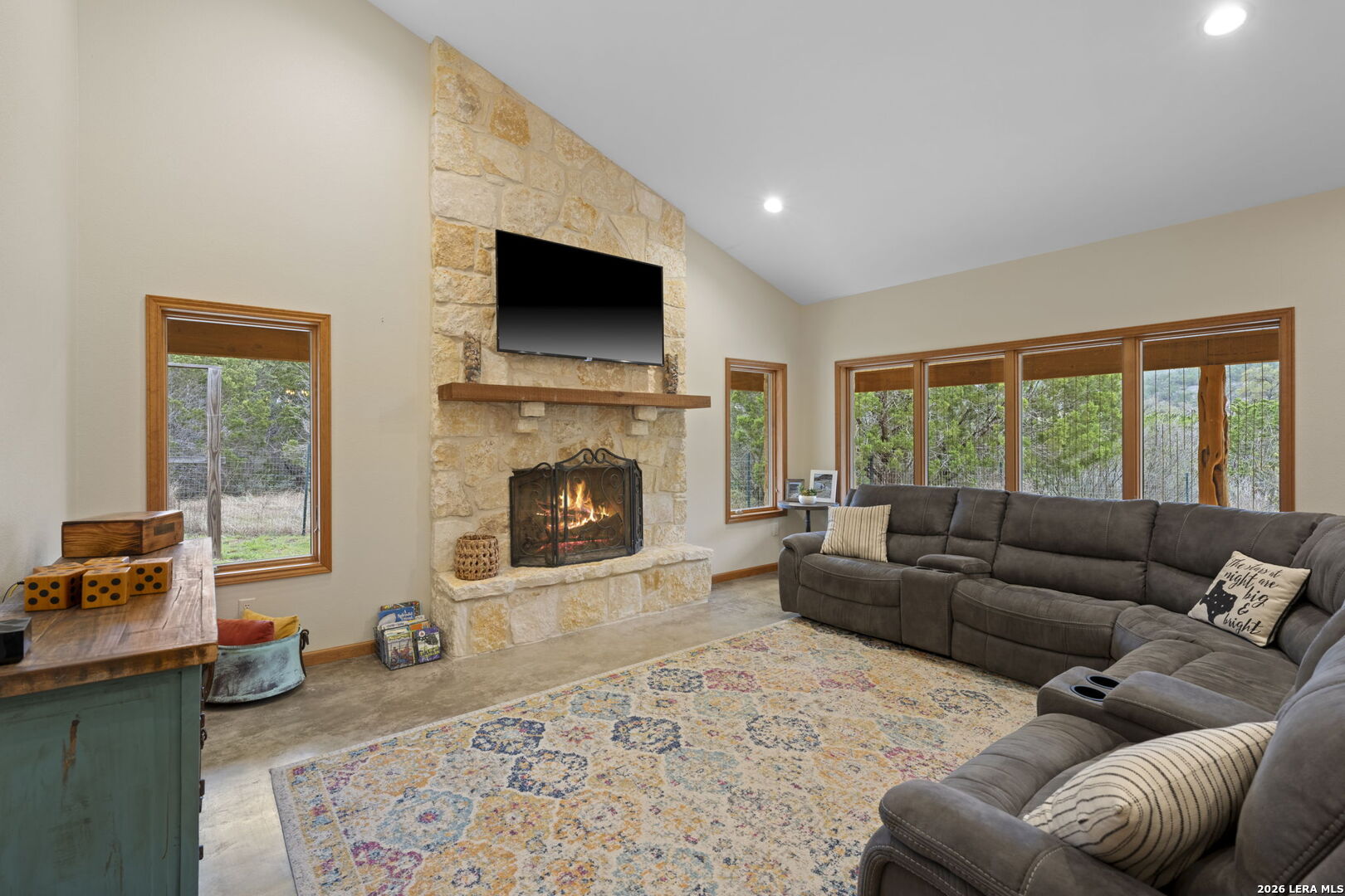 **FRIO WATERFRONT** Discover the perfect blend of privacy, nature, & thoughtful design on this secluded 10.8 acre Frio River ranchette boasting 600+ feet of Frio waterfront. Custom built & designed for comfort, the home features an open floor plan w/high ceilings & abundant natural light that highlights the surrounding views & peaceful setting. The kitchen is equipped w/an induction cooktop & flows seamlessly into the main living areas-ideal for gathering & entertaining. Accessibility was carefully considered w/wheelchair-accessible doorways & spacious interiors, including oversized showers & two primary suites that provide flexibility for family or guests. A converted garage now serves as a bedroom w/built in bunk beds & game room w/a fun loft space where kids can unwind. Outdoor living is just as impressive. A 16x16 cedar deck, screened garden gazebo, rain gardens w/walking paths, & fenced flower beds create inviting spaces to relax or cultivate your own garden. Concrete steps w/a handrail lead down to the river's edge, while the gently sloping land stretches from the scenic bluffs to the Frio River. A circular drive at the waterfront provides easy access to a screened porch overlooking the water-perfect for soaking in the tranquil setting. The property includes fiber-optic high-speed internet, RV septic hookup, & a 30-amp RV electrical connection, along w/conduit & an electric panel ready for a future hot tub. W/unrestricted use, a seasonal waterfall, & more than 10 acres to explore, this rare Frio River retreat offers the freedom to enjoy Hill Country living at its finest. All furniture and kitchenware convey.