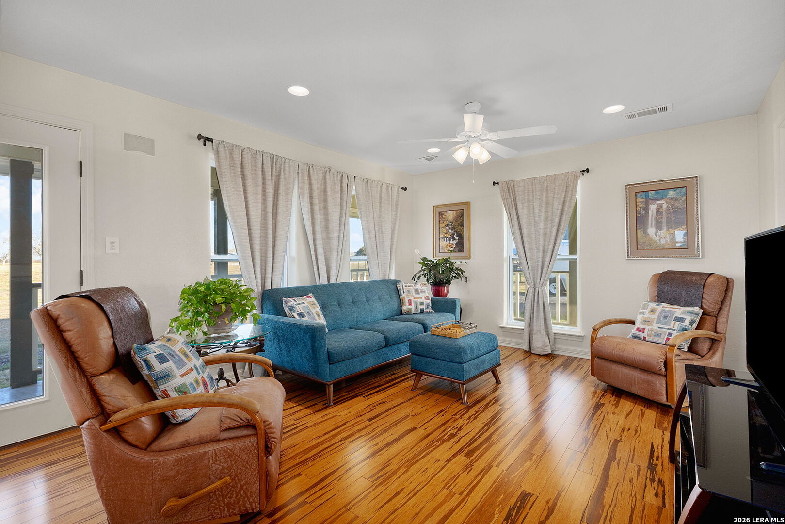 Florida-style 3/2 waterfront home with a welcoming wraparound porch and beautiful, water views in the gated Guadalupe Ski Plex community - where outdoor living is part of everyday life. Situated on a spacious 3/4-acre lot with full RV hookup. New roof, tankless gas water heater, and water softener. Panoramic view from the kitchen and living room. Private 15x30 waterski shed for boat and recreational toy storage is located on HOA property, keeping your gear close to the action. Residents enjoy access to the community's 38-acre recreational area featuring a private ski lake, boat ramp and ski launch, waterfront covered picnic area, and walking trails - fishing, paddleboarding, water skiing plus ample room to ride dirt bikes and bicycles, walk dogs, or enjoy the outdoors year-round in the beautiful Central Texas weather. Less than an hour from San Antonio AND Austin, TX! Conveniently located between New Braunfels, San Marcos, and Seguin, this property offers the ideal blend of privacy, recreation, and accessibility - a true lake lifestyle opportunity.