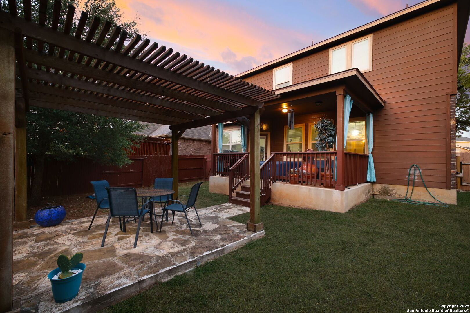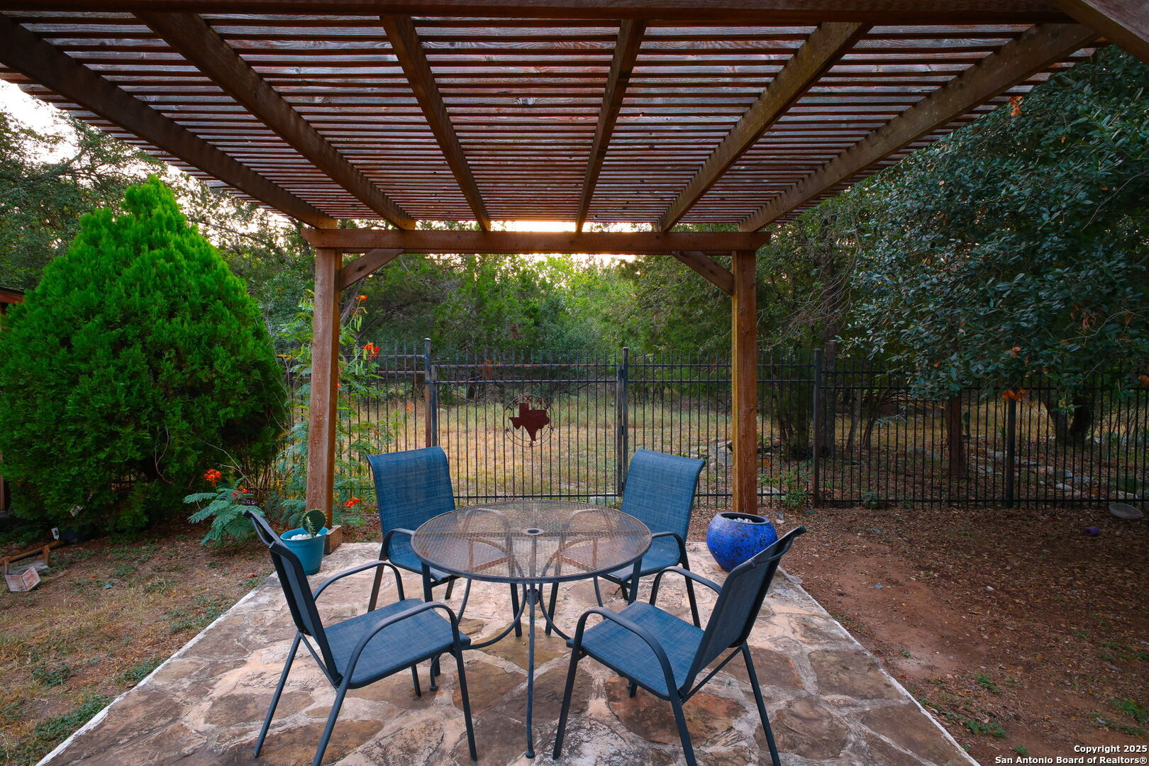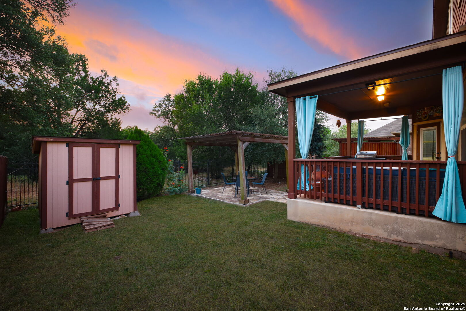 Welcome to 22706 Allegro Creek Drive, a beautifully maintained and thoughtfully upgraded two-story home nestled in the highly sought-after Wortham Oaks subdivision in Northeast San Antonio. This charming 4-bedroom, 2.5-bath home offers the perfect balance of elegance, comfort, and functionality - all set on a scenic greenbelt lot that provides privacy, tranquility, and views of lush Texas Hill Country. From the moment you arrive, the home's curb appeal impresses with its mature trees, lush landscaping, and inviting front porch. A brand new roof (2025) and new fencing provide peace of mind for years to come, while the brand new carpet throughout the upstairs adds a fresh, modern touch to this move-in-ready gem. Step inside and be greeted by a bright and open floor plan with tile flooring throughout the main level. The formal dining area and game room featuring a pool table welcome you with arched entryways and crown molding, creating a grand yet cozy atmosphere. The living room is spacious and filled with natural light, perfect for relaxing or entertaining. The heart of the home - the kitchen - boasts granite countertops, a central island, stainless steel appliances, gas cooking, and ample cabinet space. Enjoy casual meals at the breakfast bar or in the cozy breakfast nook overlooking the backyard. Upstairs, the primary suite is a luxurious retreat with generous space & a tray ceiling. The ensuite bathroom includes a soaking tub, separate shower, dual vanities, and a walk-in closet. Three additional well-sized bedrooms and a full bath complete the upper level. Enjoy year-round outdoor living under the covered patio with lighting and privacy curtains. Relax in the inflatable hot tub, or gather around the custom flagstone patio under a pergola, perfect for entertaining or enjoying quiet evenings under the stars. The greenbelt lot means no backyard neighbors and direct access to nature with peaceful wooded views. There's also a storage shed for convenience. Wortham Oaks is a gated, family-friendly community known for its exceptional amenities and welcoming atmosphere. Residents enjoy access to two sparkling community pools, multiple playgrounds, basketball courts, and picnic areas. The HOA organizes year-round family events, including movie nights, food truck gatherings, holiday parades, and seasonal festivals - a perfect way to build lasting connections with your neighbors. Located within the top-rated Judson Independent School District, Wortham Oaks is home to two newly built schools within the subdivision - Wortham Oaks Elementary and the newly opened Middle School (Fall 2025), offering parents the ultimate convenience and peace of mind with a short walk or bike ride to school for the kids. Enjoy the best of San Antonio living with nearby attractions and conveniences: Natural Bridge Caverns & Wildlife Ranch - Just minutes away for family-friendly outdoor adventures. The Forum at Olympia Parkway & Rolling Oaks Mall - Endless shopping and dining options. TPC San Antonio Golf Resort & JW Marriott Hill Country Resort & Spa - Perfect for golf enthusiasts and staycation seekers. McAllister Park and Bulverde Community Park - Great for outdoor activities, hiking, and sports. Easy access to Loop 1604, Highway 281, and IH-35, making commuting a breeze. This home is truly the complete package - combining ideal location, thoughtful upgrades, and unmatched community living. Whether you're a growing family, a first-time buyer, or someone looking for more space, 22706 Allegro Creek Drive offers everything you need and more.