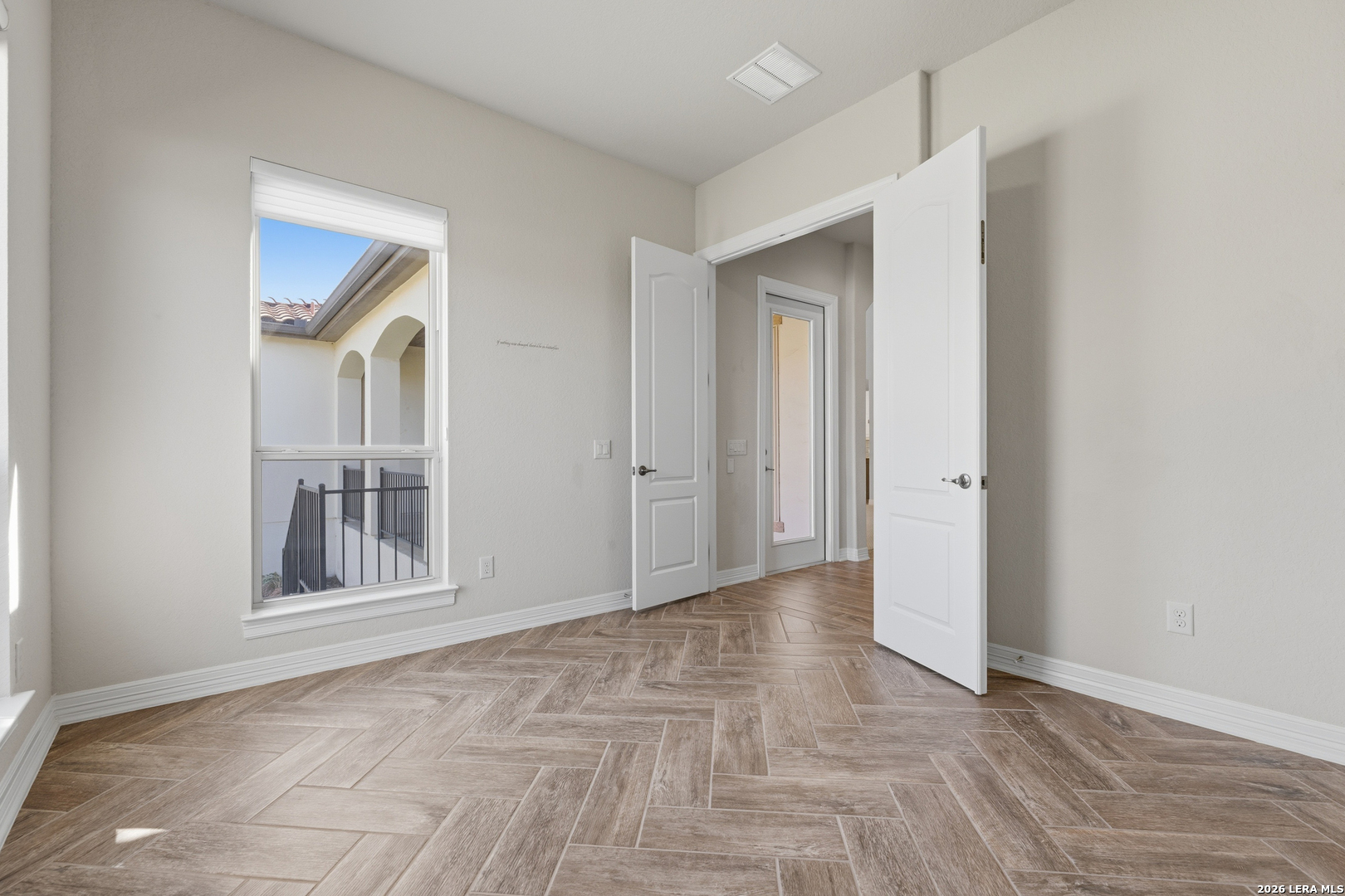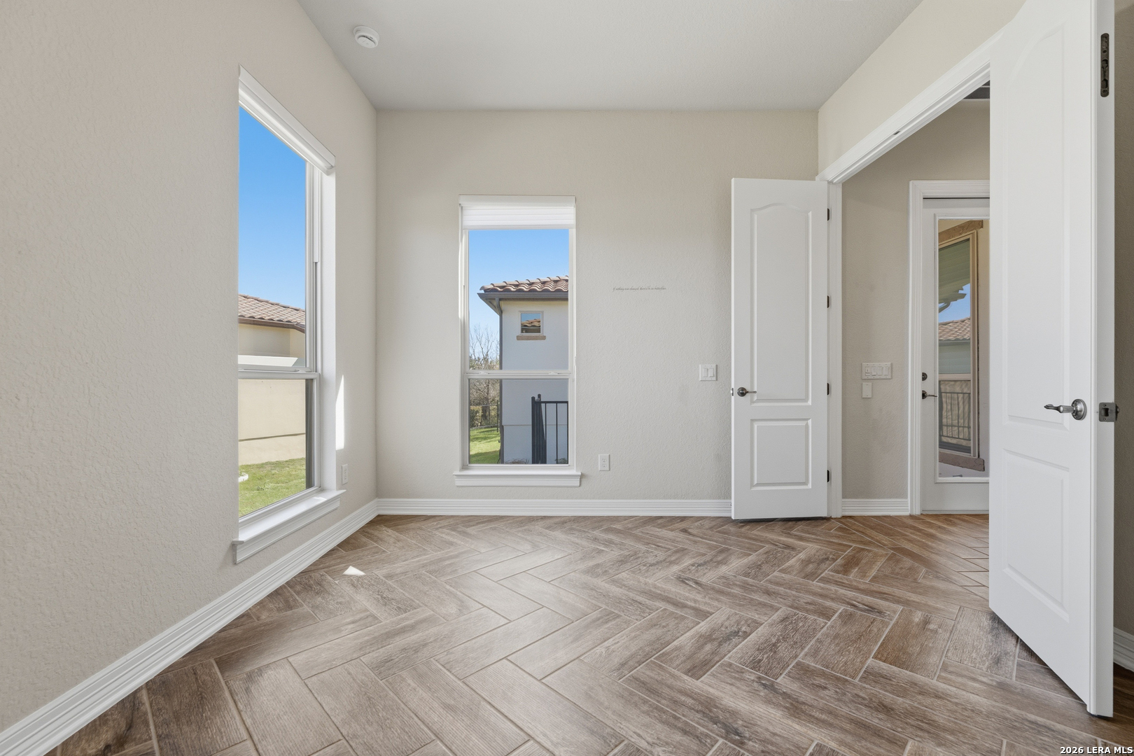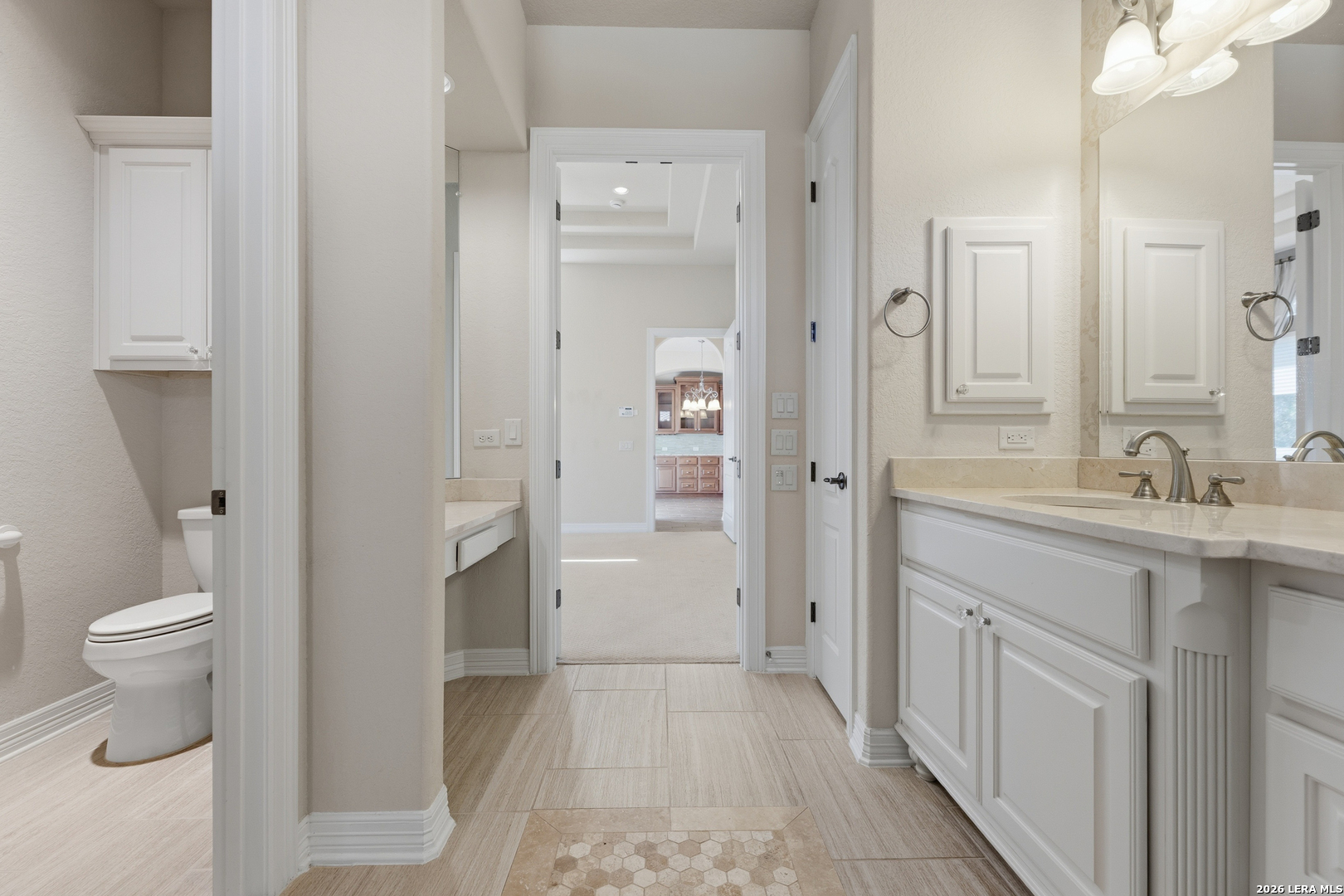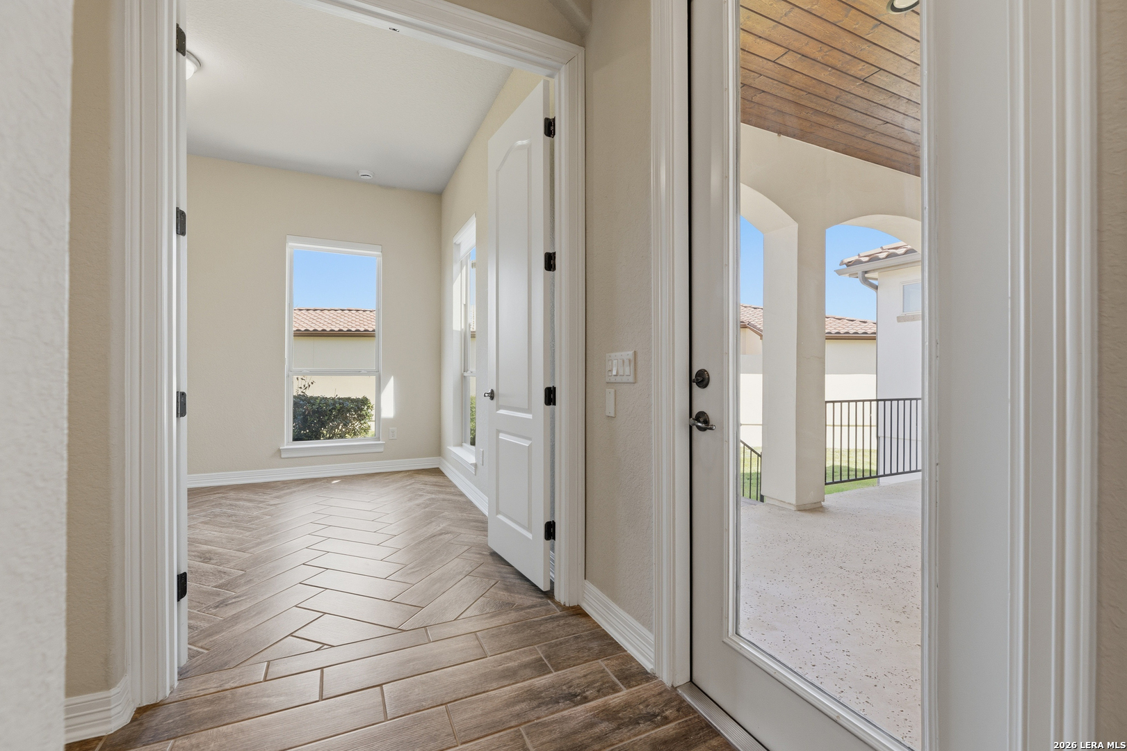 Experience elevated living in this stunning single-story home, with soaring ceilings and dramatic picture windows. Exceptional curb appeal is highlighted by lush, mature landscaping and manicured greenery. An expansive open-concept design offers seamless flow for refined entertaining and elevated everyday living. The grand living room features a statement fireplace, impressive ceiling heights, and abundant natural light. The gourmet kitchen is beautifully appointed with custom white cabinetry, a large island with bar seating, granite countertops, mosaic tile backsplash, and premium stainless steel appliances, including a gas cooktop. An adjoining dining area with a built-in bar adds both elegance and convenience. The private primary suite serves as a luxurious retreat, complete with tiered tray ceilings, floor-to-ceiling windows, and a spa-inspired en suite bath featuring dual vanities, a walk-in shower with rainfall feature, and a dedicated vanity space. A well-appointed secondary bedroom and a versatile office or optional third bedroom offer flexible accommodations. Outdoors, a spacious deck overlooks a beautifully landscaped backyard, offering a peaceful setting perfect for relaxing or entertaining. The space features both a covered patio and an additional patio with a retractable cover for flexible shade and comfort. Ideally located with convenient access to Hwy 281, premier schools, dining, and shopping, this home offers an exceptional blend of comfort, style, and sophistication.