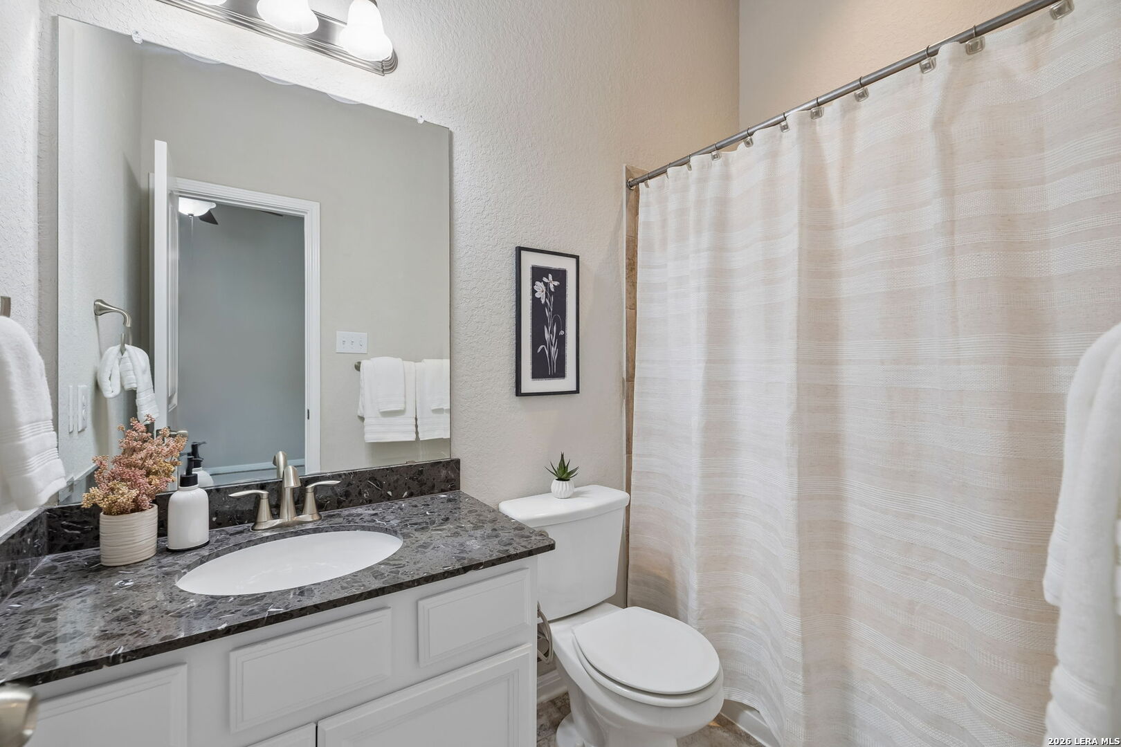 Spacious 4 bedroom, 3.5 bath home in Wortham Oaks in North San Antonio (78261) offering a flexible and functional layout. All bedrooms are located downstairs, while the upstairs features a large loft, half bath, and dedicated media room ideal for a home theater, game room, or second living space. The open kitchen includes granite countertops, gas cooking, built-in appliances, stainless steel finishes, and plenty of cabinet storage, flowing into the main living and dining areas. The primary suite features dual vanities, a garden tub, separate shower, and walk-in closet, while one secondary bedroom includes its own ensuite bath, perfect for guests or multigenerational living. Enjoy the covered patio and backyard with firepit area, great for relaxing or entertaining. Conveniently located with walkability to the in-neighborhood elementary and middle schools. Easy access to Highway 281, Loop 1604, Stone Oak, Bulverde Rd, shopping, dining, and everyday conveniences, plus neighborhood amenities including pools, parks, and walking trails.
