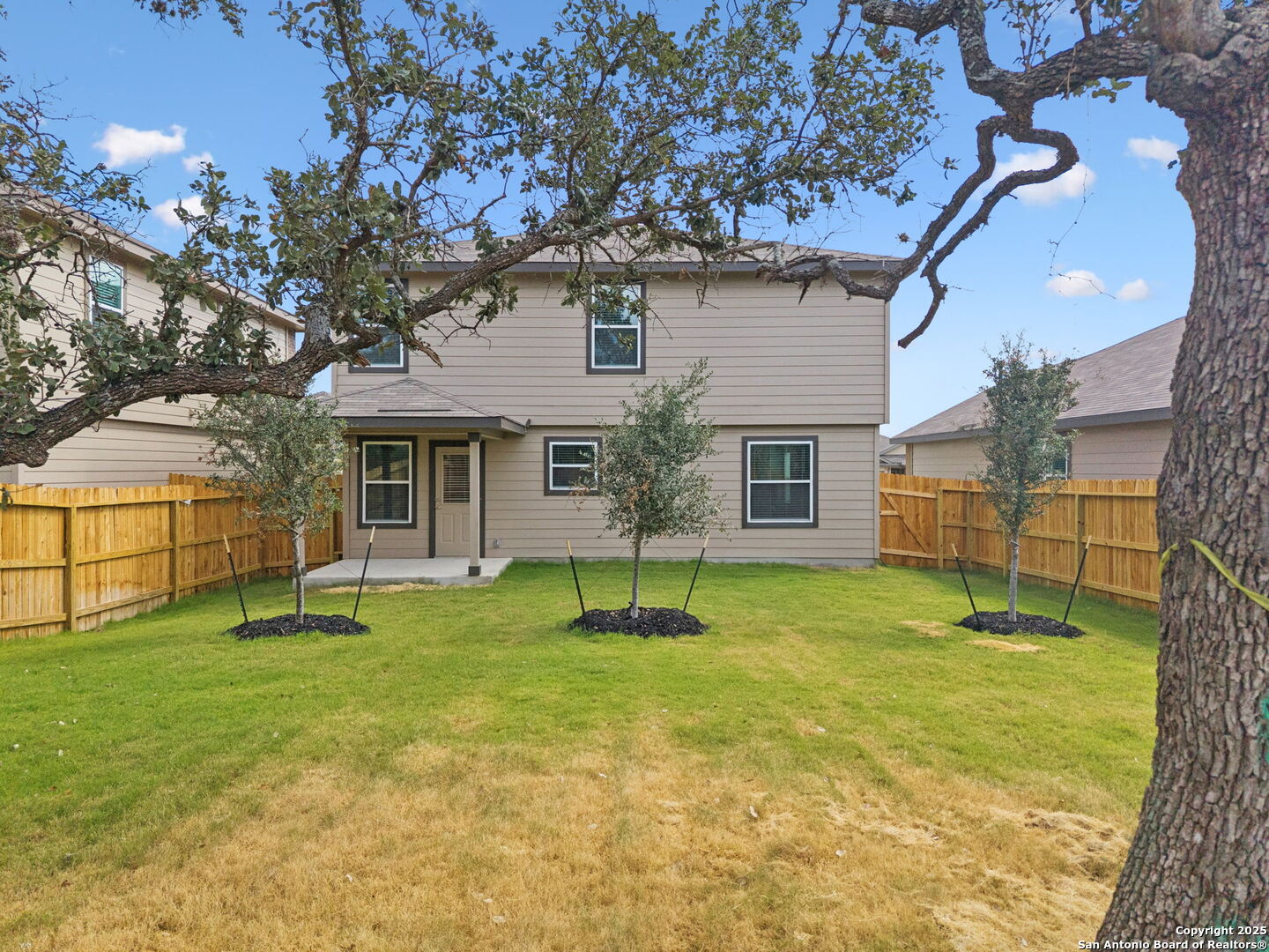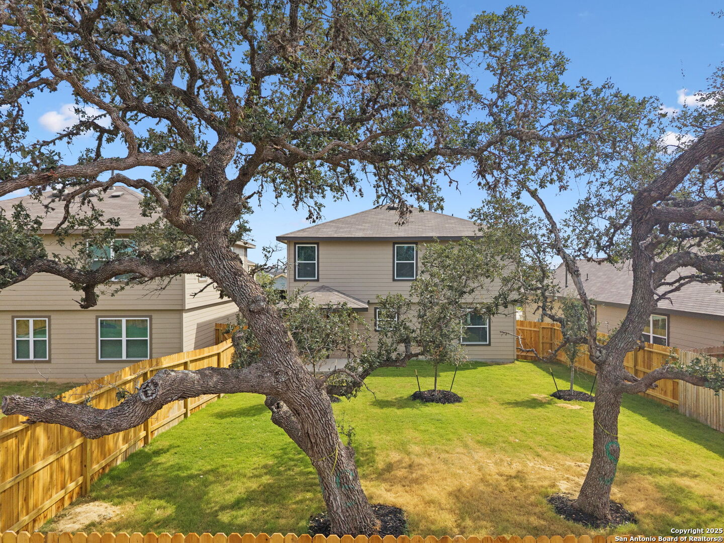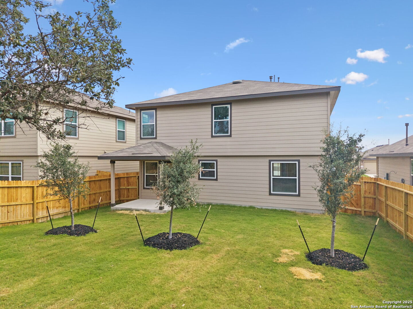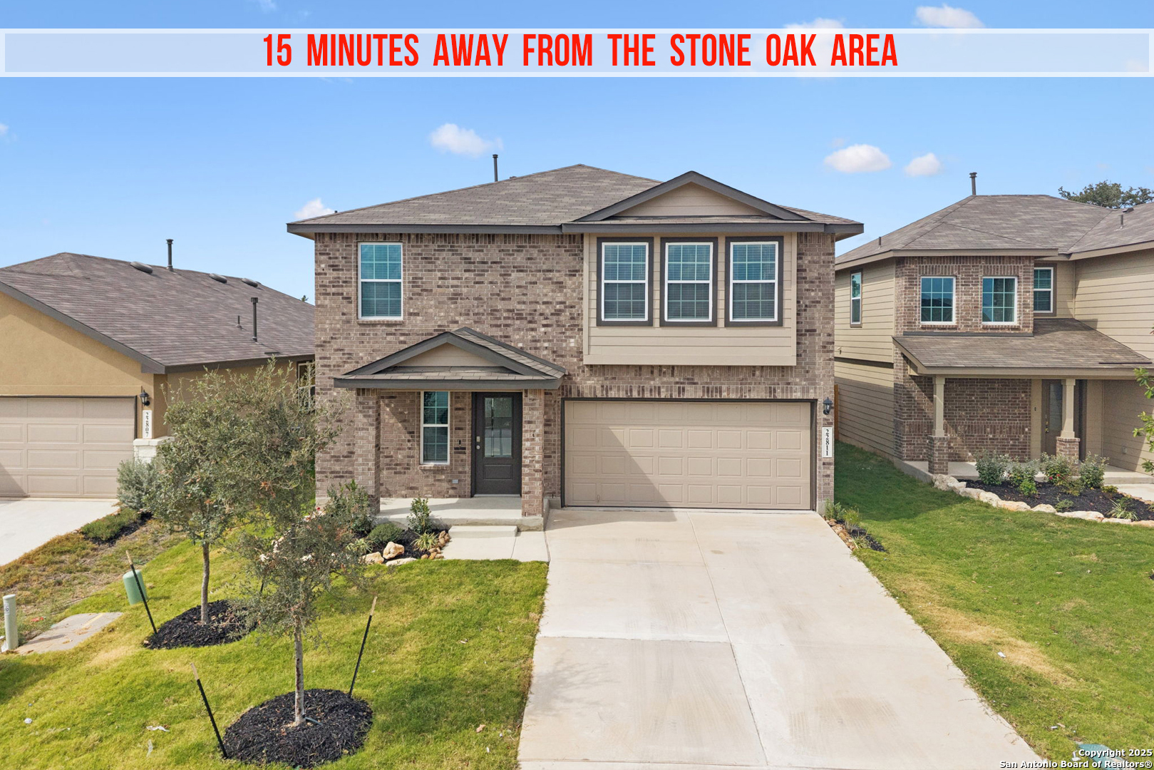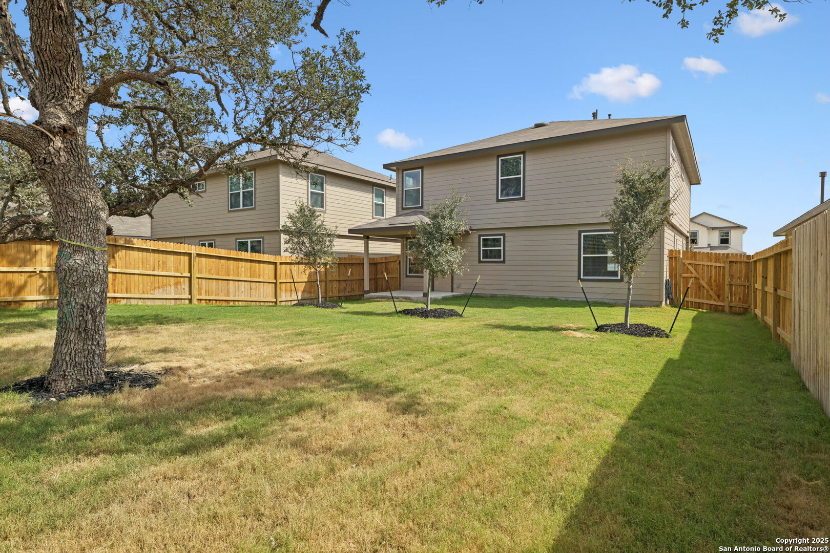 *** MOVE IN SPECIAL - December Rent FREE!*** Step into this brand-new two-story home built in 2025, offering modern comfort and thoughtful design throughout. Featuring 3 bedrooms, 2 bathrooms, and an additional loft upstairs, this home provides the perfect balance of functionality and charm. The spacious kitchen opens to the main living area, ideal for entertaining or enjoying everyday moments. Upstairs, the loft offers flexibility-use it as a cozy living space, playroom, or home office. The primary bedroom is ample in size as well as the primary bathroom that offers a walk-in shower and soaking tub, not to mention an amazing walk-in closet. Natural light flows through bay-style windows in the secondary bedroom and living area, adding warmth and character. The large backyard is shaded by preserved mature trees and offers no back neighbors, creating a sense of peace and privacy. The large driveway is perfect for having family and friend gatherings, or adding the extra space on top of your two car garage. Conveniently located near Morgan's Wonderland Camp, the JW Marriott Hill Country Resort, and TPC Golf Course, this home places you minutes away from San Antonio's best recreation, dining, and entertainment-the perfect blend of tranquility and convenience.