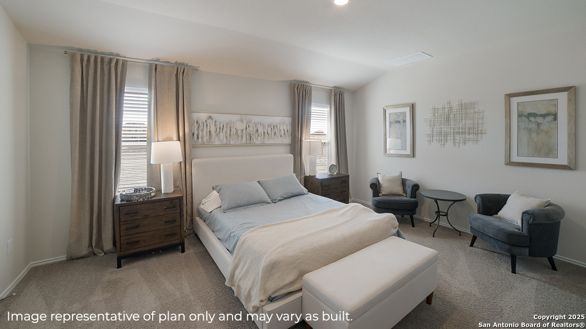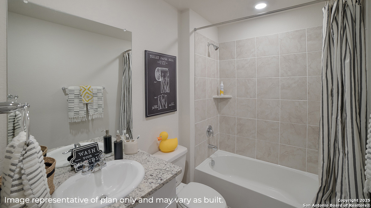 Step inside The Nicole plan, a two-story home featured in Langdon in San Antonio, TX. Featuring 2 classic front exteriors, 4 bedrooms, 3 full baths and a 2-car garage, this floor plan is sure to turn heads. The Nicole offers 2473 square feet of comfortable living and includes a full bathroom and bedroom located right off the foyer that is perfect for guests. Continue down the hall to find an open concept plan with the family room opening to a gourmet kitchen and dining room. The kitchen includes quartz counter tops, stainless steel appliances, shaker style cabinetry and a spacious corner pantry. A kitchen island overlooks the living room and includes a deep, single basin sink and a breakfast bar, perfect for fast mornings on the go. The wide, inviting staircase leads to a spacious game room, utility room, main bedroom suite, two secondary bedrooms with carpet flooring and spacious closets and third full bathroom. Your private main bedroom features an attached ensuite bathroom built with plenty of storage space, a walk-in shower and a separate water closet for the toilet. The grand walk-in closet is a stand-out feature of The Nicole floor plan, complete with plenty of windows for natural lighting. Additional features of The Nicole include sheet vinyl flooring in entry, living room, and all wet areas, quartz counter tops in all bathrooms, and full yard landscaping and irrigation. This home includes our HOME IS CONNECTED base package. Using one central hub that talks to all the devices in your home, you can control the lights, thermostat and locks, all from your cellular device.