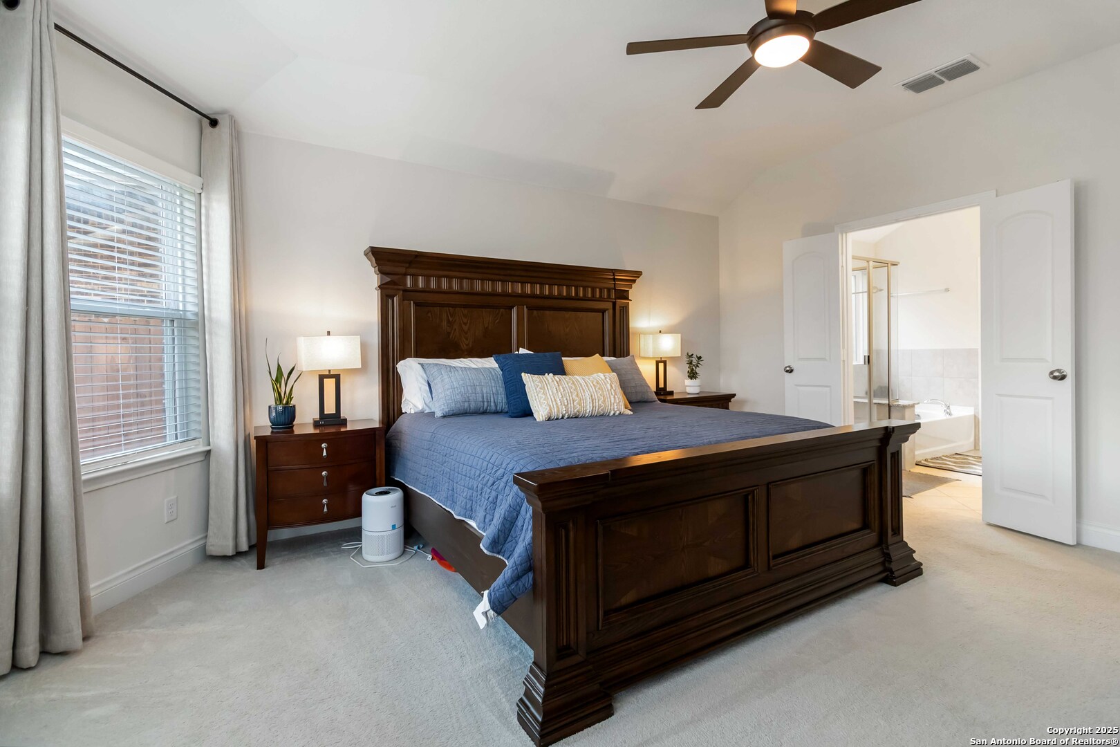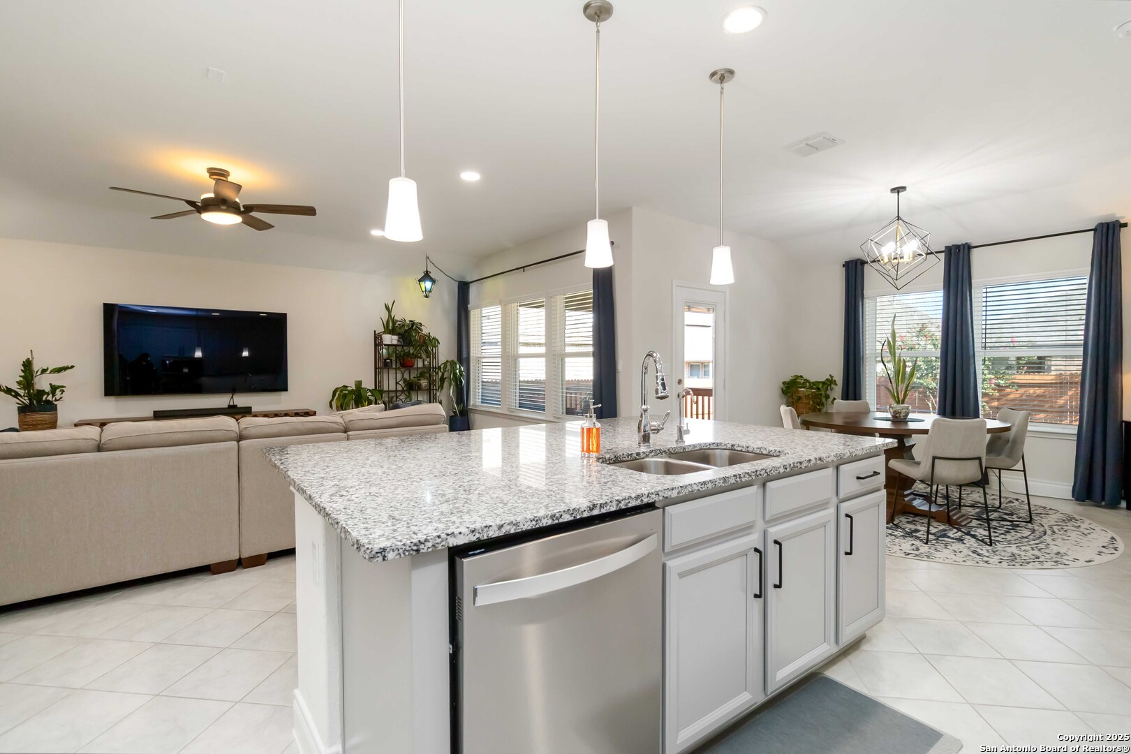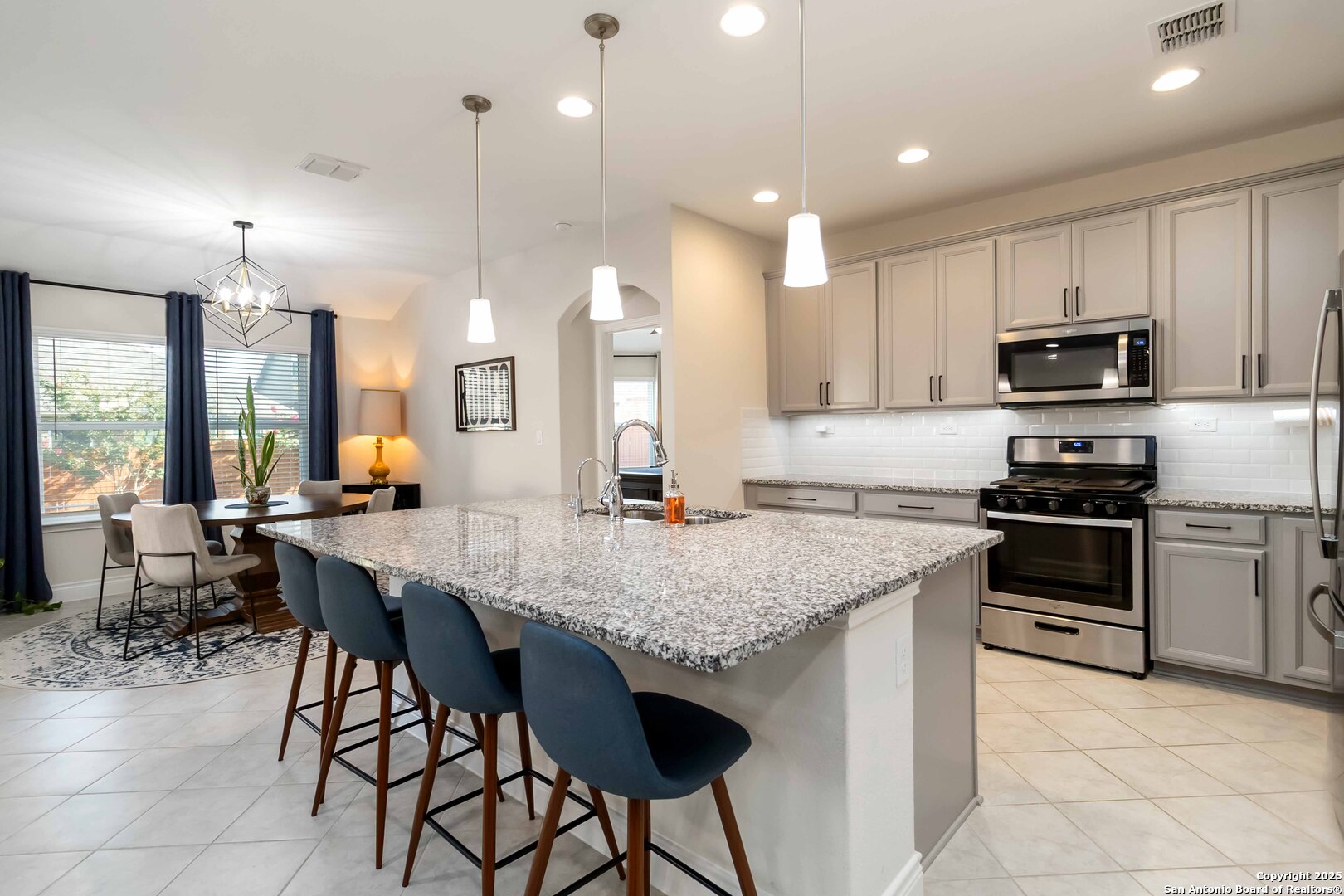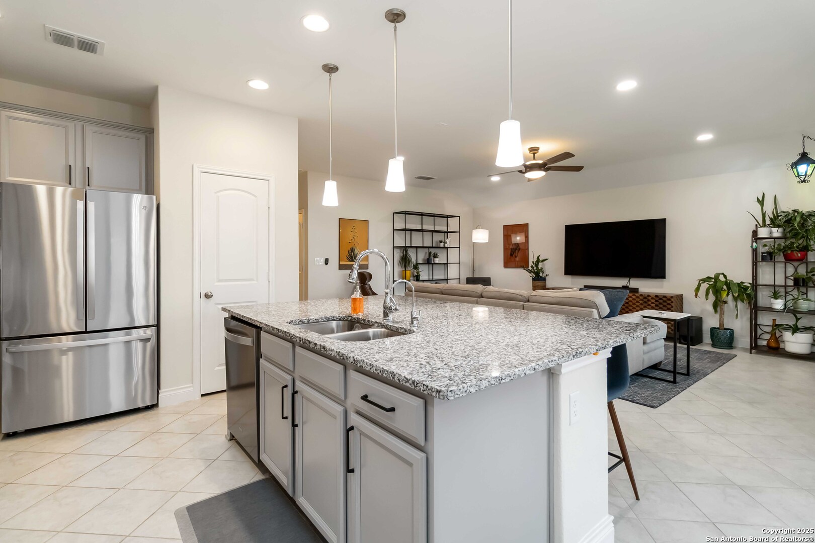 Welcome home to this like-new Pulte beauty, built in 2021 and perfectly situated in the sought-after Veramendi community of New Braunfels. With three spacious bedrooms and two full baths, the open-concept floor plan is enhanced with oversized baseboards, upgraded light fixtures, ceiling fans, and blackout curtains that will stay with the home. Spacious kitchen with gas cooking and oversized island with plenty of cabinet and counter space! Modern conveniences include a Ring doorbell, keyless entry, and wireless solar-powered camera in front, along with a water softener and a full sprinkler system in both the front and back yards to keep the landscaping and lawn healthy. The Veramendi community is known for its exceptional amenities, featuring a resort-style pool with splash pad, several pocket parks, playgrounds, jogging trails, outdoor cooking areas, and cozy fire pits. Perfectly situated with top-rated schools nearby-elementary campus just a quick walk from your front door. This home provides a quiet retreat with easy access to the highway and is just minutes from top restaurants, shopping, and entertainment, making it the ideal blend of comfort, convenience, and community living. Builder Warranties still in place and transferrable!!
