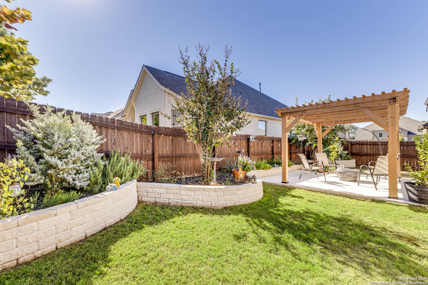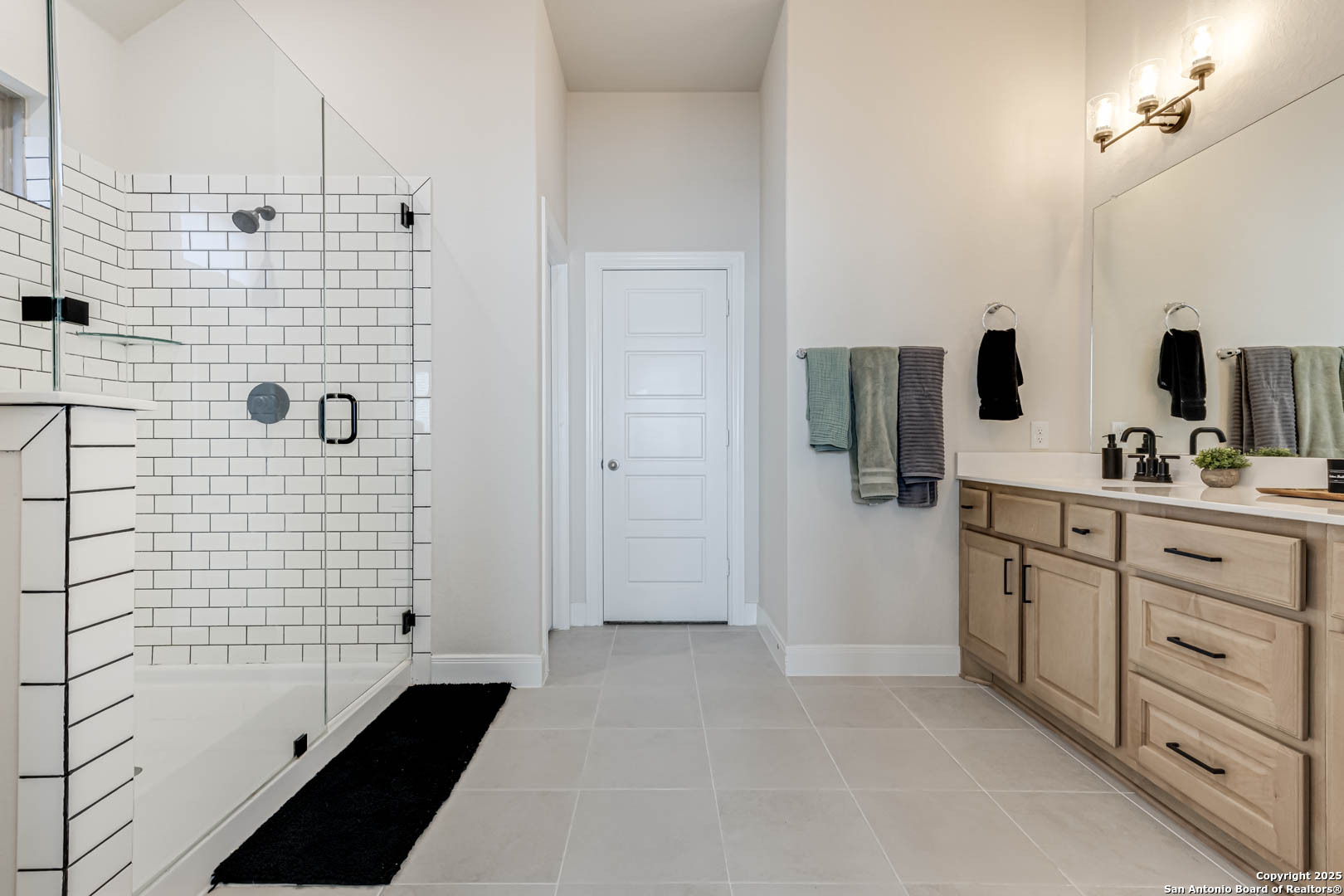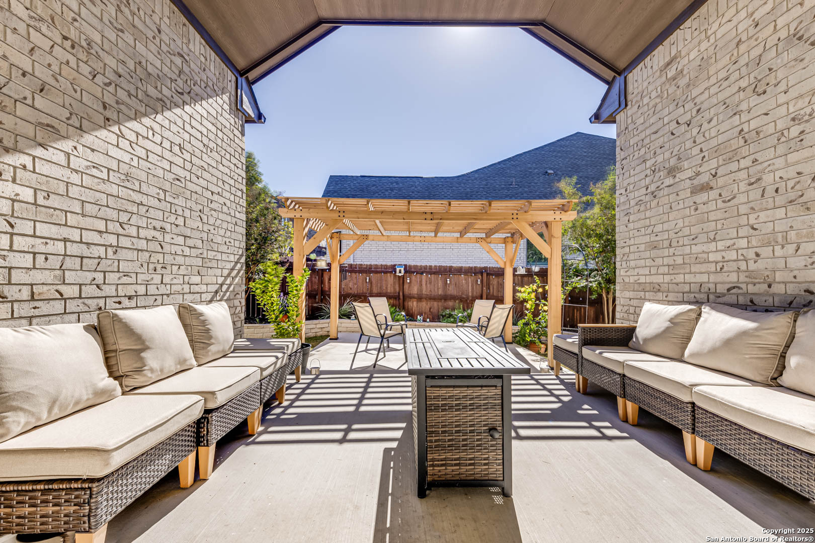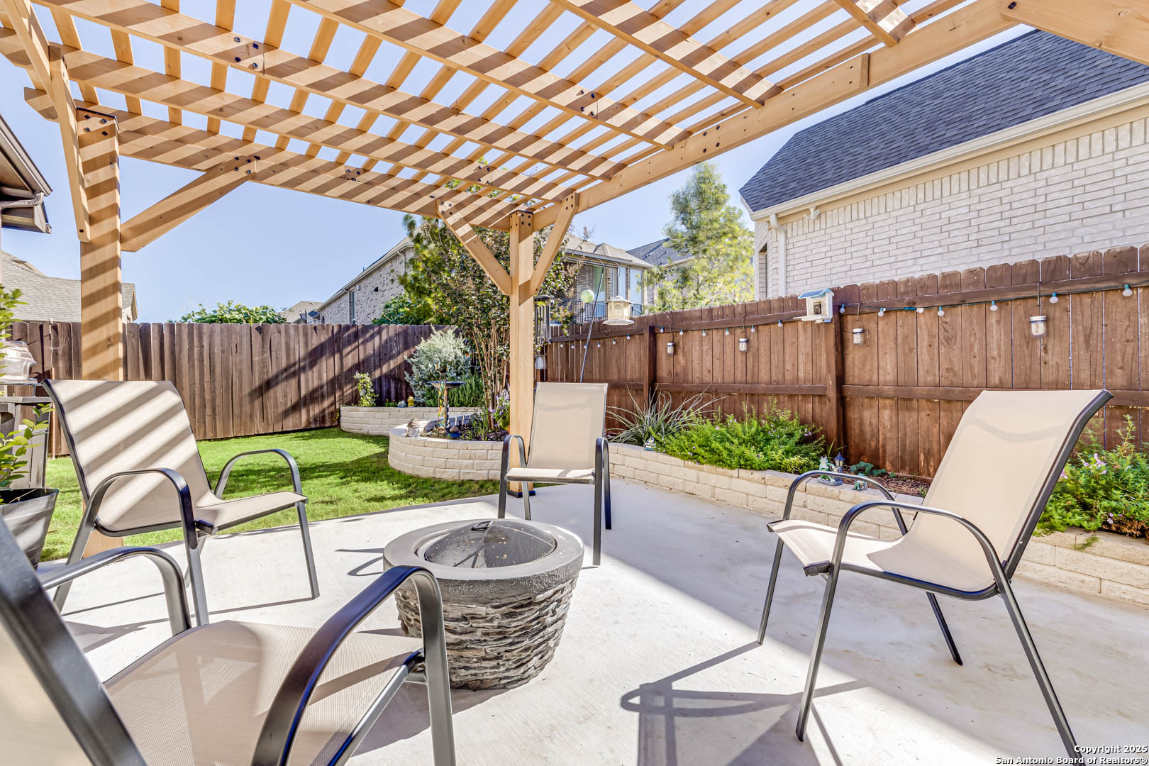 This is the Stone Oak area gem you've been waiting for! A truly one-of-a-kind home in Coronado, this 4-bedroom, 3-bathroom residence was newly built in 2023. Designed with a modern, open-concept layout and thoughtfully chosen finishes, this home stands apart with its blend of contemporary style and warm, modern farmhouse character. The elevated front porch is spacious and perfect for morning coffee or evening sunsets with its peaceful horizon views. Inside, rustic chestnut-toned laminate floors flow through the kitchen and main living area, complementing the wheat-color cabinetry and white quartz countertops. The kitchen also features a stainless steel undermount apron sink and stainless steel appliances. The spacious primary suite offers bay windows perfect for use as a reading nook or decorative space, an extra-large walk-in shower lined with classic subway tile, and a spacious walk-in closet. For those seeking a little extra space, you'll find it here with an additional office and rec room that can be utilized as a second workspace, playroom, home library, or creative studio. Out back, enjoy a Texas-sized outdoor living space with an expansive covered patio and a charming pergola area, perfect for entertaining or cozy family evenings. Additional highlights include a large, three-car garage with abundant storage and zoning within the highly rated NEISD school district. Tucked right off 281, accessed through a tree-lined road that quiets the city noise, and minutes from Sam's, HEB Plus, and Stone Oak Village, the Coronado community offers both serenity and convenience. Come discover this home that combines modern living and peaceful comfort.