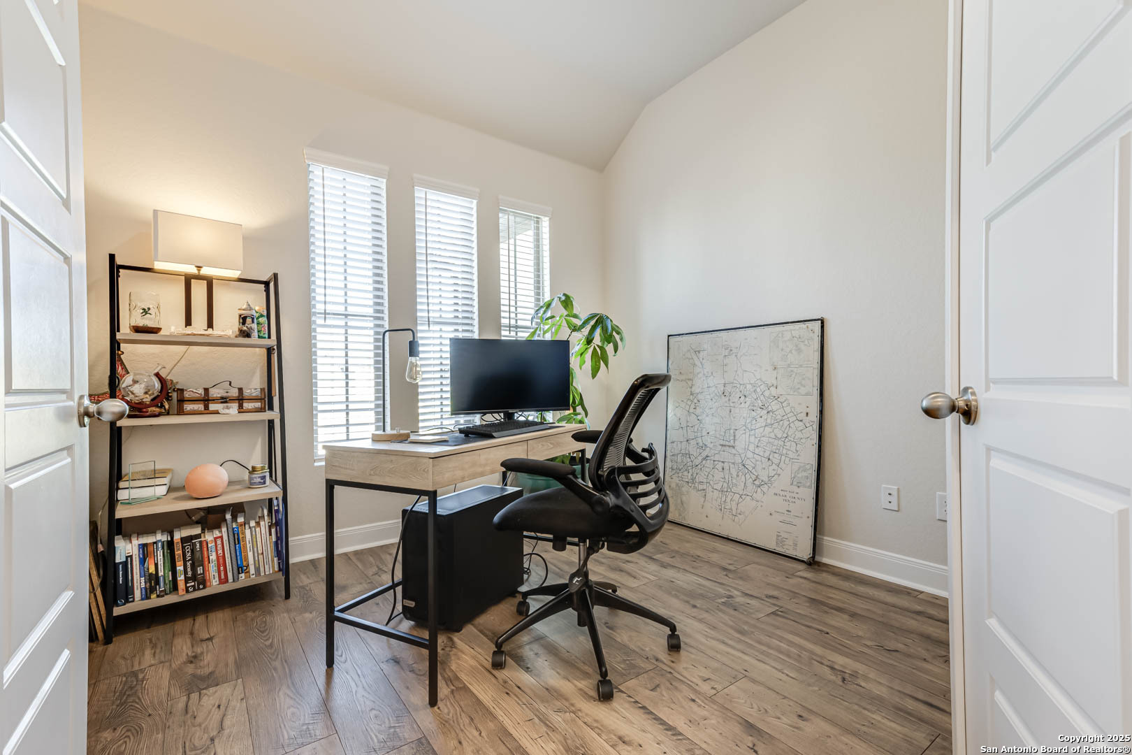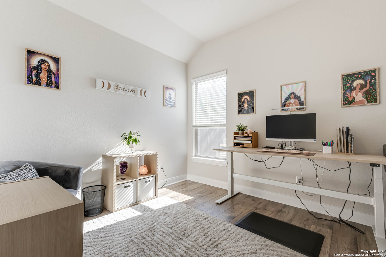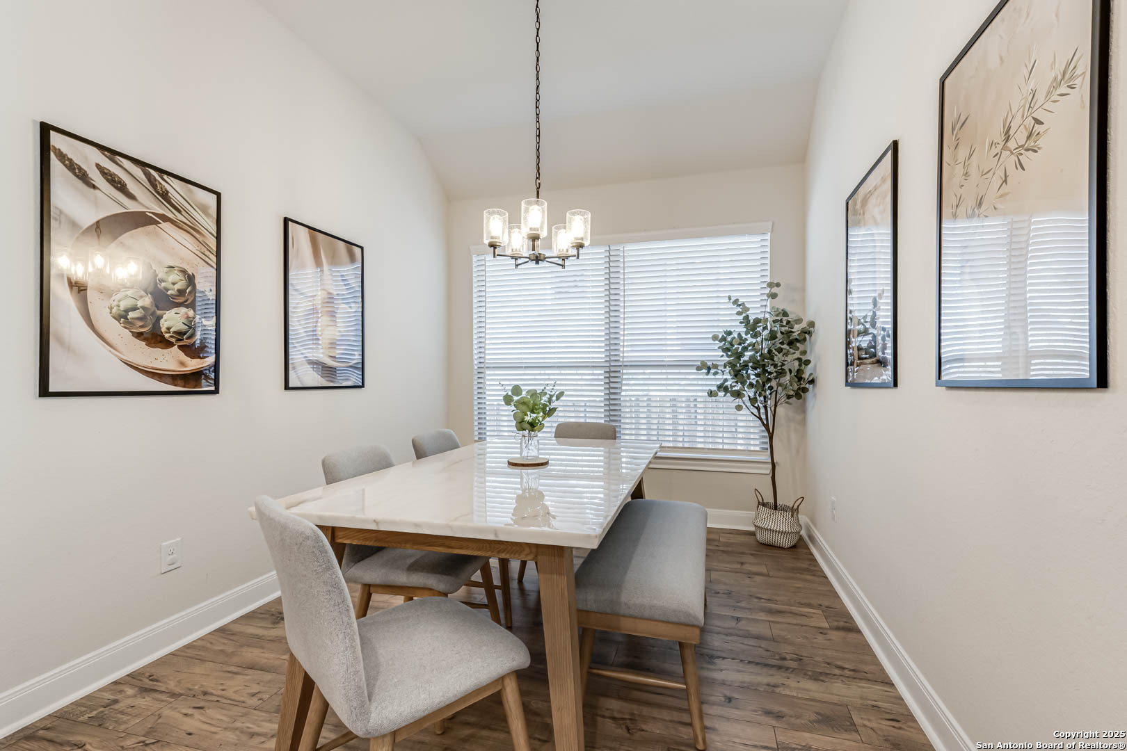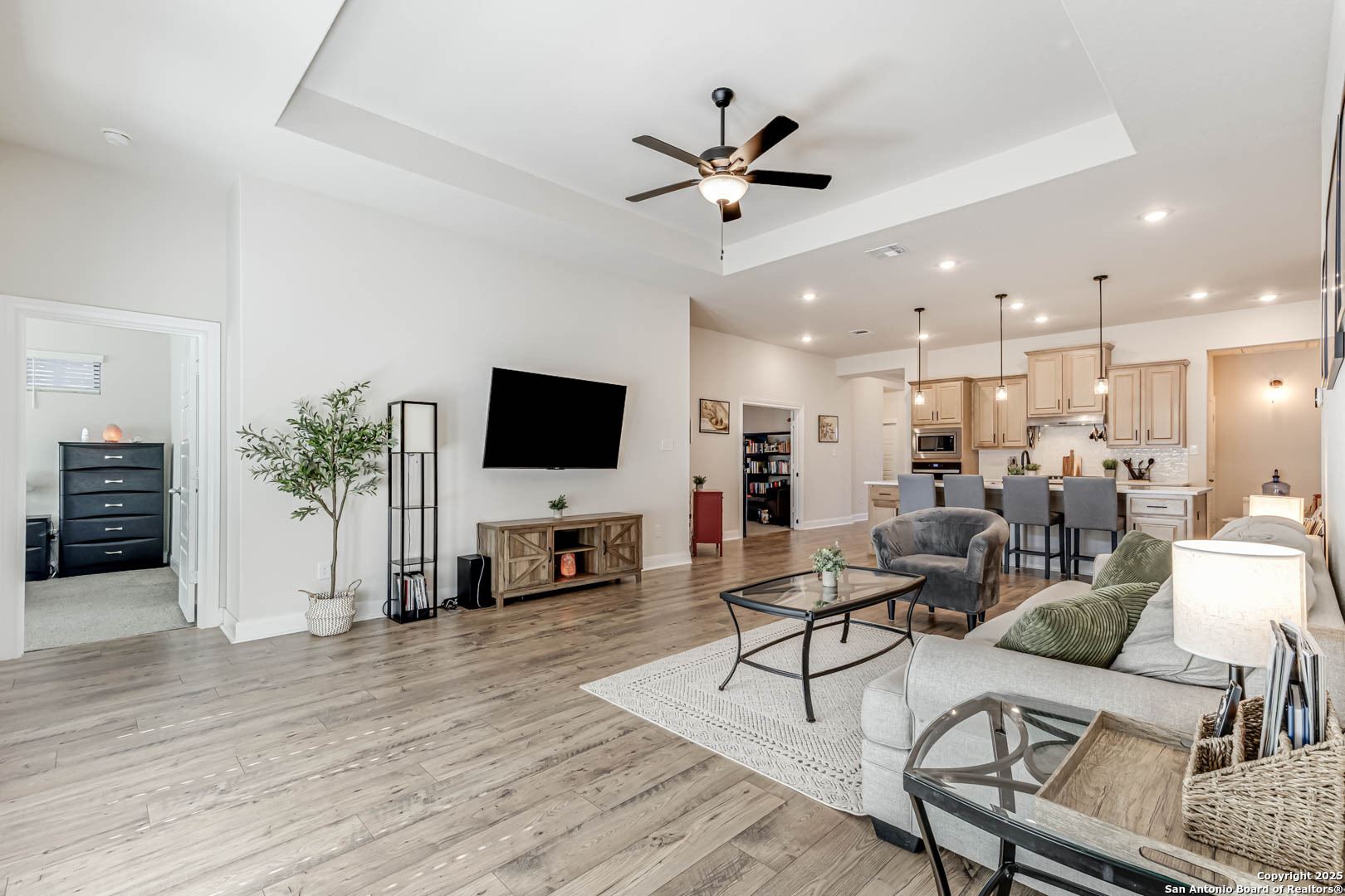 This is the Stone Oak area gem you've been waiting for! A truly one-of-a-kind home in Coronado, this 4-bedroom, 3-bathroom residence was newly built in 2023. Designed with a modern, open-concept layout and thoughtfully chosen finishes, this home stands apart with its blend of contemporary style and warm, modern farmhouse character. The elevated front porch is spacious and perfect for morning coffee or evening sunsets with its peaceful horizon views. Inside, rustic chestnut-toned laminate floors flow through the kitchen and main living area, complementing the wheat-color cabinetry and white quartz countertops. The kitchen also features a stainless steel undermount apron sink and stainless steel appliances. The spacious primary suite offers bay windows perfect for use as a reading nook or decorative space, an extra-large walk-in shower lined with classic subway tile, and a spacious walk-in closet. For those seeking a little extra space, you'll find it here with an additional office and rec room that can be utilized as a second workspace, playroom, home library, or creative studio. Out back, enjoy a Texas-sized outdoor living space with an expansive covered patio and a charming pergola area, perfect for entertaining or cozy family evenings. Additional highlights include a large, three-car garage with abundant storage and zoning within the highly rated NEISD school district. Tucked right off 281, accessed through a tree-lined road that quiets the city noise, and minutes from Sam's, HEB Plus, and Stone Oak Village, the Coronado community offers both serenity and convenience. Come discover this home that combines modern living and peaceful comfort.