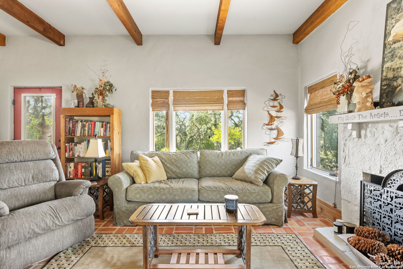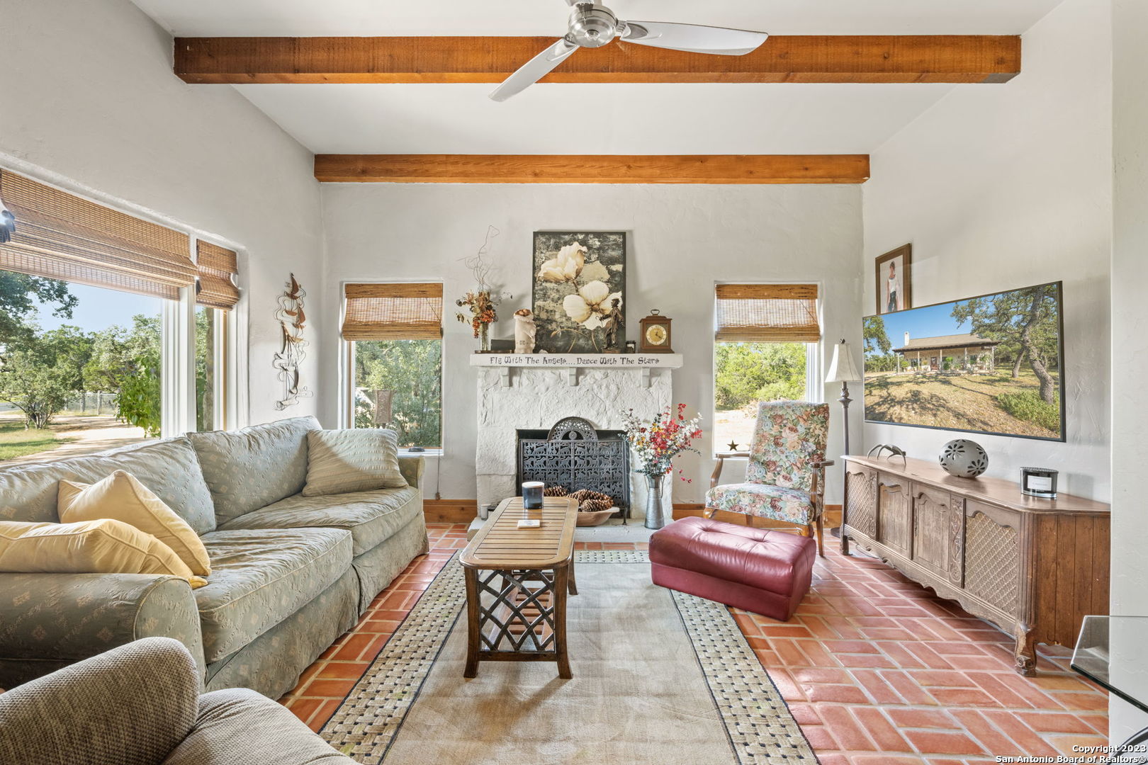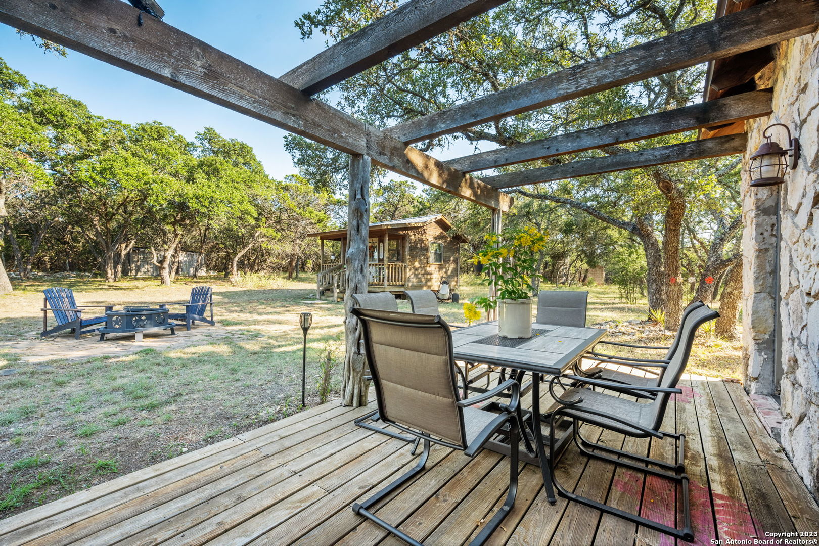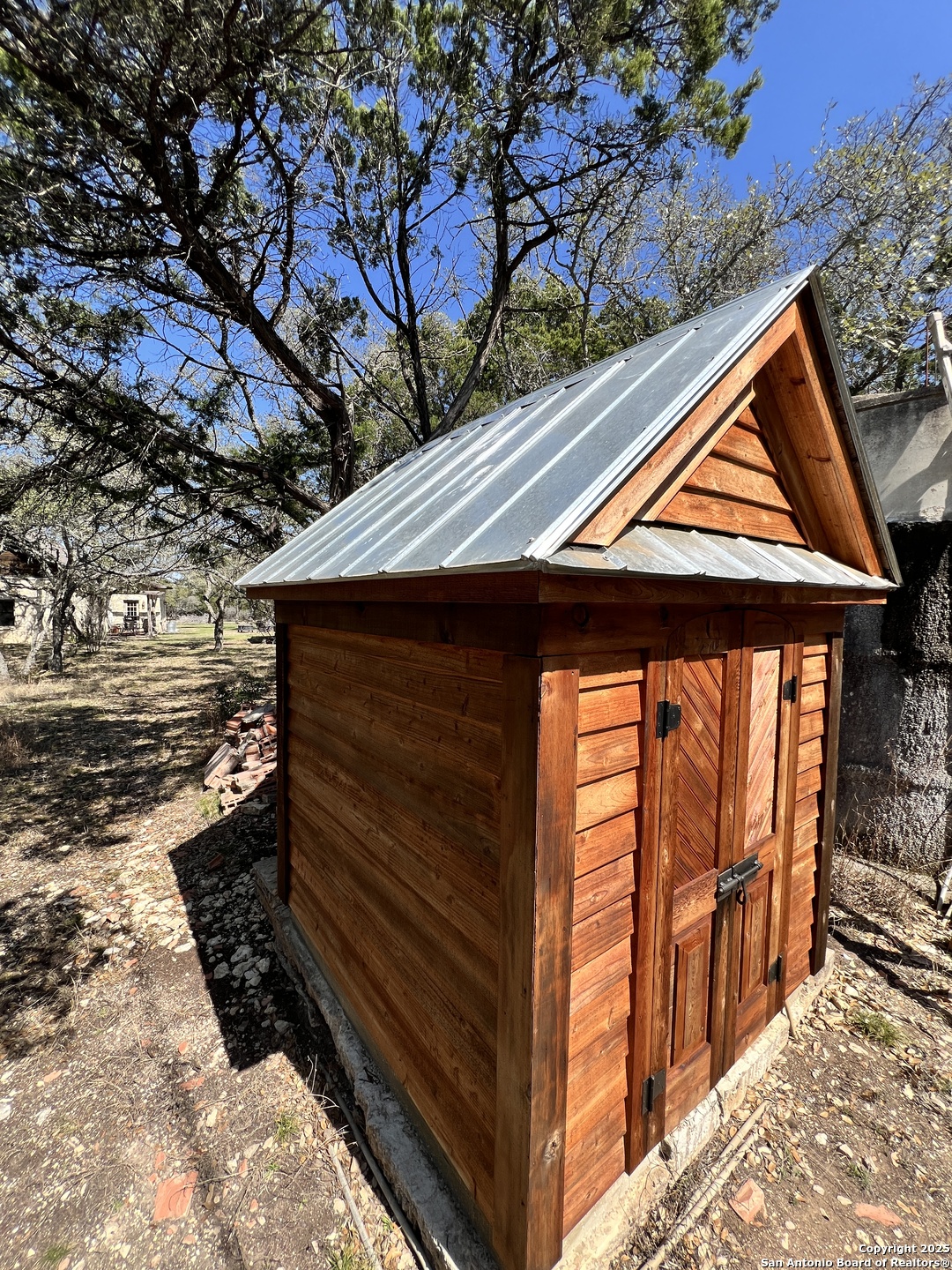 Don't miss this rare opportunity to own a secluded, one-of-a-kind piece of Texas history! This beautifully preserved solid rock home, originally built around 1850, sits tucked away on just under 3 acres of private & unrestricted land with it's own septic system and private water well over 600' deep offering unmatched freedom to live, build, and create, without HOA rules, zoning restrictions, or crowded neighborhoods. Step inside this charming 2-bedroom, 1-bathroom home, fully remodeled in 2014 with All new plumbing, new roof, new windows, raised ceilings & updated fixtures & finishes throughout. With approx. 1,100 sq ft of durable construction and a fully decked attic ready to finish, the potential is limitless. Relax on the expansive 20-foot-long front porch, perfect for morning coffee, evening sunsets, and watching wildlife roam freely - all in total privacy. Great location for a venue, right across from Canterra Hills community. Build additional homes or cottages -ideal for a multi-generational compound or income-producing rentals. Expand the home upward or outward - no HOA, no restrictions. Separate cabin can serve as a home office, yoga studio, creative space, or kids hangout. 10 minutes from The Rim, The Shops At La Cantera & I-10.