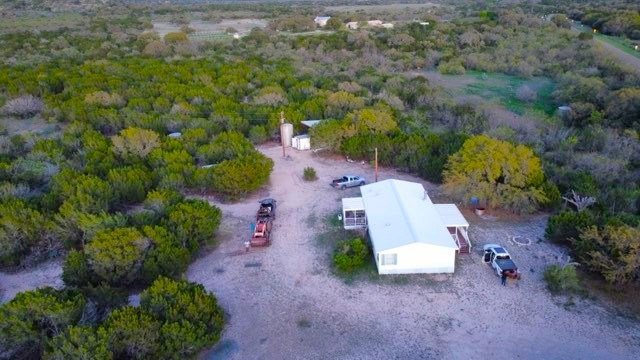 Discover your private 25-acre retreat, offering incredible views in the Texas Hill Country. This quiet and serene setting is perfect for building your dream home or a peaceful getaway, with plenty of tree coverage to enhance the natural beauty. Endless possibilities await for recreation or simply enjoying the scenery. The property is well-equipped with an irrigation system, a water supply for livestock and wildlife, four deer stands, and six deer feeders. An 8x20 storage container, an outdoor building with a shower and restroom, and a 6,500-gallon water tank also convey. For a ready-made escape, a 1999 model 3-bedroom, 2-bathroom manufactured home is included, and all furnishings will convey. This property is also fenced on three sides, offering a chance to own your dream retreat or plenty of space to build your custom home or your home away from home.