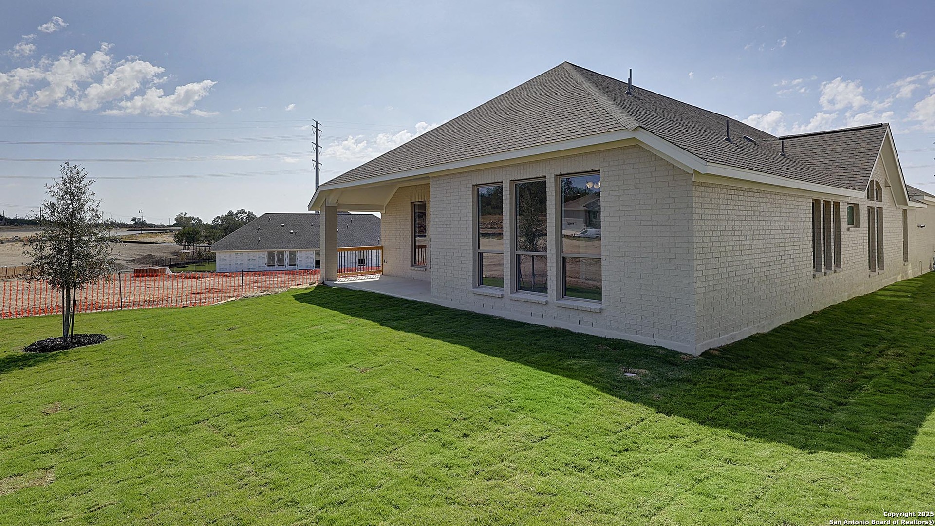 Extended entry with 13-foot ceiling leads to open kitchen, dining area and family room. Kitchen offers generous counter space, corner walk-in pantry, 5-burner gas cooktop and inviting island with built-in seating space. Dining area flows into family room with a wood mantel fireplace and wall of windows. Game room with French doors just across from kitchen. Primary suite includes double-door entry to primary bath with dual vanities, freestanding tub, separate glass-enclosed shower and two large walk-in closets. Secondary bedrooms feature walk-in closets. Covered backyard patio. Mud room off two-car garage.