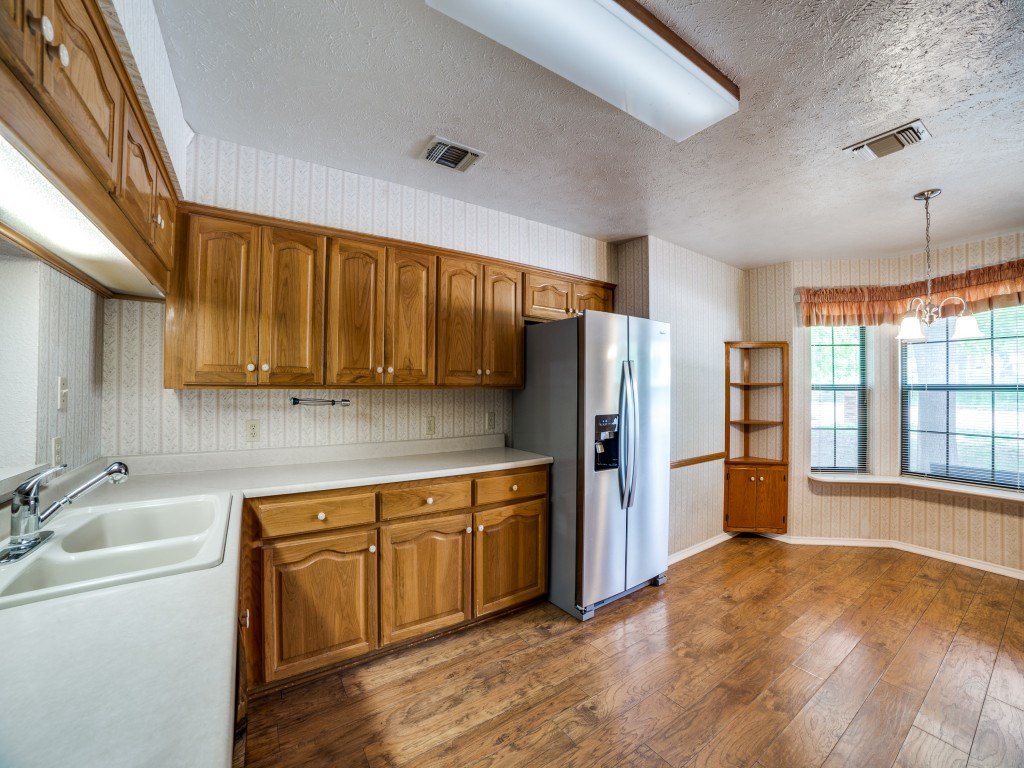 Welcome to 229 Wedgewood Lane in Kerrville's desirable Greenwood Forest neighborhood! This charming 3-bedroom, 2-bath home offers classic Hill Country living with thoughtful features and a spacious layout designed for comfort. Step into the inviting living room, centered around a cozy wood-burning fireplace, perfect for gathering with family and friends. The dine-in kitchen provides a bright and functional space for everyday meals, while the front porch offers a warm welcome home. The primary suite includes a private en-suite bathroom and walk-in closet, while the secondary bedrooms share a convenient Jack-and-Jill bathroom with a tub/shower combo. Enjoy relaxing or entertaining on the large covered back porch overlooking the oversized, fenced yard — complete with mature trees offering shade and privacy. Additional highlights include a two-car garage, ceiling fans, and plenty of outdoor space for gardening, pets, or play. Come experience the quiet charm and natural beauty of Greenwood Forest — 229 Wedgewood Lane is ready to welcome you home! Home is being sold as is, no repairs.