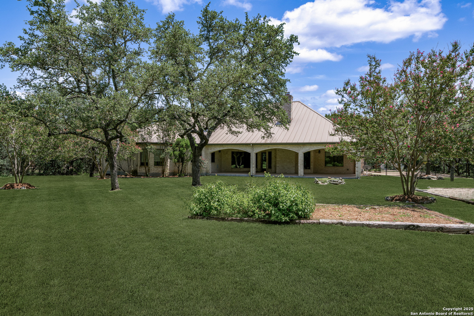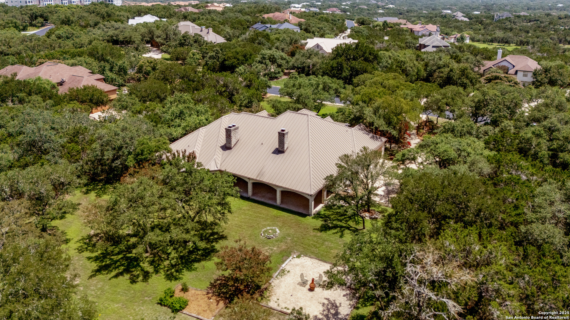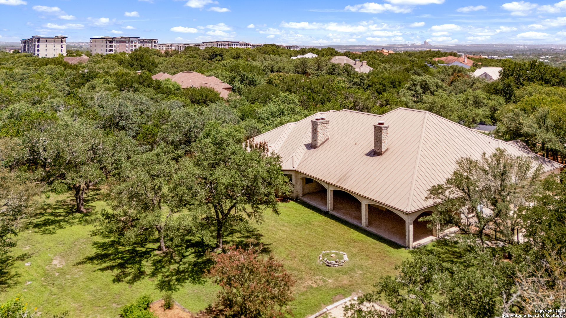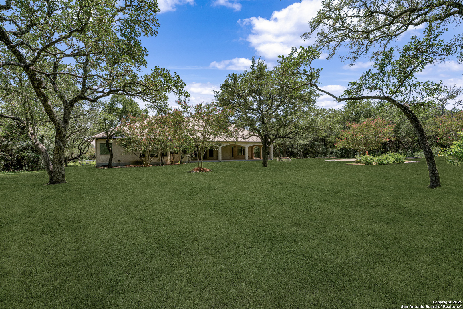 Welcome to your dream home in the heart of highly sought-after Fossil Ridge! Nestled on a picturesque 1.24-acre lot shaded by majestic oak trees, this meticulously maintained one-story custom residence blends timeless elegance with modern comforts. Step inside to find stunning wood floors, rich architectural details, and custom built-ins throughout. This thoughtfully designed home offers two spacious living areas and two dining spaces, ideal for both everyday living and grand entertaining. The gourmet island kitchen is a chef's dream-complete with gas cooking, stainless steel appliances, double ovens, custom cabinetry, and a butler's pantry-seamlessly flowing into the family room and kitchen dining area, both anchored by cozy fireplaces. The private primary suite is a true retreat, featuring its own fireplace, a sitting area, an expansive walk-in closet, and a luxurious spa-like bath with dual vanities, a jetted tub, and a walk-in shower. A versatile bonus room offers flexibility as a game room, home gym, or guest suite. Three generously sized secondary bedrooms include a Jack-and-Jill bath and an additional full bath for convenience. Enjoy peaceful Texas evenings or lively gatherings on the large covered back patio, overlooking a lush backyard with ample space for play, relaxation, or even a future pool. Located in the acclaimed NEISD school district with easy access to HWY 281, the JW Marriott, shopping, dining, and medical facilities-this home truly offers it all. This exquisite one-story custom home invites you to experience refined Hill Country living at its finest.