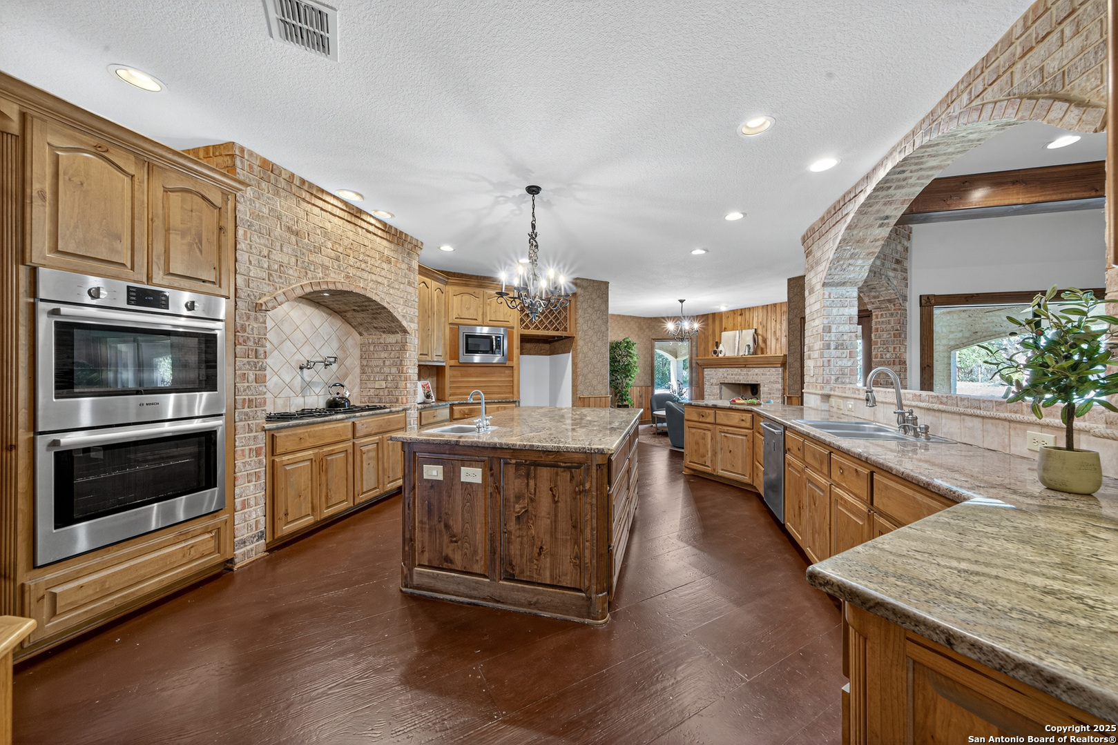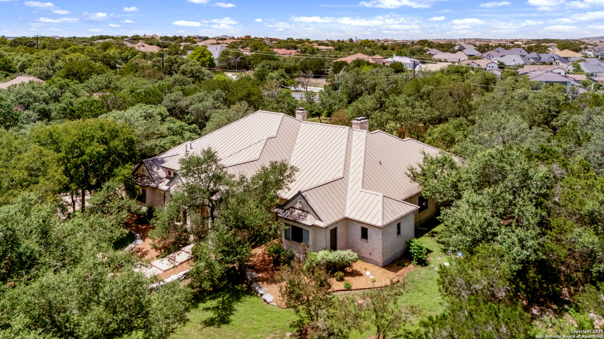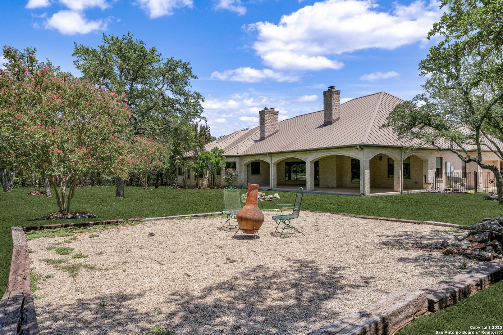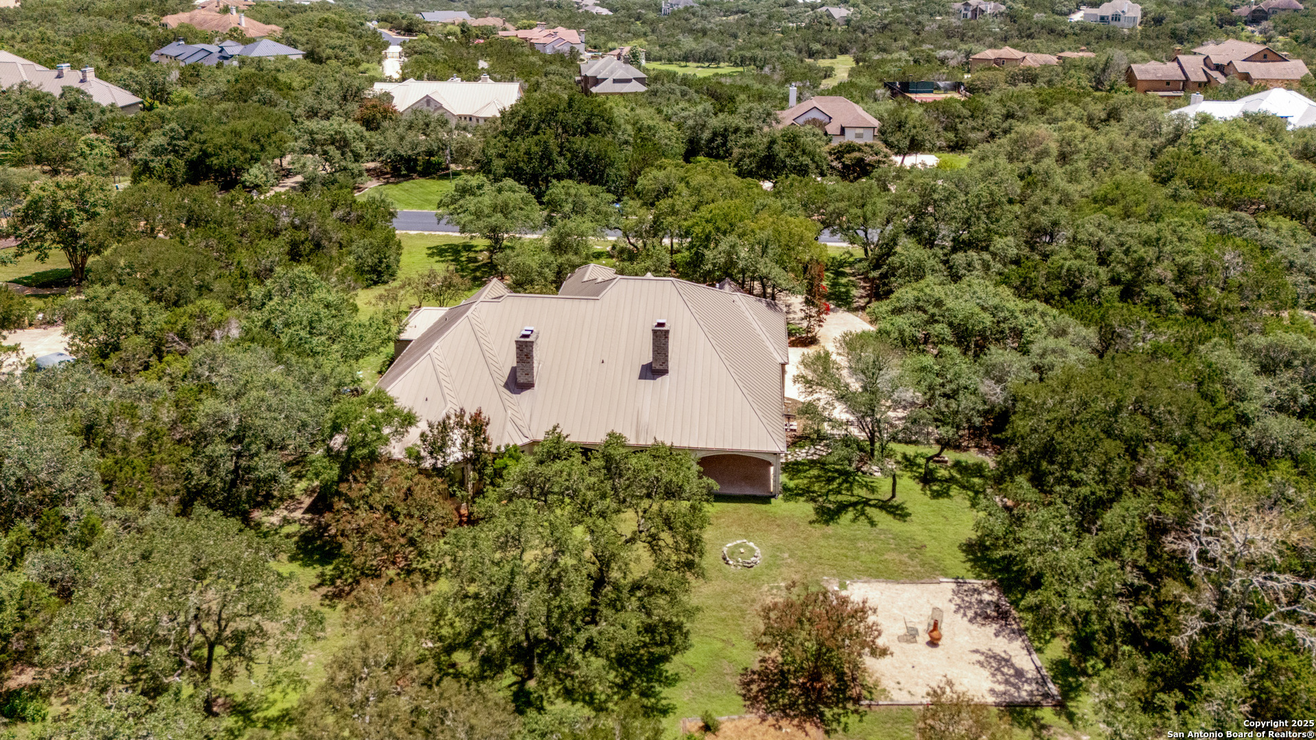 Welcome to your dream home in the heart of highly sought-after Fossil Ridge! Nestled on a picturesque 1.24-acre lot shaded by majestic oak trees, this meticulously maintained one-story custom residence blends timeless elegance with modern comforts. Step inside to find stunning wood floors, rich architectural details, and custom built-ins throughout. This thoughtfully designed home offers two spacious living areas and two dining spaces, ideal for both everyday living and grand entertaining. The gourmet island kitchen is a chef's dream-complete with gas cooking, stainless steel appliances, double ovens, custom cabinetry, and a butler's pantry-seamlessly flowing into the family room and kitchen dining area, both anchored by cozy fireplaces. The private primary suite is a true retreat, featuring its own fireplace, a sitting area, an expansive walk-in closet, and a luxurious spa-like bath with dual vanities, a jetted tub, and a walk-in shower. A versatile bonus room offers flexibility as a game room, home gym, or guest suite. Three generously sized secondary bedrooms include a Jack-and-Jill bath and an additional full bath for convenience. Enjoy peaceful Texas evenings or lively gatherings on the large covered back patio, overlooking a lush backyard with ample space for play, relaxation, or even a future pool. Located in the acclaimed NEISD school district with easy access to HWY 281, the JW Marriott, shopping, dining, and medical facilities-this home truly offers it all. This exquisite one-story custom home invites you to experience refined Hill Country living at its finest.
