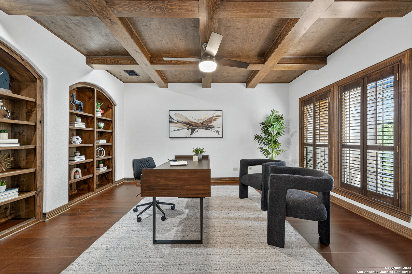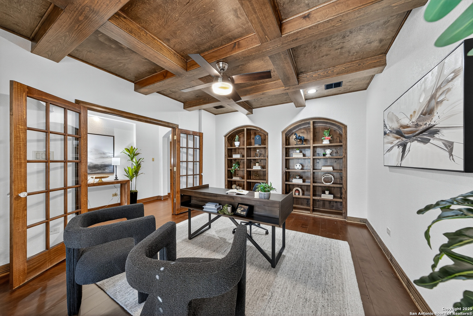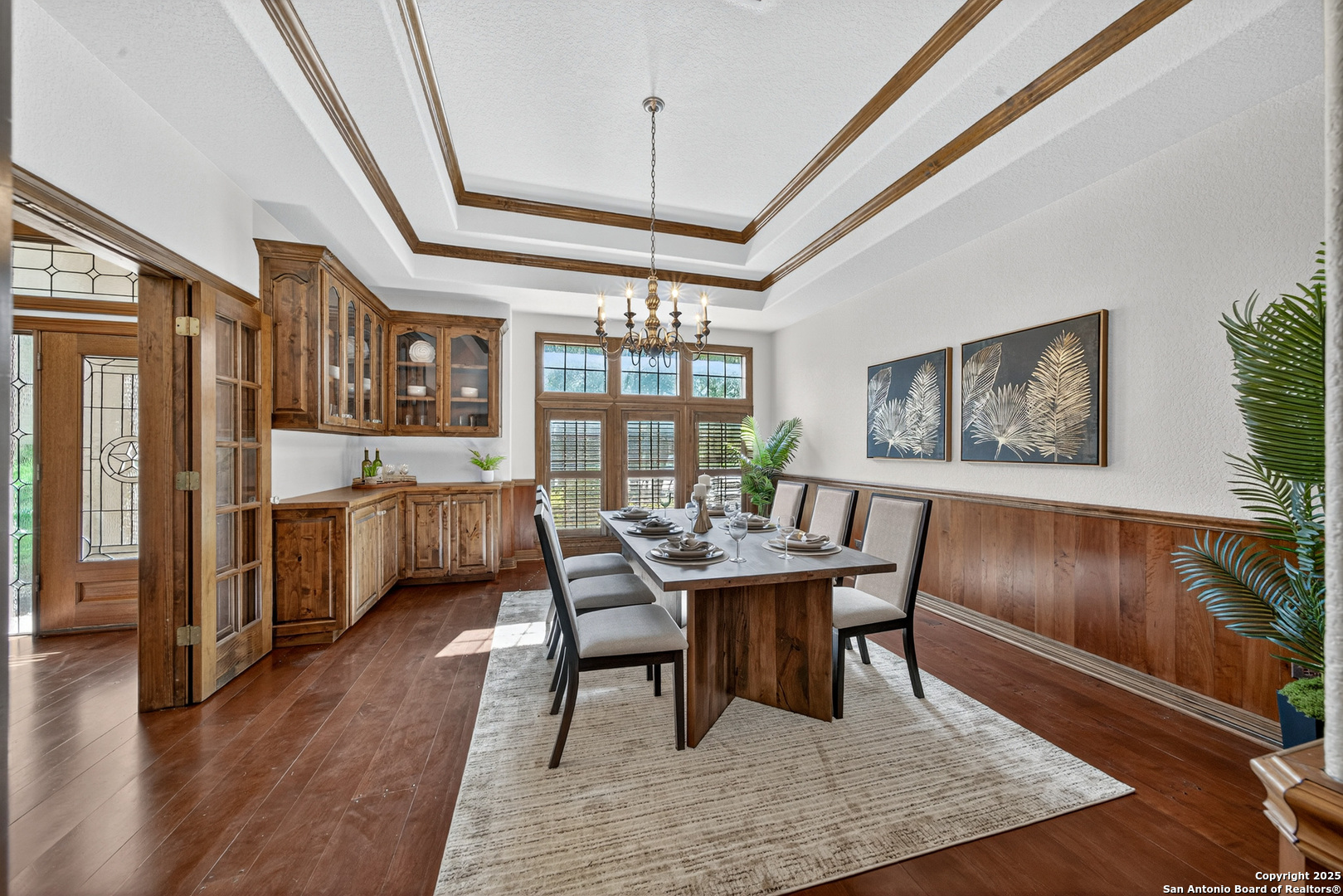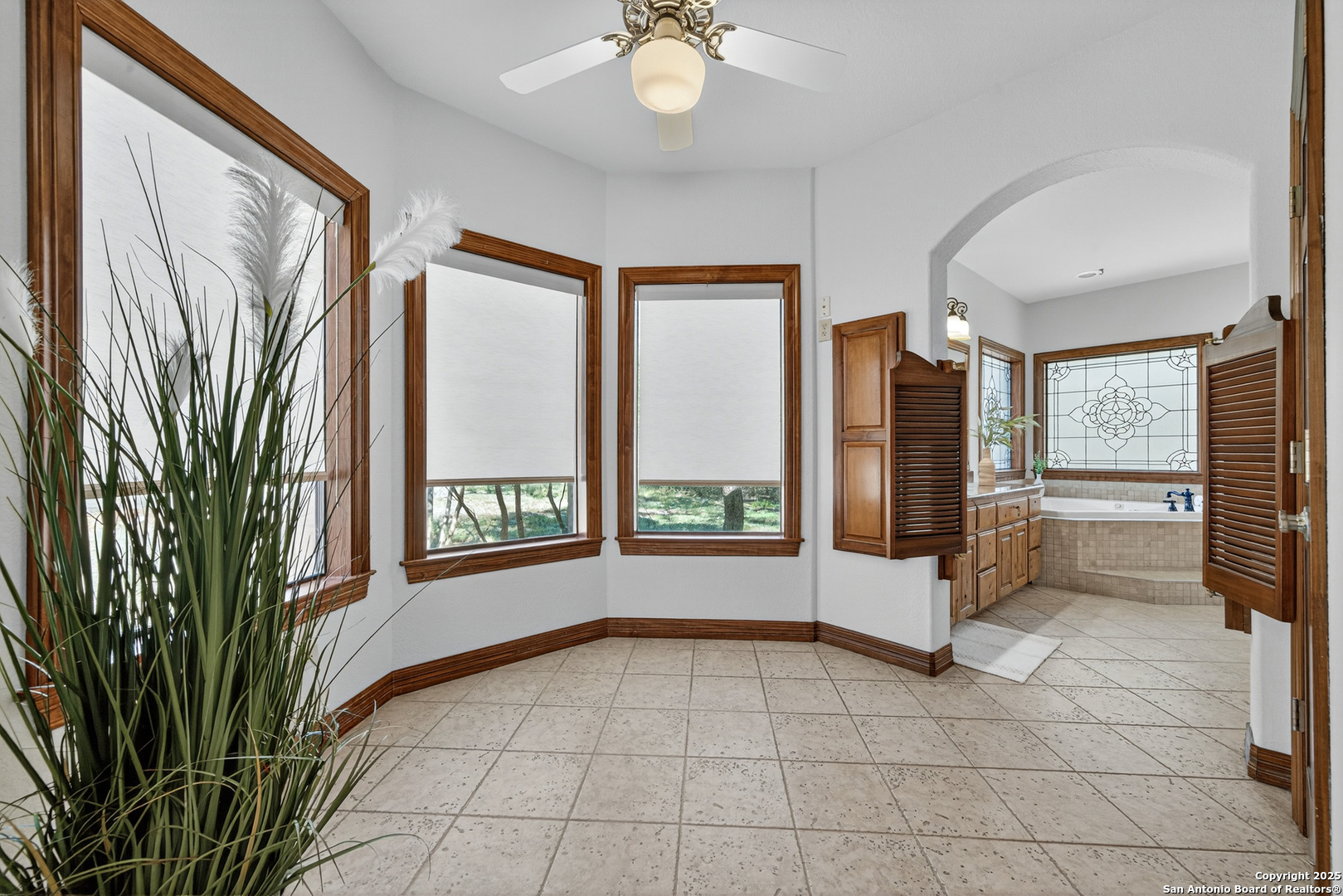 Welcome to your dream home in the heart of highly sought-after Fossil Ridge! Nestled on a picturesque 1.24-acre lot shaded by majestic oak trees, this meticulously maintained one-story custom residence blends timeless elegance with modern comforts. Step inside to find stunning wood floors, rich architectural details, and custom built-ins throughout. This thoughtfully designed home offers two spacious living areas and two dining spaces, ideal for both everyday living and grand entertaining. The gourmet island kitchen is a chef's dream-complete with gas cooking, stainless steel appliances, double ovens, custom cabinetry, and a butler's pantry-seamlessly flowing into the family room and kitchen dining area, both anchored by cozy fireplaces. The private primary suite is a true retreat, featuring its own fireplace, a sitting area, an expansive walk-in closet, and a luxurious spa-like bath with dual vanities, a jetted tub, and a walk-in shower. A versatile bonus room offers flexibility as a game room, home gym, or guest suite. Three generously sized secondary bedrooms include a Jack-and-Jill bath and an additional full bath for convenience. Enjoy peaceful Texas evenings or lively gatherings on the large covered back patio, overlooking a lush backyard with ample space for play, relaxation, or even a future pool. Located in the acclaimed NEISD school district with easy access to HWY 281, the JW Marriott, shopping, dining, and medical facilities-this home truly offers it all. This exquisite one-story custom home invites you to experience refined Hill Country living at its finest.