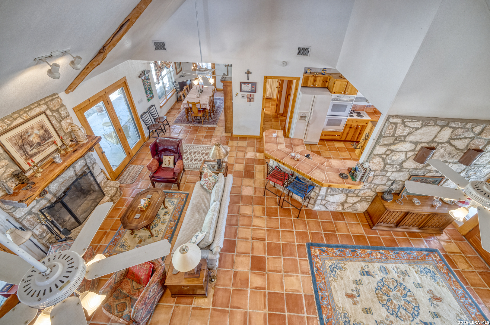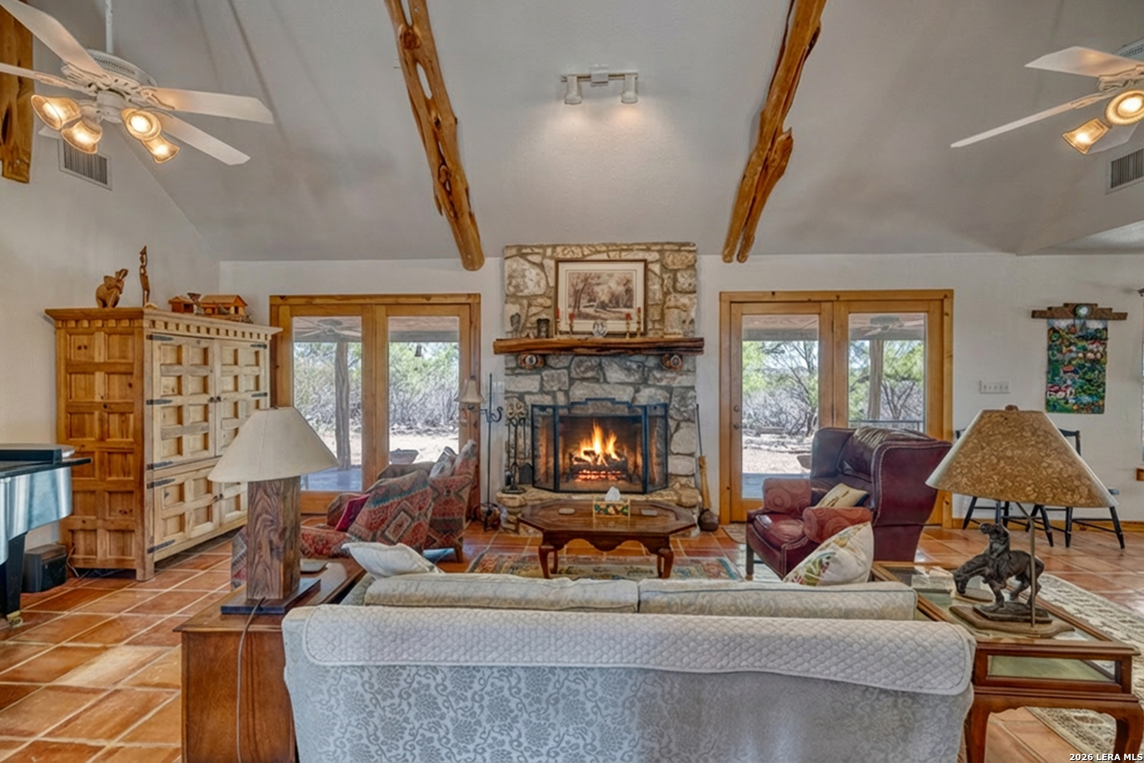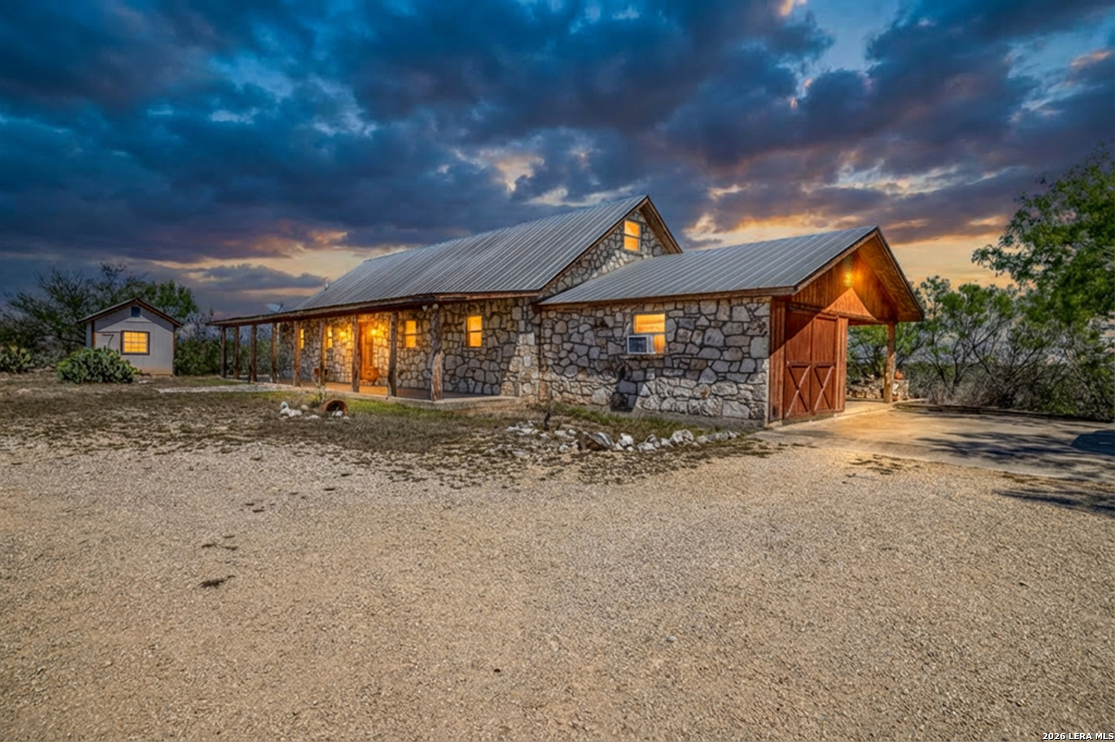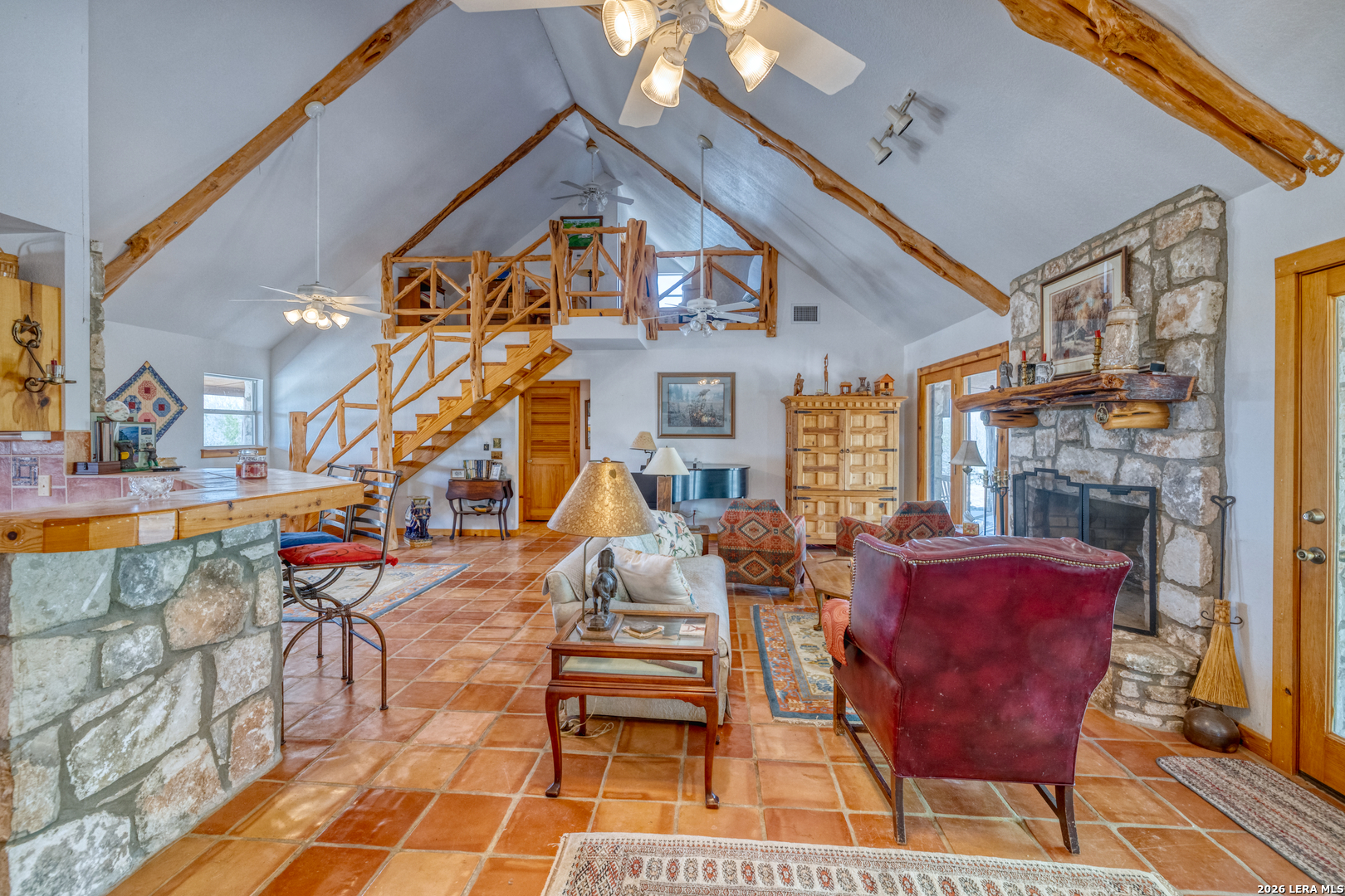 If you've been dreaming of a place where the deer show up like clockwork and the sunsets never disappoint-this is it. Set on 10 acres in Standing Rock, this 3-bedroom, 3-bath home is full of Hill Country charm-Saltillo tile, a gorgeous cedar staircase, vaulted ceilings with exposed cedar beams, and a big stone fireplace that practically begs for a cozy evening. The kitchen? You're going to love it. Custom cabinets everywhere-seriously, storage for days-so everything has its place and you still have room to spread out and enjoy cooking (or at least look like you do ). With a primary suite and guest room downstairs and a private upstairs guest suite, the layout works beautifully for everyday living and hosting. Outside, there's a wellhouse and a shop handily attached to the main house. A must-see .... Outside, you've got a generous covered patio, a rock firepit, and plenty of room to roam. Peaceful, private, and full of character-this is the kind of place people don't want to leave.