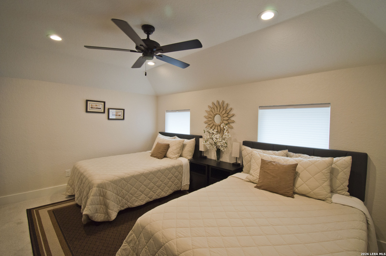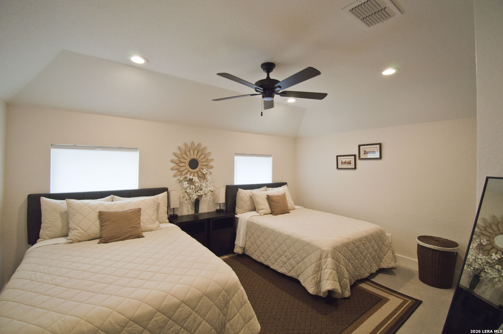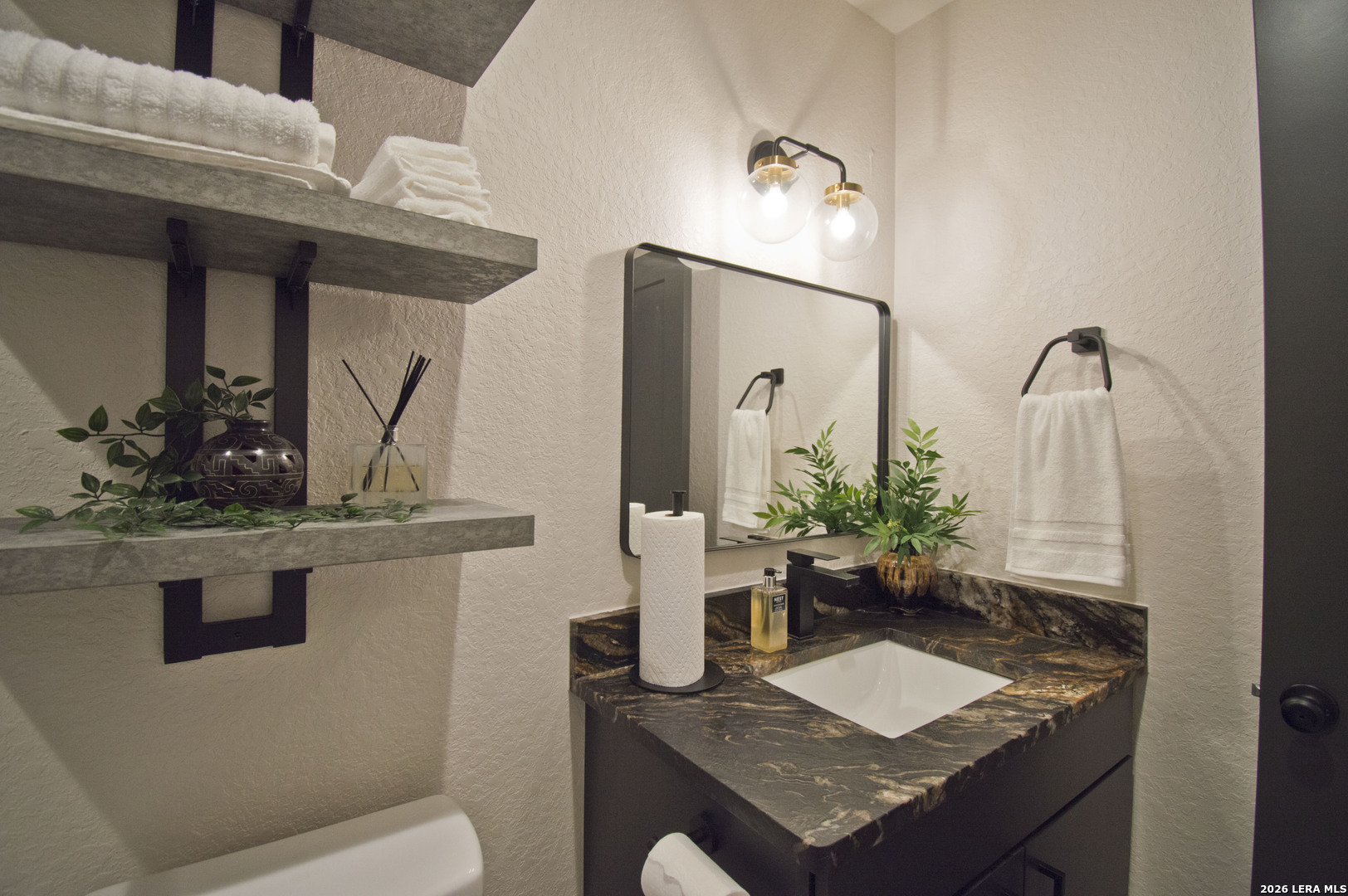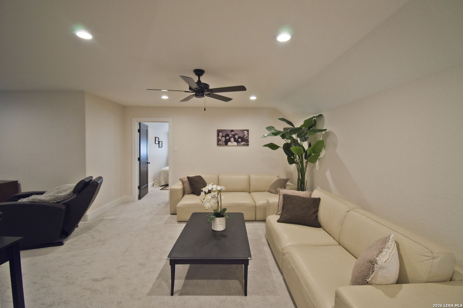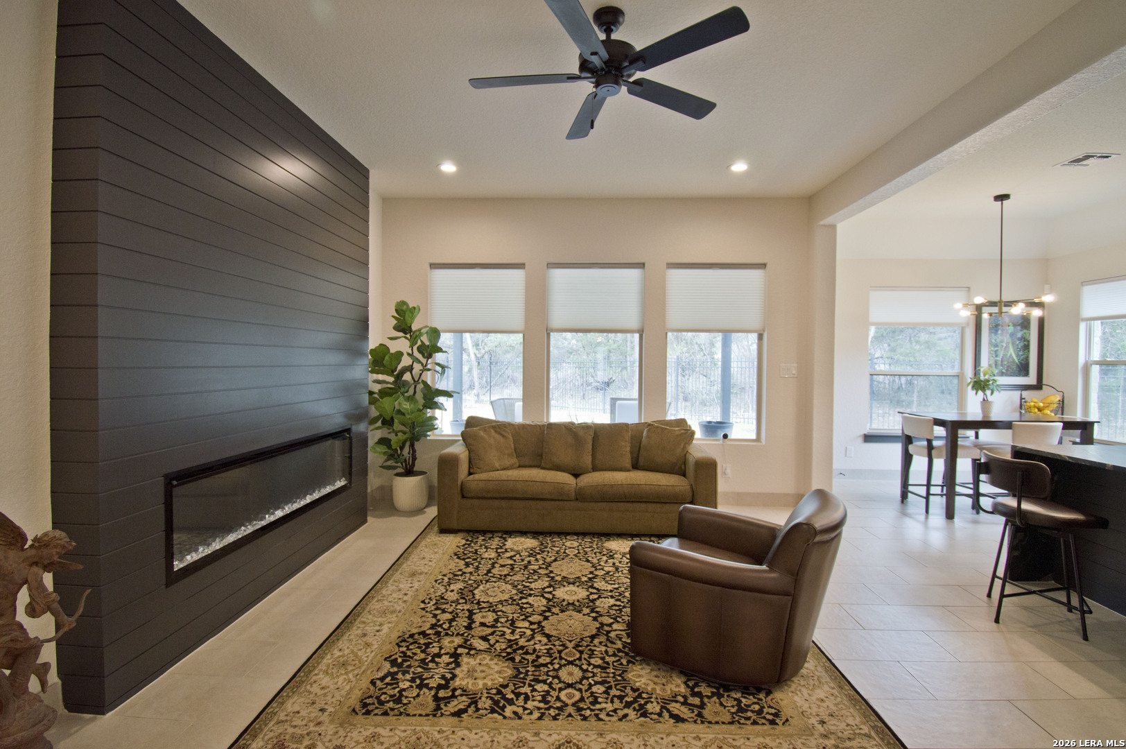 This thoughtfully and beautifully designed home is the perfect mix of Texas Hill Country and modern styles. Enjoy a gorgeous waterfall island kitchen with custom countertops. The open floor plan is perfect for entertaining. In the primary you will find double vanities, a soaker tub & separate shower. Upstairs there is an oversized loft perfect for a theater, playroom, or gaming area. Last but not least, enjoy the greenbelt behind your large backyard, giving you privacy and quiet.