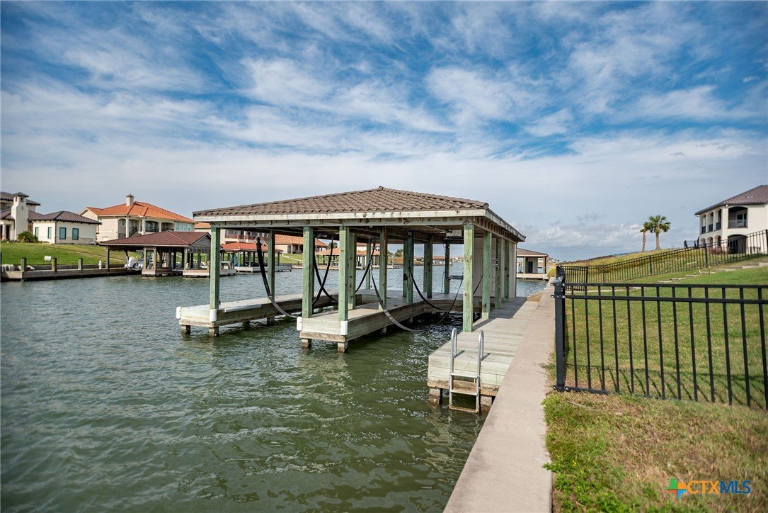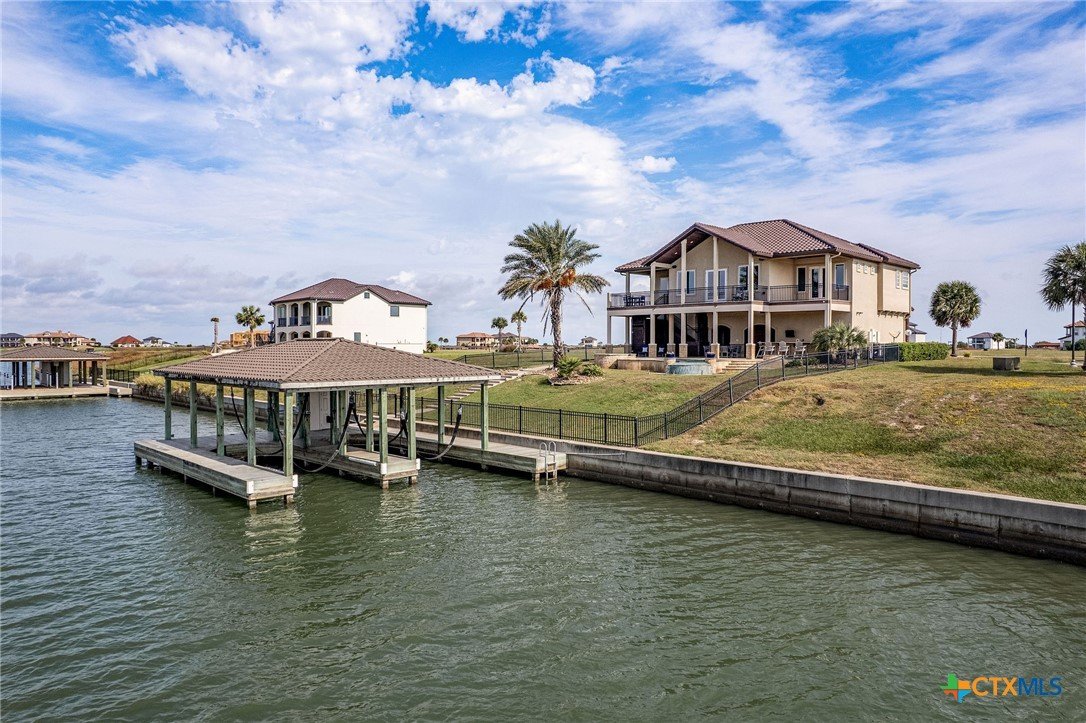 Waterfront home on cul-de-sac with unparalleled views of Espiritu Santo Bay, this custom home is one of a kind! With heated pool/hot tub overlooking the water, and an outdoor kitchen, mosquito mister, this home was built to entertain. Right off the patio and through the breezeway, enjoy the guest suite and bunk room suited for every child's dream. After a long day on the water, go upstairs to relax in the meticulously designed main living space, offering an open concept living room & kitchen fit for a chef, with wine fridge, cabinet lighting & 6-burner gas stove! Wake up and open your motorized shades for sunrise in the primary suite, offering a serene, spa-like ensuite bathroom. With a second story, split floorplan, this home offers two additional bedrooms off the living room, with a jack and jill bathroom. Even more impressive, the boathouse offers double slips and a fish cleaning table. Home sold furnished w/Generator! *More details under photos* Adjacent lot available as well!