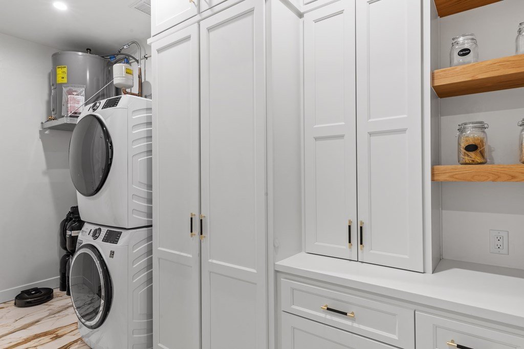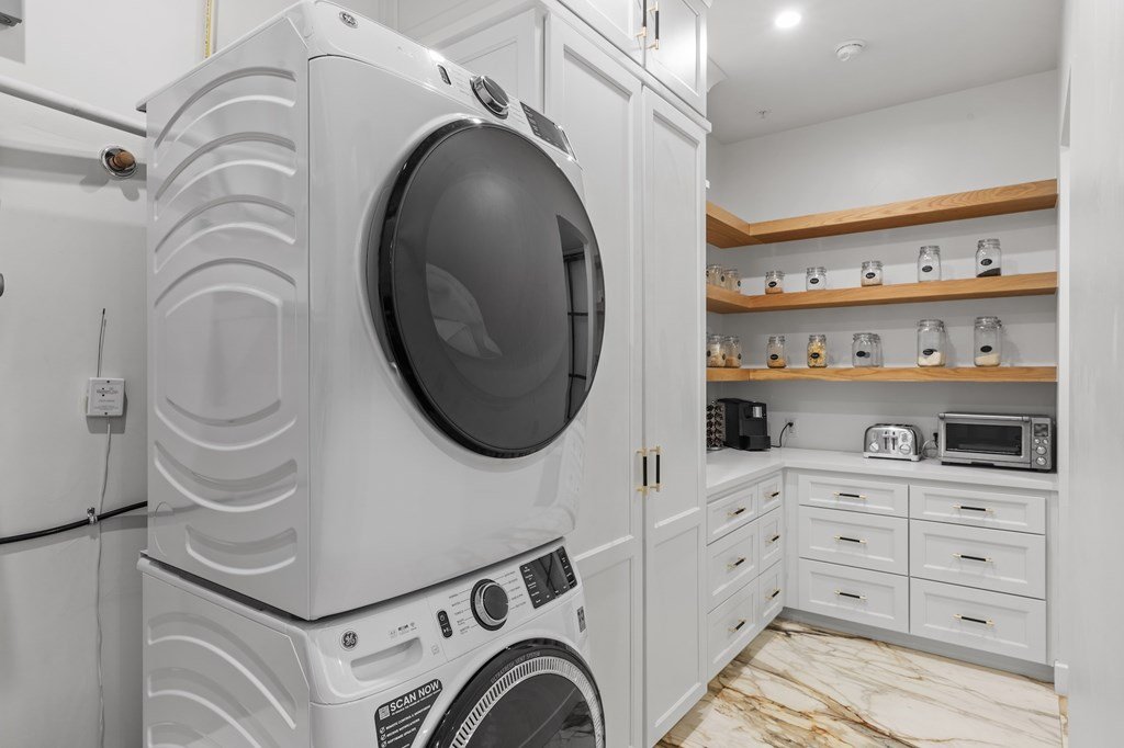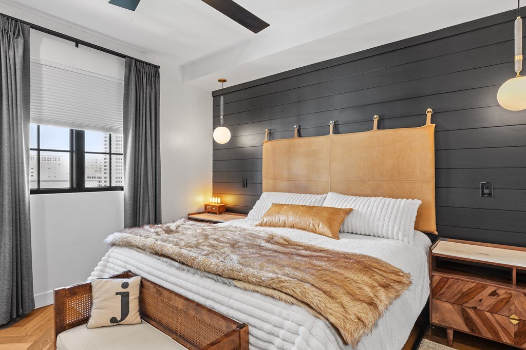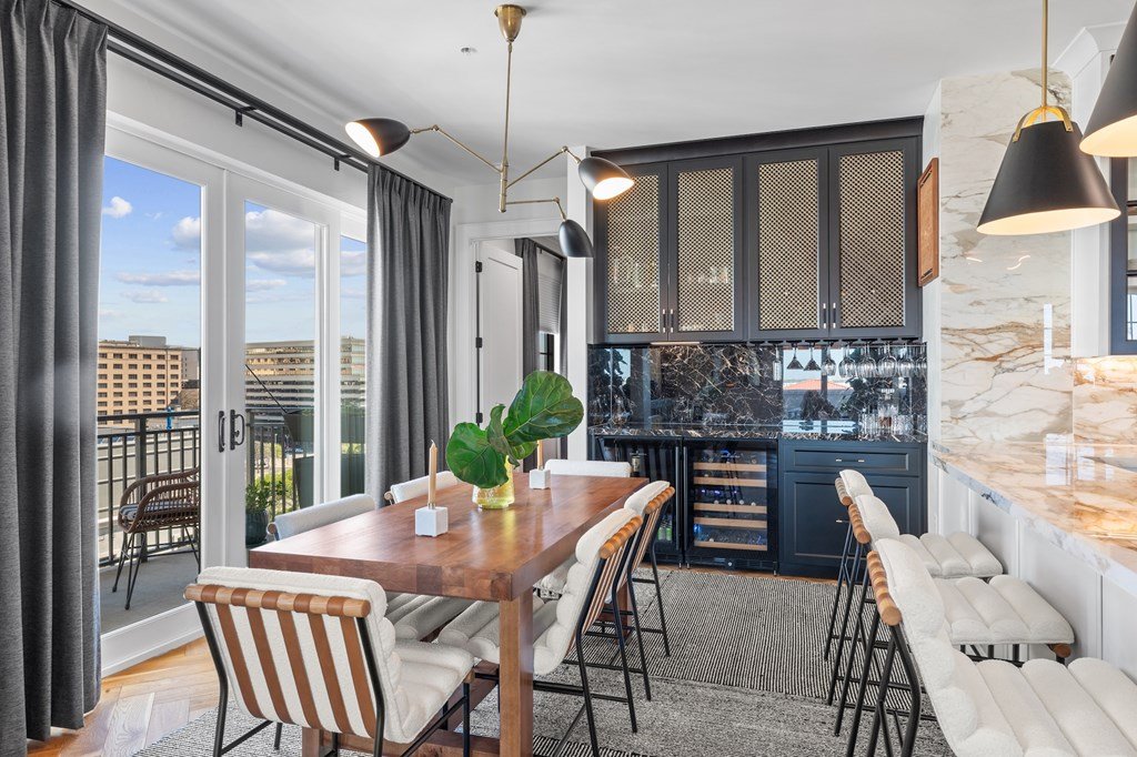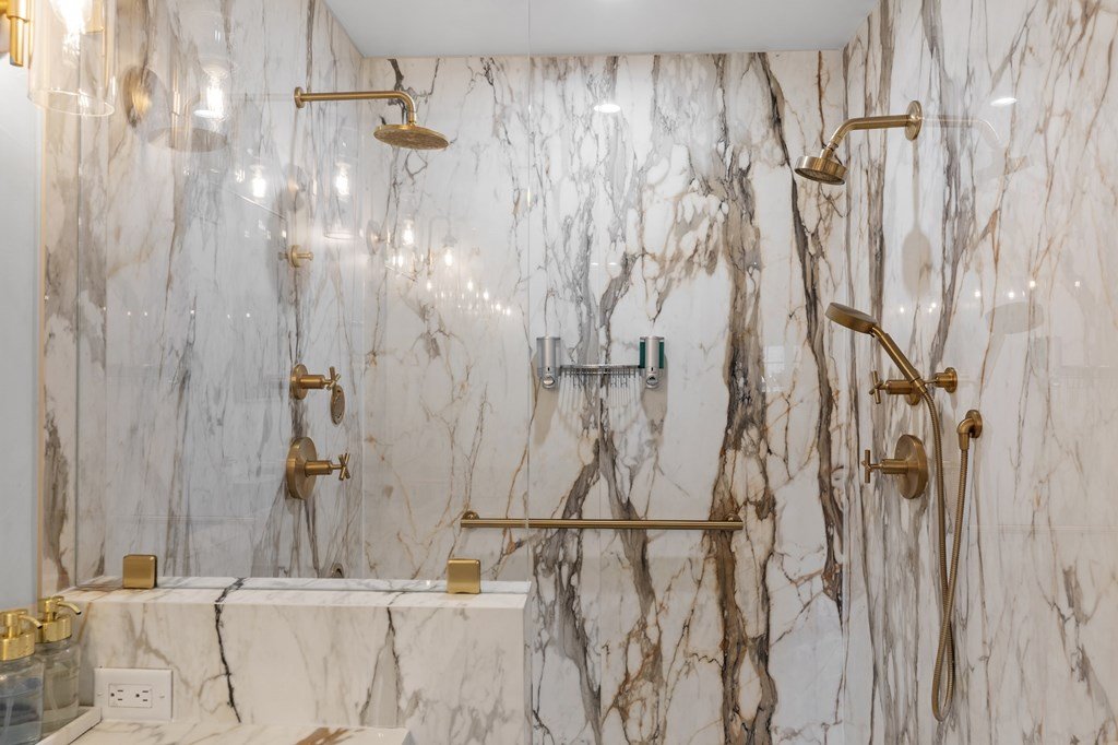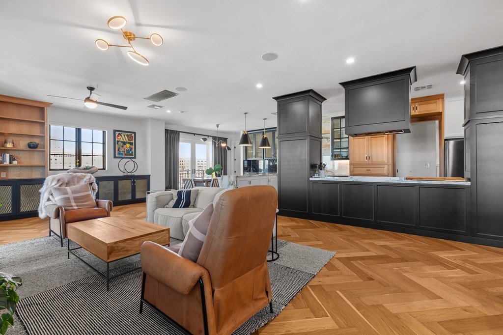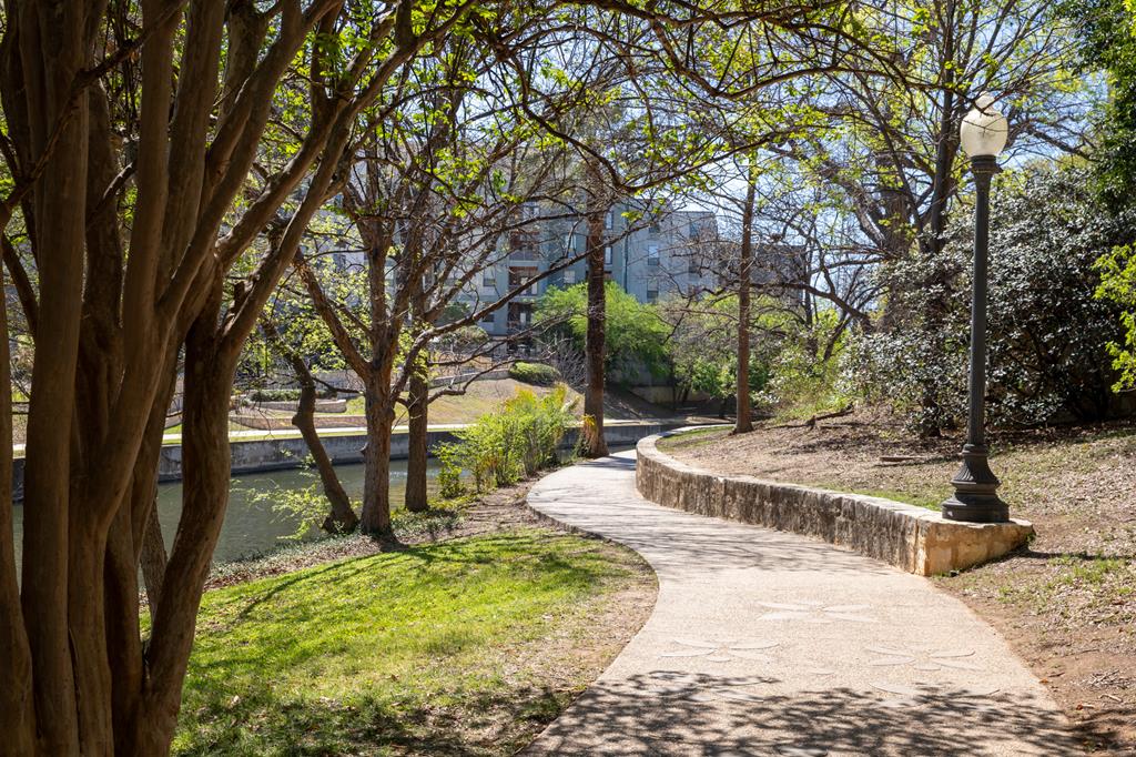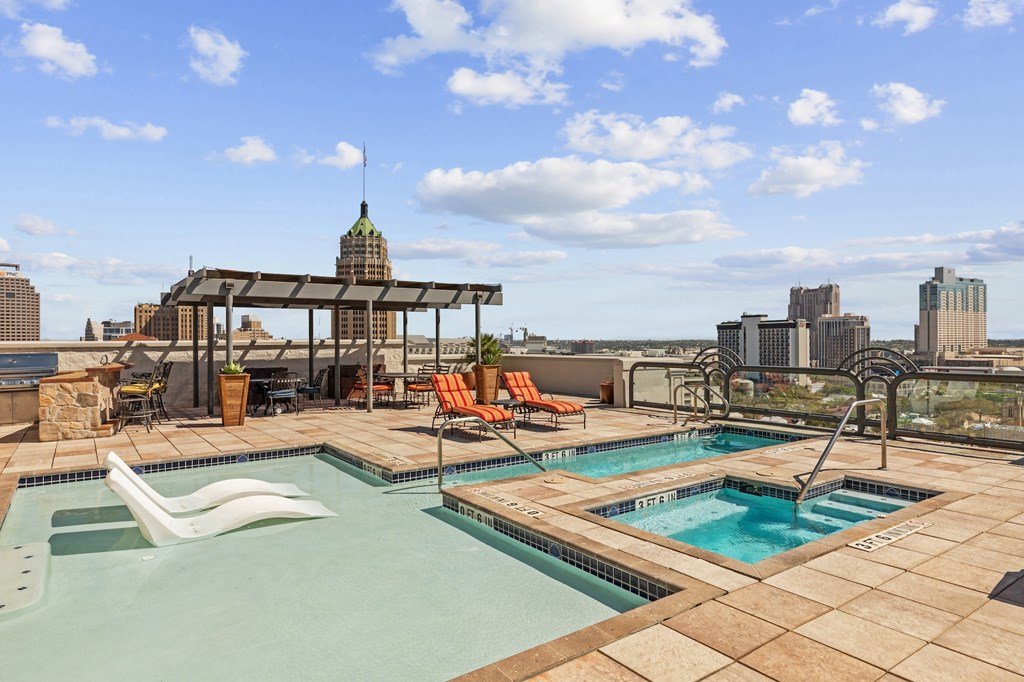 Positioned along the iconic San Antonio Riverwalk, this exceptional residence has been thoughtfully redesigned down to the studs in 2024, resulting in a truly one-of-a-kind, designer-caliber showpiece where every detail reflects uncompromising quality and refined taste. At the heart of the home, a stunning chef's kitchen pairs Michael Edwards three-tone white oak, white, and black custom cabinetry in a sophisticated palette with striking, sleek Moderno mitered-edge Daltile Calacatta Topaz porcelain surfaces, creating a seamless blend of warmth and modern elegance. A full suite of luxury appliances includes a Miele built-in plumbed coffee system and ZLINE Autograph Edition dual electric/6-burner gas range, French door refrigerator, and tall tub dishwasher, all stainless with signature gold accents, complemented by a GE convection oven and KitchenAid built-in microwave. A Blanco Vintera double-basin granite composite sink, Kinetico water softener, and reverse osmosis system elevate both form and function. The open-concept living space is designed for elevated everyday living and effortless entertaining, anchored by a dramatic Dimplex Ignite XL ventless fireplace set against a quartzite feature wall. Expansive Infinity by Marvin sliding French doors flood the space with natural light and open to an oversized 1,200 sq. ft. private terrace. Integrated Sonos surround sound and curated designer furnishings from Arhaus and Denver Modern complete the space. The primary suite offers a serene, spa-inspired retreat featuring a Saatva luxury king bed and custom black shiplap accent walls, while the luxuriously appointed bath features a Kohler PureWash bidet system, statement brass fixtures, and custom glass enclosure. A Robern Murray Hill cabinet and premium porcelain finishes further elevate the experience. The guest suite continues the same level of design, featuring a Hydro Systems whirlpool tub and custom glass surround. Outdoor living is equally impressive, with a generously sized 1,200 sq. ft. terrace enhanced by a ShadeTree canopy system and designer furnishings from Serena and Lily, offering multiple spaces for dining, lounging, and entertaining above the city. Additional enhancements include Karastan herringbone engineered wood flooring, motorized shades and custom drapery by Texas Shade Factory, architectural brass grille detailing, and thoughtfully integrated smart home features throughout. Turnkey and impeccably curated, this residence delivers a rare opportunity to own a fully customized luxury condo in one of San Antonio's most desirable urban settings where design, quality, and lifestyle converge. Property comes Turn-key as all furnishings convey. YouTube: https://www.youtube.com/watch?v=WEgHXX7NuTM