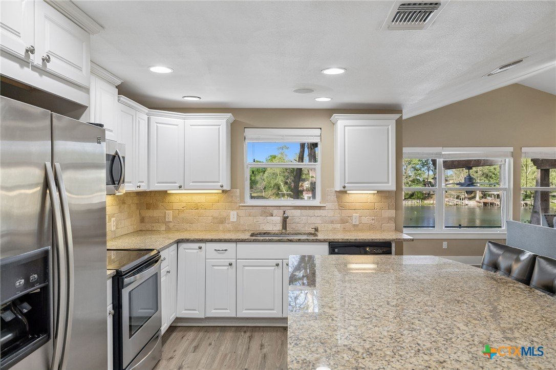 With the Lake Placid dam construction now complete, the lake is steadily rising and expected to reach full pool by May, restoring full recreational use and bringing renewed energy to the shoreline. This property features beautiful Lake Placid waterfront with direct water access, an improved retaining wall, and a private dock outfitted with one boat lift and two jet ski lifts. The setting supports boating, water recreation, and lakeside gatherings from the comfort of your own backyard. The outdoor environment includes a covered patio with pergola, mature trees for shade and privacy, and landscaped grounds designed for both relaxation and entertaining. Additional improvements include a fully fenced yard, electric gated entry, covered carport, storage shed near the water, and durable metal roof. Interior spaces are bright and functional, featuring abundant natural light, integrated sound speakers, and a layout designed for everyday living. A separate apartment-style guest suite adds flexibility for visitors, extended family, or rental opportunities.