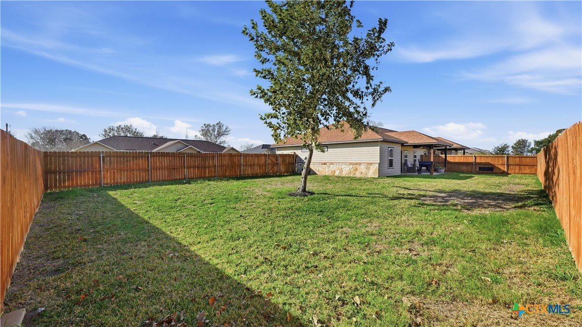 Welcome home to effortless living! This beautifully maintained 3 bedroom, 2 bath residence in the Navarro Crossing community offers the perfect blend of comfort, style, and convenience. Built in 2018, the home sits on a large end lot and features durable ceramic tile throughout, soft neutral tones, and an open layout designed for everyday living and entertaining. The kitchen showcases rich hardwood cabinetry and flows seamlessly into the living area. Retreat to the private primary suite featuring a charming farmhouse-style sliding door leading to the en-suite bath. Step outside to a surprisingly large backyard with a covered patio, ideal for morning coffee, weekend gatherings, or quiet evenings outdoors. Enjoy the ease of low-maintenance living with an HOA that covers exterior insurance, lawn care such as hedge trimming, grass cutting, planting new plants and trash service. Conveniently located near I-10, downtown Seguin, Texas Lutheran University, and within Navarro ISD, this move-in-ready home offers lifestyle, location, and value.