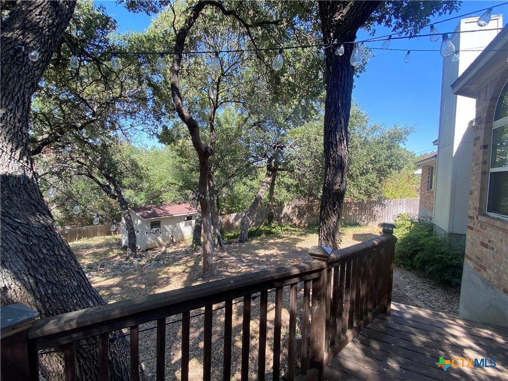 Four bedroom home in desirable Red Rock Hills Community. Split floorplan, formal and informal dining areas, fireplace and large, shady backyard with shed. Belton school district. Community pool and playground.