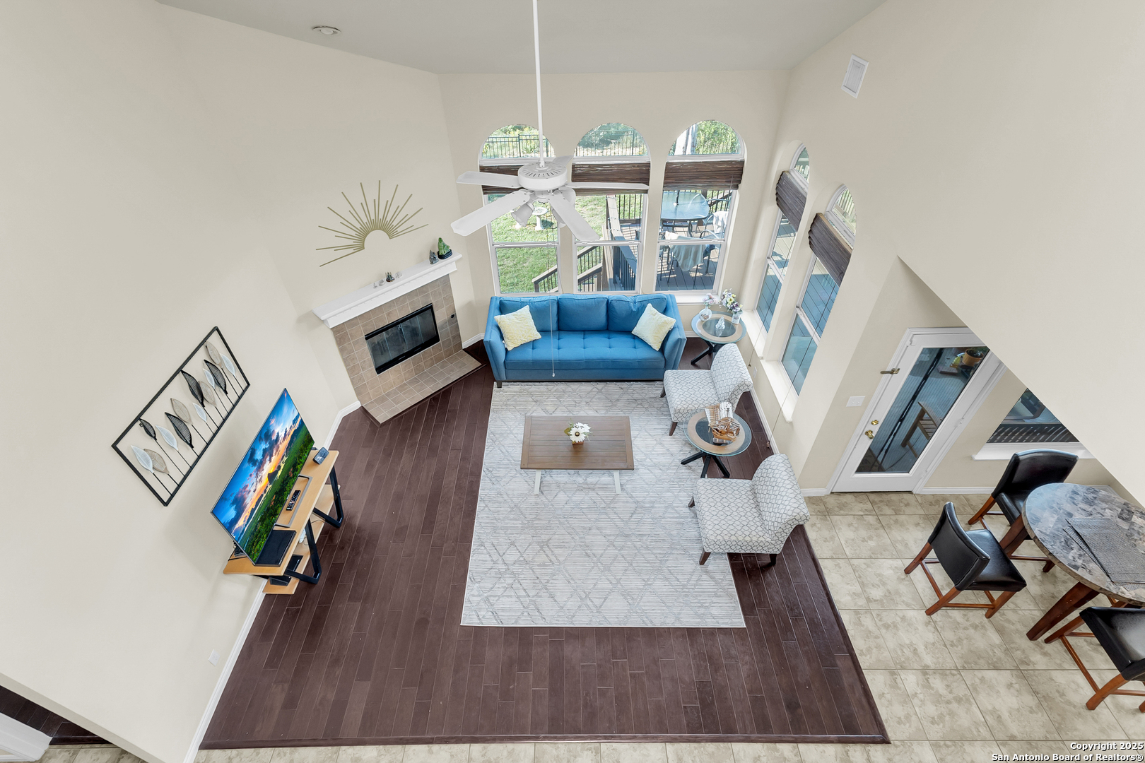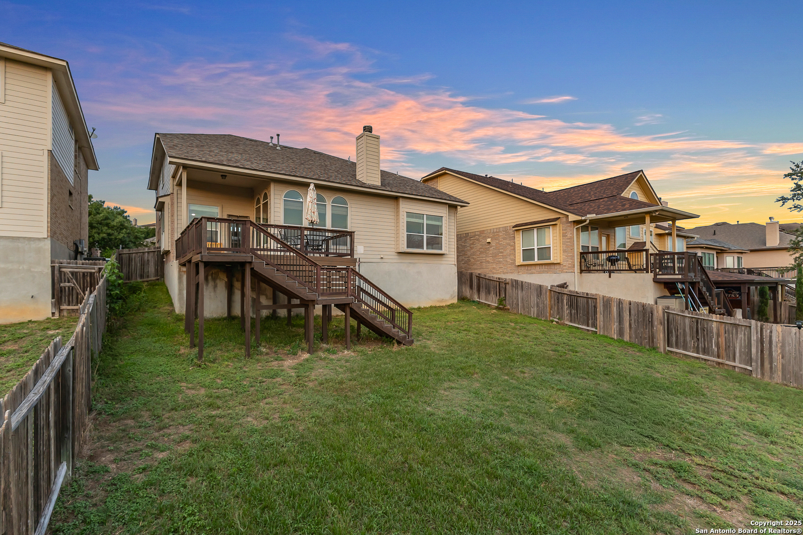 **Open House Sat 11/22 & Sun 11/23 from 1-4pm** Stunning Greenbelt Home with Hill Country Views! Located in the highly sought-after Mountain Lodge community near Stone Oak, this 4-bedroom, 2.5-bath home offers 2,583 sq. ft. of comfort and privacy in a secure gated setting. The open floor plan features a two-story family room and foyer filled with natural light, highlighted by a corner fireplace and large windows overlooking the greenbelt. Hand-scraped Hickory wood floors extend through the main living areas and primary suite, adding warmth and character. The kitchen offers stainless steel appliances, granite counters, and a walk-in pantry. The primary suite is located downstairs for convenience, with three additional bedrooms and a large game room upstairs. Enjoy the spacious deck and backyard with direct greenbelt access and beautiful Hill Country views. Mountain Lodge offers gated entry, two pools, a playground, basketball court, and recreation areas. Served by top-rated NEISD schools and close to US-281, shopping, dining, and medical centers-plus no city taxes-this home combines comfort, views, and convenience in one of North San Antonio's most desirable communities.