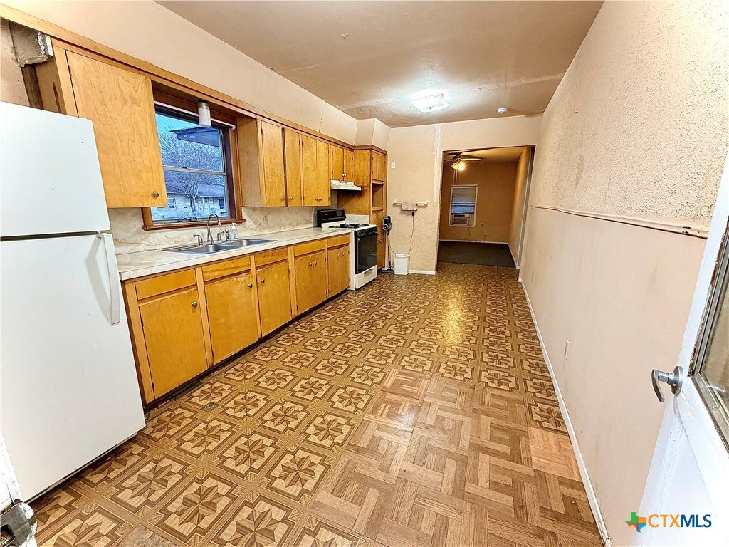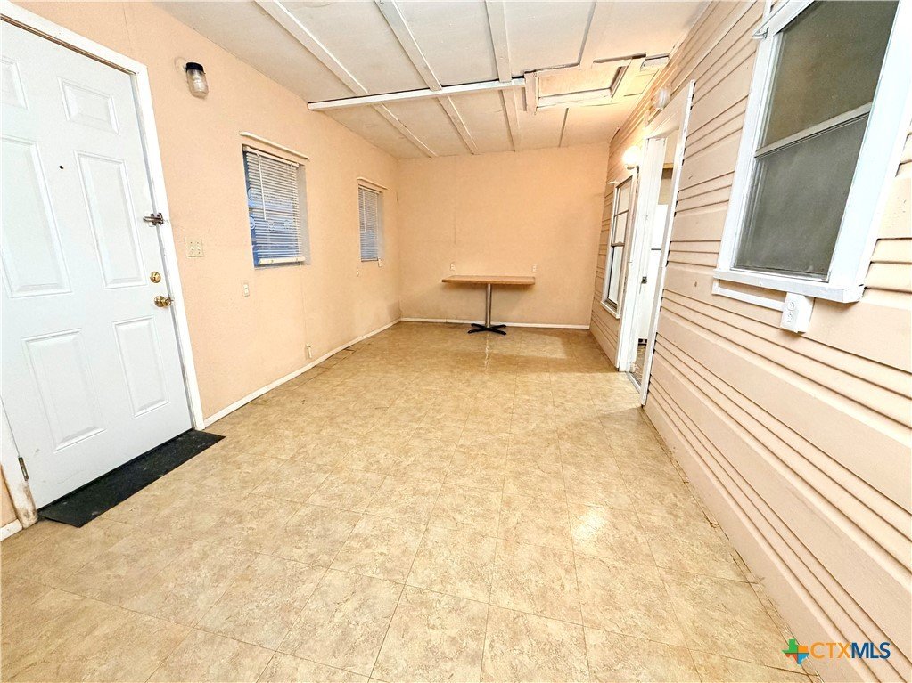 Well-located resale opportunity near downtown Seguin with continued growth throughout the surrounding area. Property is being sold as-is and was acquired in its current condition. Home is functioning with utilities currently on. The original living area is approximately 952 sq ft per city records. Per owner, the total enclosed area is approximately 1,301 sq ft, including a converted garage providing additional interior space (buyer to verify square footage, use, and condition). This area includes exterior access and may be used as flex space, office, or additional sleeping area. Washer and dryer will convey, along with kitchen appliances including refrigerator and gas range. Window A/C units will also convey. Exterior walls and attic are insulated, contributing to comfort. Nice-sized yard with convenient access to downtown, schools, and local amenities.