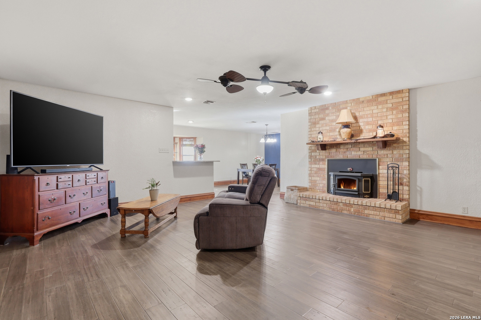 Situated on 3.11 acres, this spacious 4-bedroom, 2.5-bath home offers comfort, versatility, and exceptional outdoor amenities. The inviting living room features a classic brick fireplace, creating a warm focal point for gatherings. The galley kitchen provides abundant counter space and cabinetry, a charming bay window, and an adjoining dining area. The primary suite includes a private ensuite bath, while three additional bedrooms offer flexibility for guests, hobbies, or a dedicated home office. A bright sunroom adds additional living space and overlooks the expansive property. Outdoor features truly set this property apart. The backyard includes a huge covered patio and spacious 2 bay shop with built-in storage/shelves. The property is thoughtfully equipped for hobby farming or livestock, featuring a fully outfitted chicken coop with automatic waterer, solar-powered automatic chicken door with dawn/dusk timer, easy-clean nesting boxes, large roost accommodating three dozen or more hens, shaded placement for summer comfort, fan for hot days, and automatic interior light on timer to guide hens to roost. On the back side of the shop, a full-length covered area provides ideal space for hay storage, tractor parking, equipment, or livestock use. The property also includes six covered stalls, two pigeon coops (water and power available but currently turned off), and two concrete bull waterers located in front of the covered stalls. This property offers the perfect blend of comfortable living and functional acreage, ideal for those seeking country living with space for animals, equipment, and outdoor enjoyment.