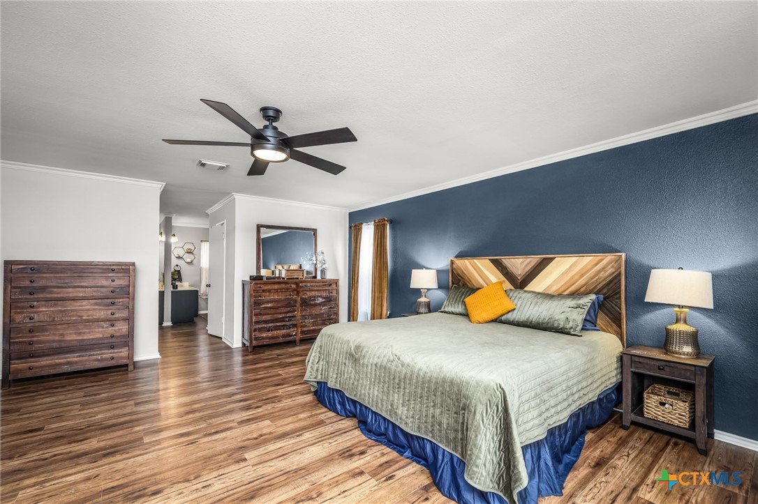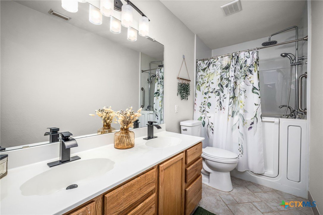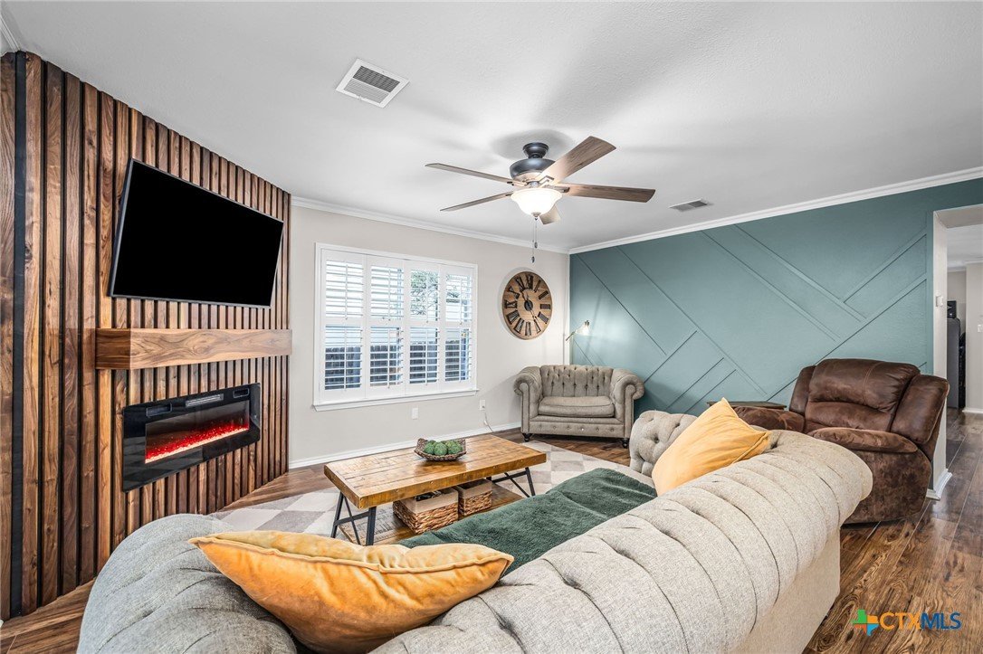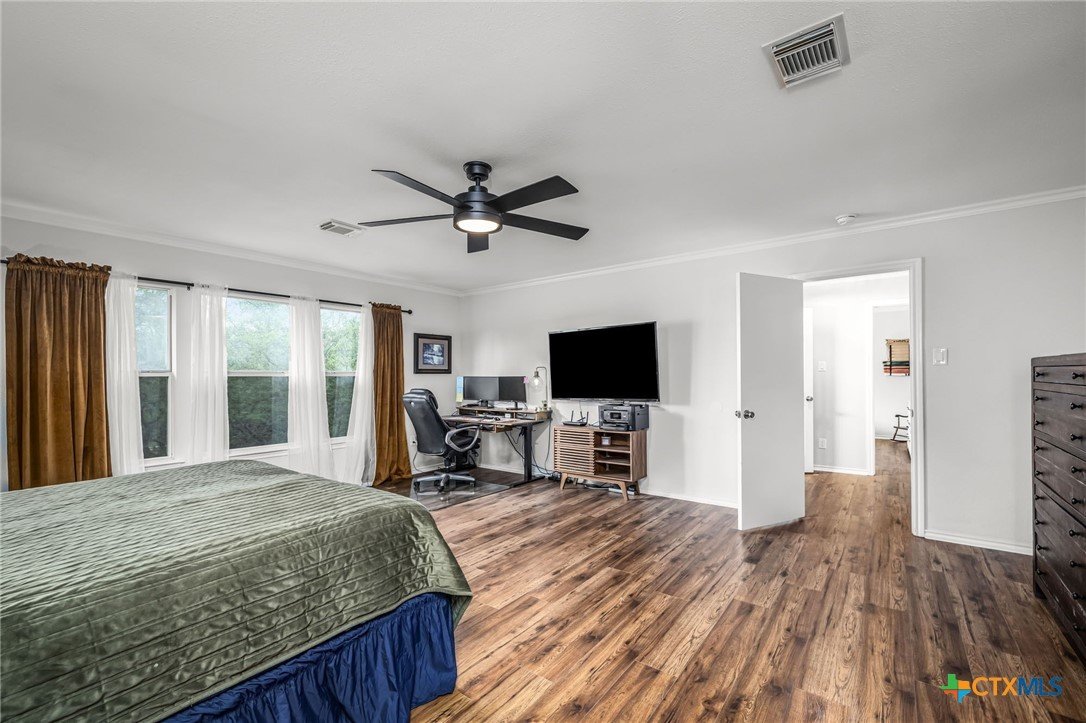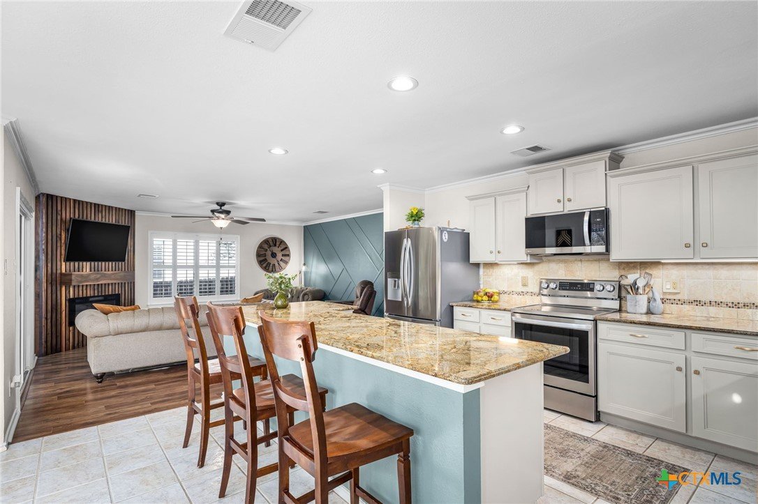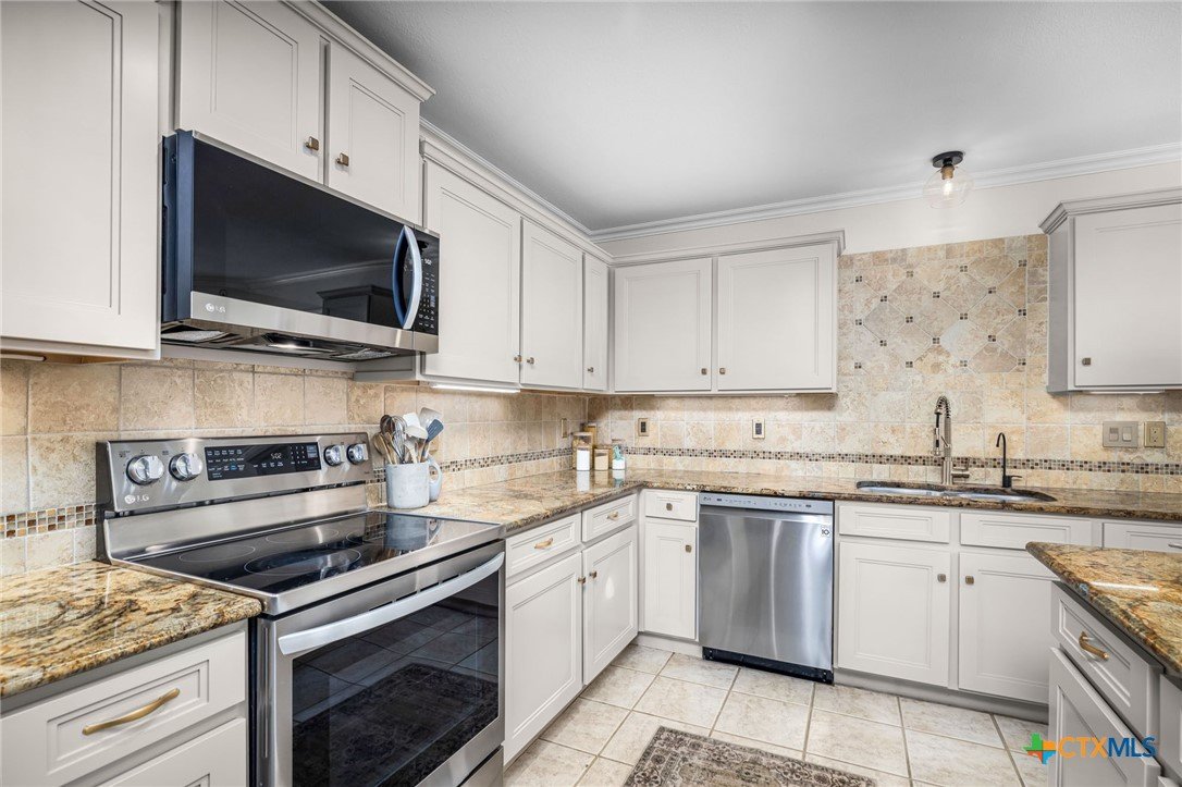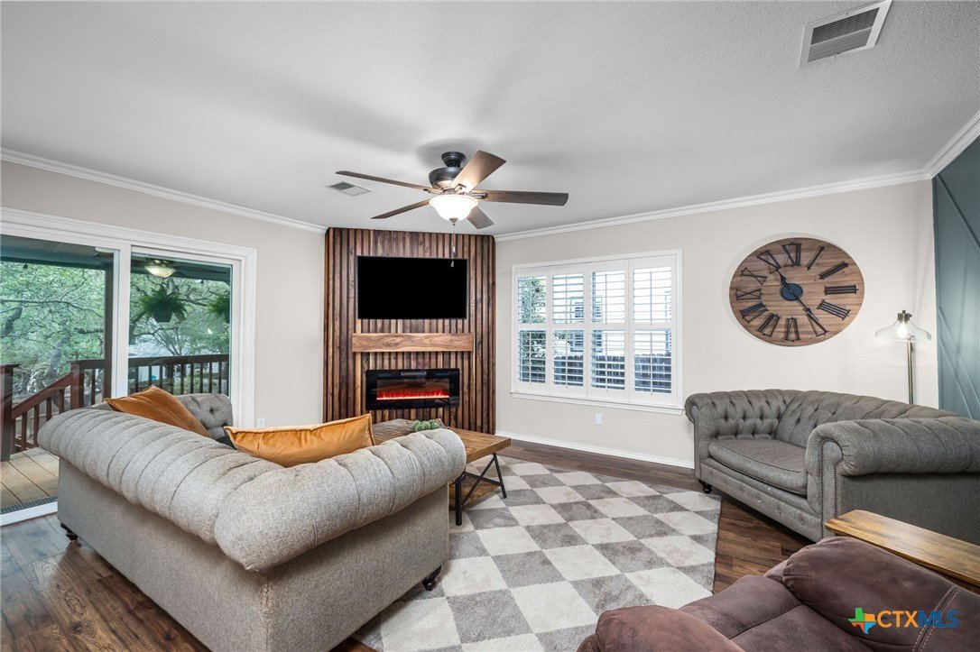 Beautifully maintained two story home nestled in a quiet, mature neighborhood in the highly desirable Ashley Place community. Situated on a generous 0.18 acre lot, this impressive home offers 2,537 sq ft of thoughtfully designed living space w/3 bedrooms, a large flex room, 2.1 bathrooms, and a 2 car garage. The inviting entry opens to a spacious flex room, perfect for formal dining, home office, or playroom, unlimited options! The open concept floor plan features a bright eat in kitchen w/granite countertops, reverse osmosis water filtration system, LG stainless steel appliances, custom upgraded cabinetry w/soft close doors, stylish pulls, under cabinet lighting, and an oversized walk in pantry. The expansive living area is designed for comfort and entertaining, showcasing a gorgeous accent wall, custom walnut mantel w/fireplace, plantation shutters, and elegant crown molding. The private primary suite offers a true retreat with a luxurious en suite bath featuring dual vanities, a garden tub, separate shower, and his and hers walk in closets. All secondary bedrooms are generously sized. Step outside to your own resort style backyard oasis, complete with a covered patio, two tiered deck, and mature trees that provide both beauty and privacy, perfect for relaxing evenings or hosting gatherings. Conveniently located near highly acclaimed SCUISD, JBSA-Randolph, dining, entertainment, and exceptional shopping. Loaded with upgrades; this home is a must see to truly appreciate!