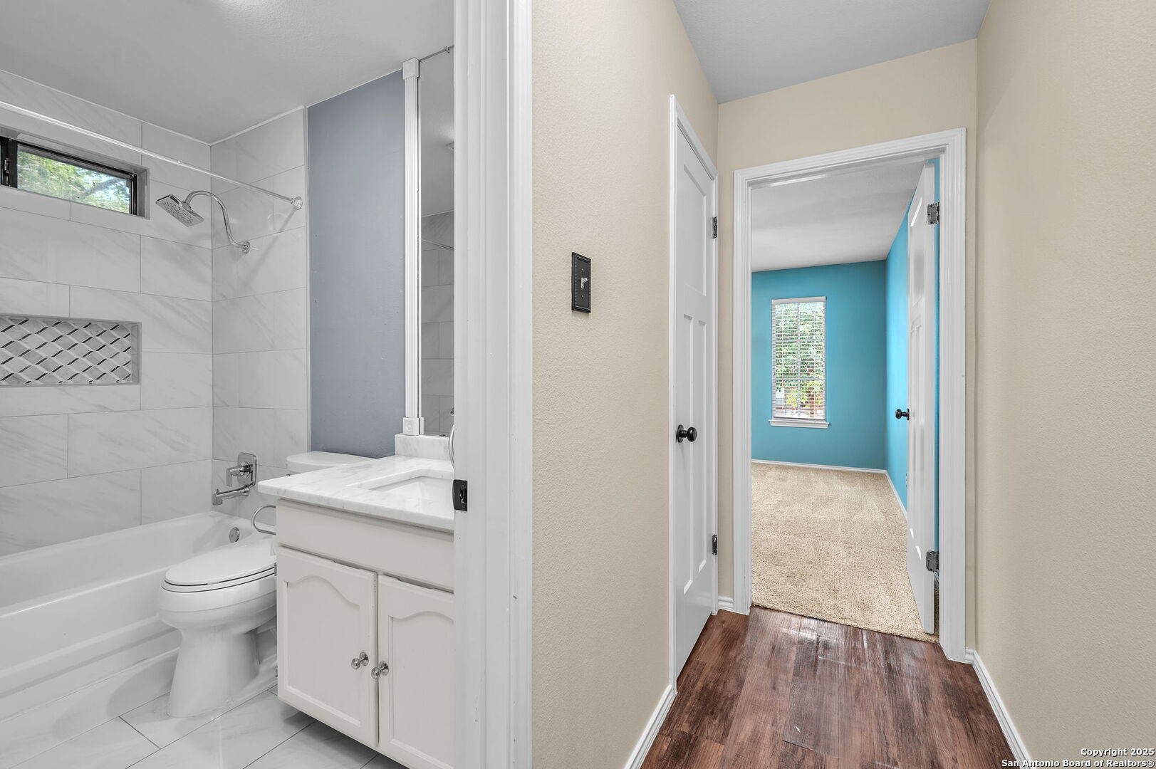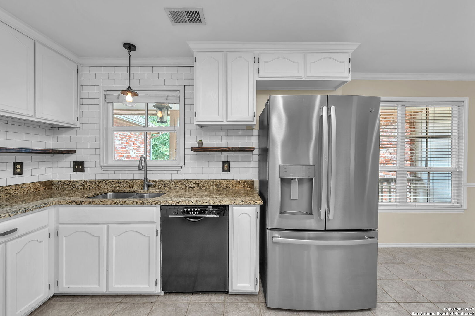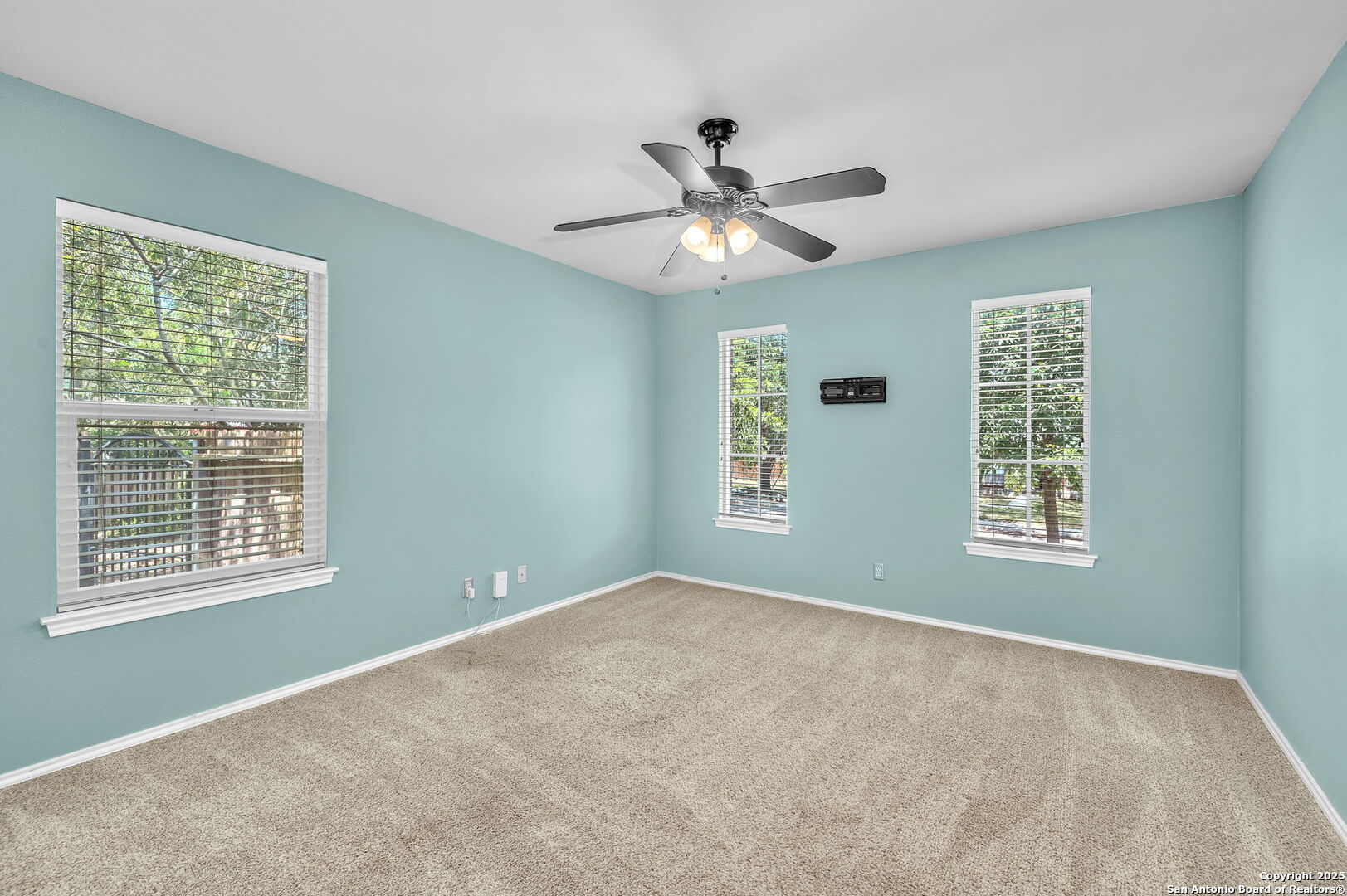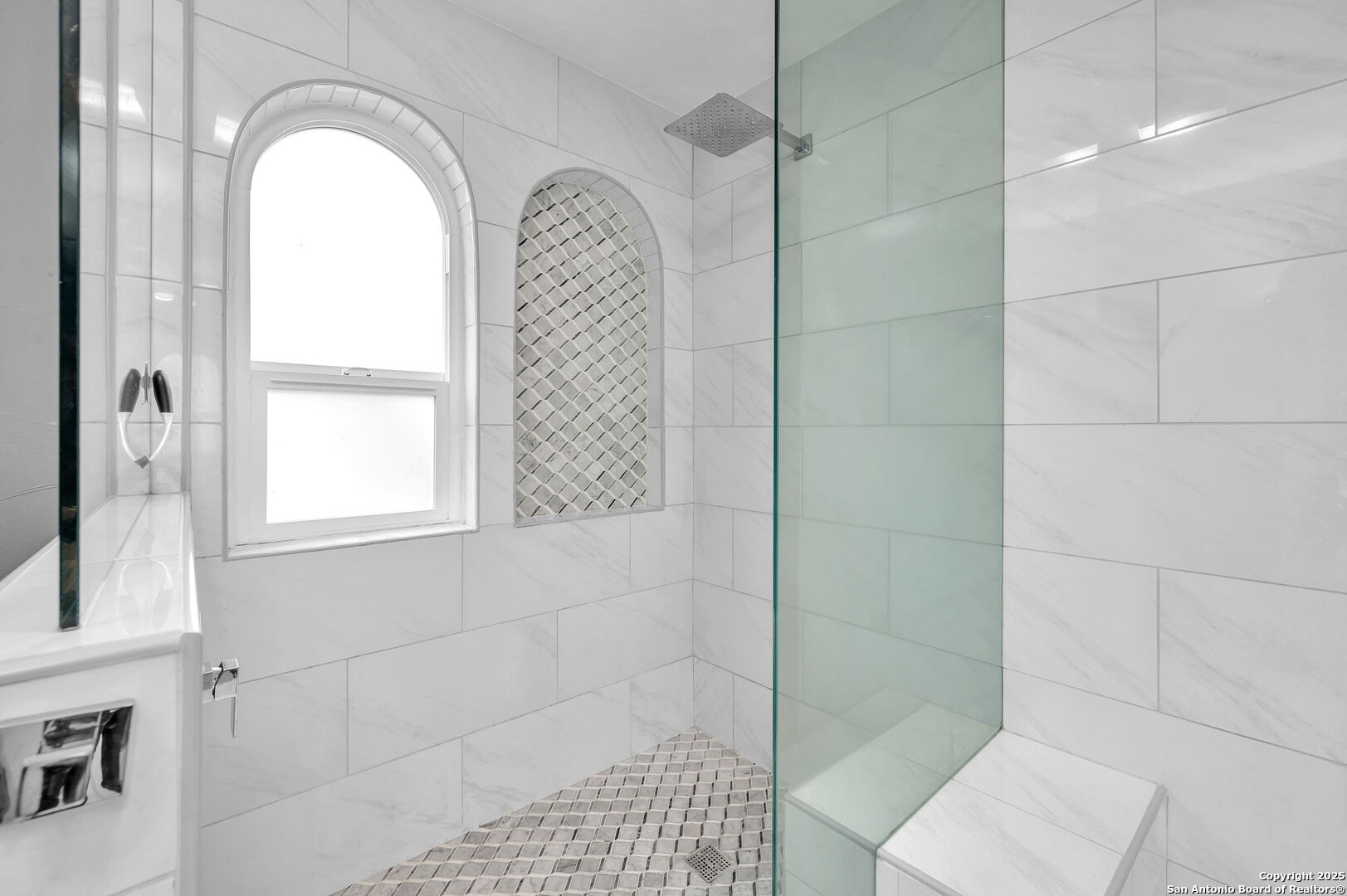 Move-in ready and full of character, this beautifully updated 3-bedroom, 2-bath home is nestled in the sought-after Encino Park community. Step inside to discover soaring 16-foot vaulted ceilings in both the living room and the primary suite, creating an open and inviting atmosphere ideal for entertaining or unwinding. The spacious primary suite offers dual walk-in closets and a luxurious, newly renovated bathroom featuring an Italian marble double vanity and an oversized walk-in shower that evokes a spa-like retreat. The guest bath has also been stylishly updated, enhancing the home's modern appeal and move-in-ready condition. Enjoy the charm and convenience of Encino Park's established community, known for its mature trees, neighborhood amenities, and friendly atmosphere. Outside, you'll appreciate easy access to Hwy 1604, Hwy 281, TPC Parkway, and a variety of nearby shops, restaurants, and entertainment options. Beautifully maintained and thoughtfully upgraded, this home blends modern comfort with timeless appeal-an excellent choice for those seeking a ready-to-enjoy property in one of North San Antonio's most desirable areas.