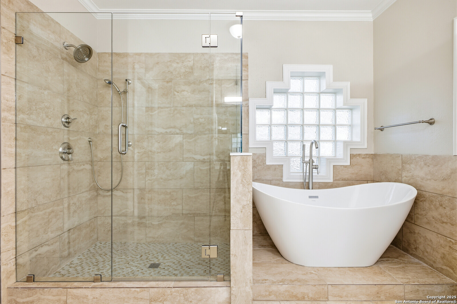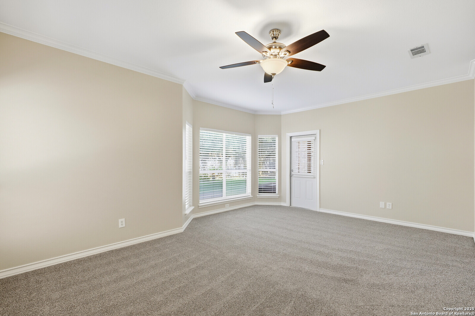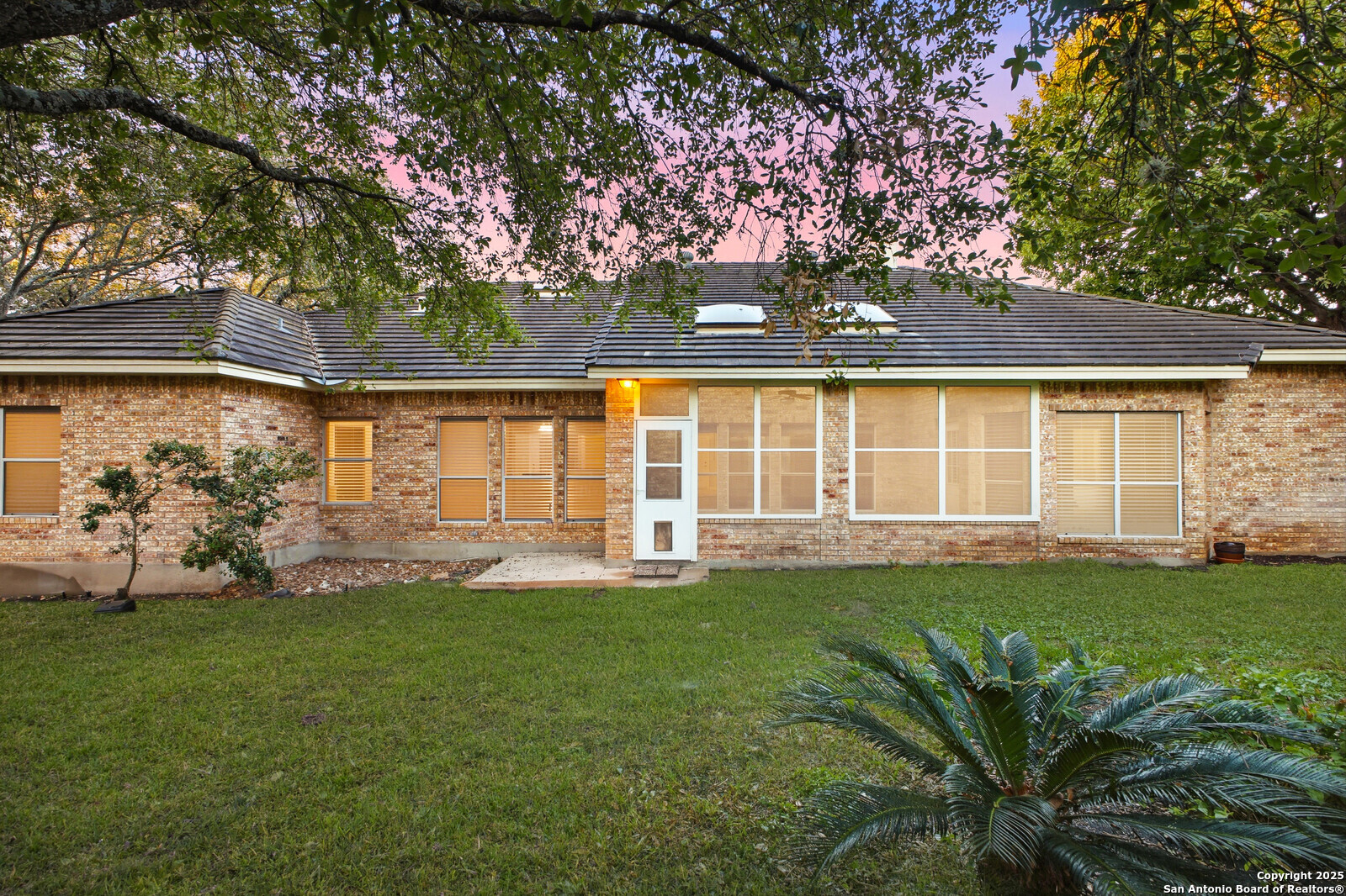True, it's the truth....ONE STORY, 5 bedrooms and a study or flex space. Large dining room, large family room open to the large kitchen, new carpet, wood floors in family room and a screened in back porch to protect us from the mosquitoes! Did I mention a 3 car garage?? Yes, it's true. Enjoy a amazing kitchen for a cook that needs space! New Oven and Microwave. Primary bath has been updated with large shower and standing soaking fancy tub. Cabinets in baths and kitchen are a beautiful white, just freshly painted. Yard needs love. Show and sell! Sonterra Country Club is easy to join! So close to Stone Oak Medical Center!
