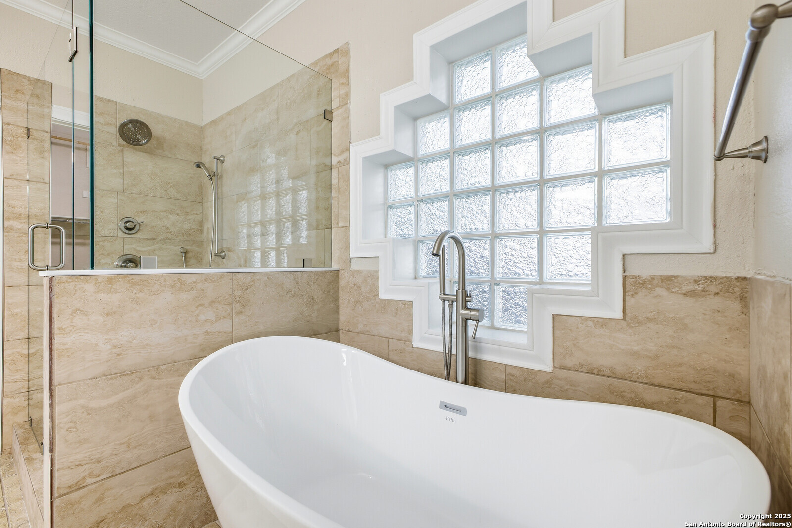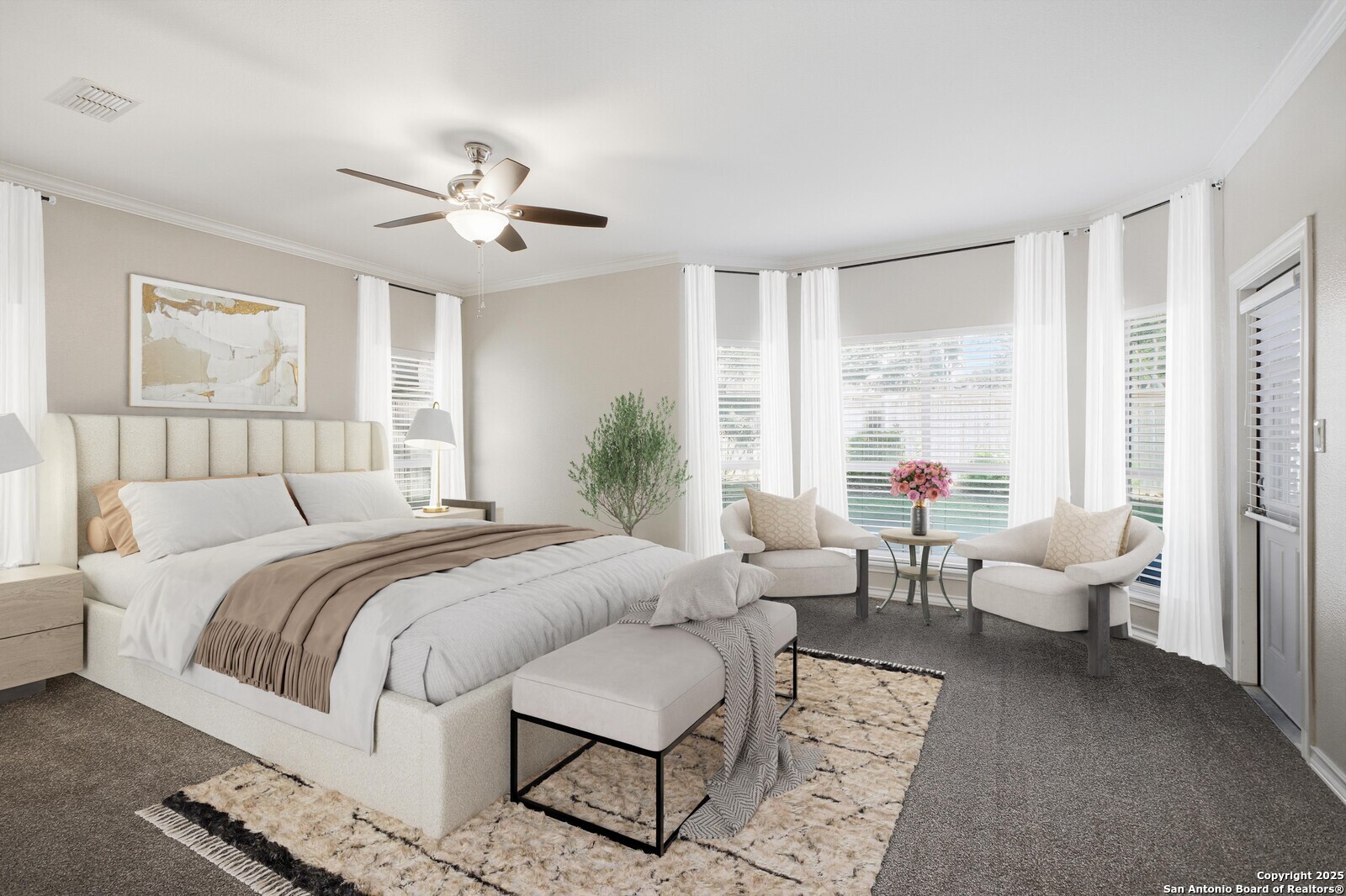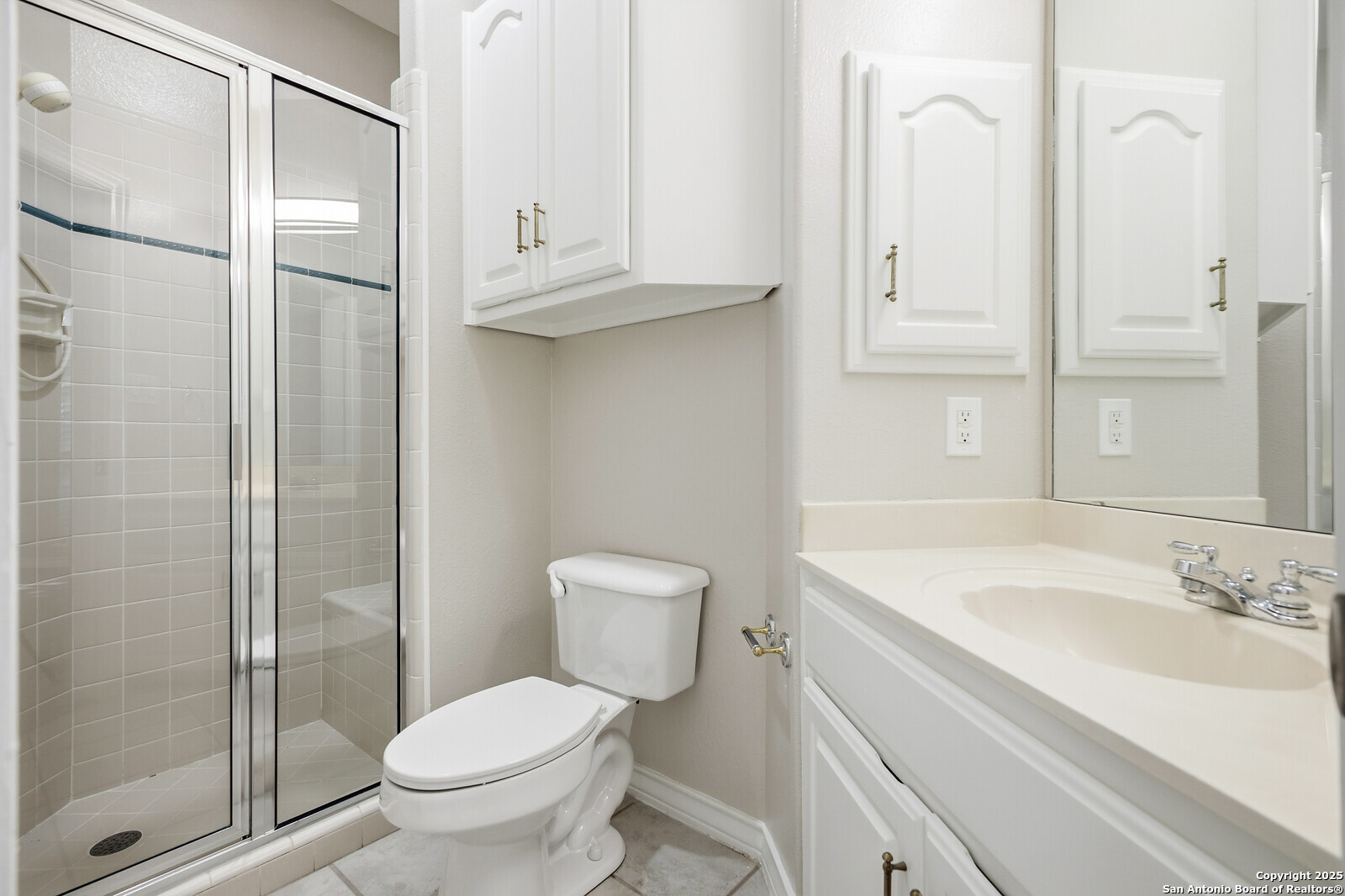 True, it's the truth....ONE STORY, 5 bedrooms and a study or flex space. Large dining room, large family room open to the large kitchen, new carpet, wood floors in family room and a screened in back porch to protect us from the mosquitoes! Did I mention a 3 car garage?? Yes, it's true. Enjoy a amazing kitchen for a cook that needs space! New Oven and Microwave. Primary bath has been updated with large shower and standing soaking fancy tub. Cabinets in baths and kitchen are a beautiful white, just freshly painted. Yard needs love. Show and sell! Sonterra Country Club is easy to join! So close to Stone Oak Medical Center!