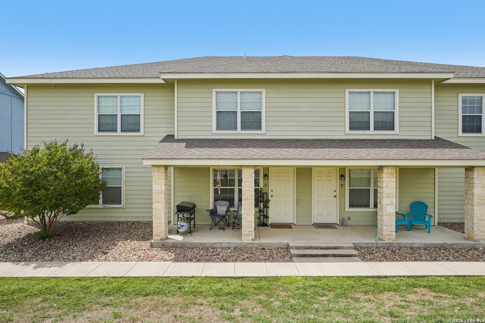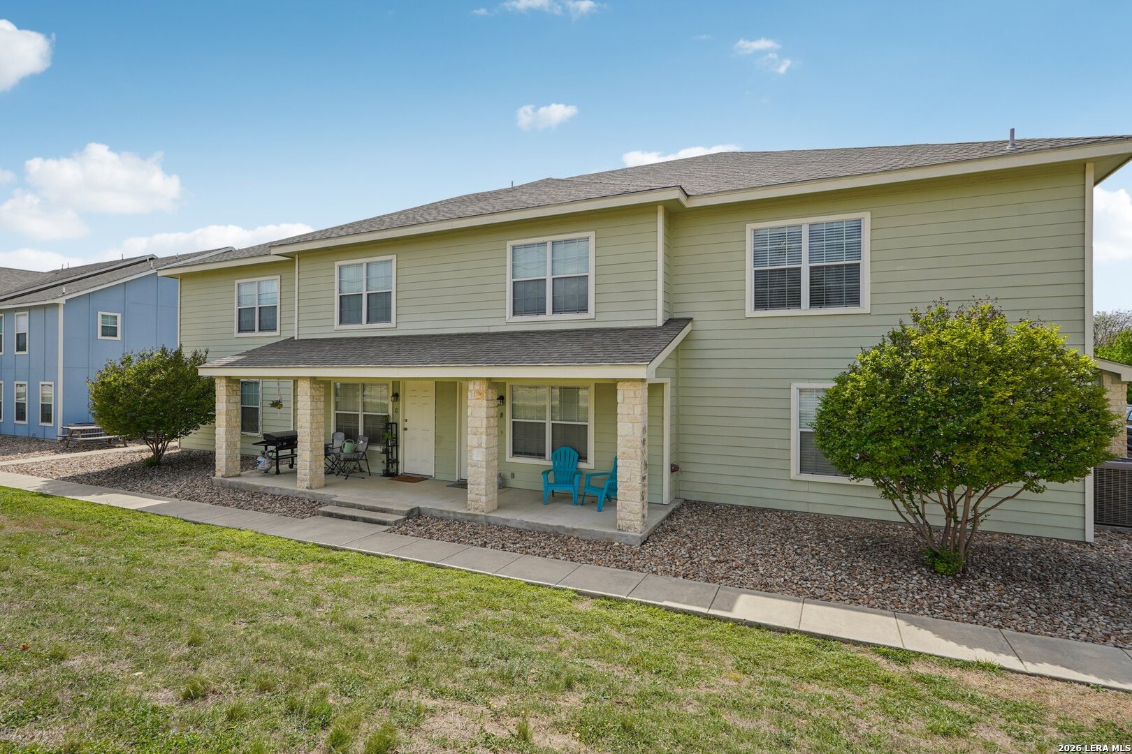Excellent Kerrville investment opportunity featuring four well-maintained two-story attached townhomes offered together as a package. Units A, B, C, and D are individually platted, providing flexibility to hold the property as a rental portfolio or sell units individually in the future. Units A and D offer approximately 1,280 SF with three bedrooms and two bathrooms, covered side porches, and two-car garages. Units B and C offer approximately 1,088 SF with two bedrooms and two bathrooms, covered front porches, and one-car garages. All units feature open-concept living, kitchen, and dining areas with tile flooring, granite countertops, neutral finishes, and a full appliance package conveying including refrigerator, range, built-in microwave, dishwasher, washer, and dryer. Exterior features include rock-veneered columns, HardiBoard siding, composite roofs, and xeriscaped landscaping for easy maintenance. HOA covers trash, water, sewer, and lawn maintenance. Conveniently located near parks, walking trails, the Olympic pool, and just minutes from Tom Daniels Elementary School, Hal Peterson Middle School, and Tivy High School. All units currently tenant occupied, offering immediate rental income and strong long-term investment potential.
