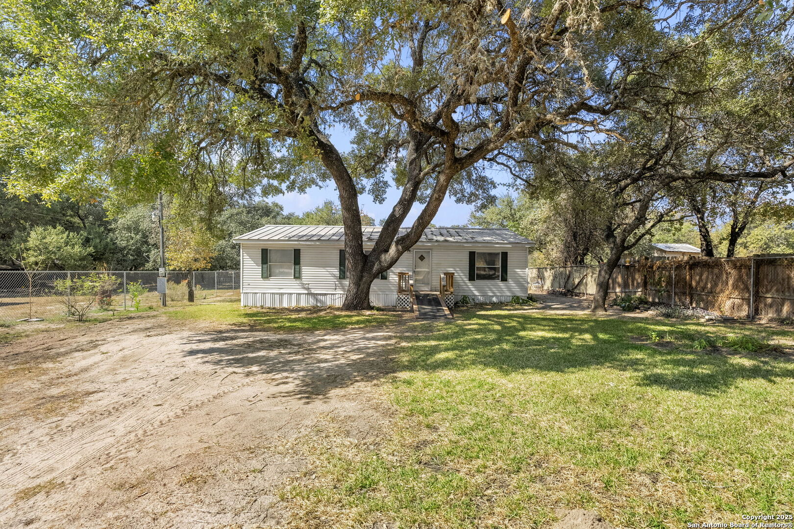 Welcome to this charming, move-in-ready double-wide mobile home, perfect for first-time homebuyers or investors! This 3-bedroom, 2-bath home offers a spacious and functional layout, complete with an indoor laundry room for added convenience. Situated on a 1/4-acre lot with mature trees and a sturdy chain-link fence, this property provides ample outdoor space, ideal for pets, gardening, or relaxing in the fresh country air. Located just off of Loop 1604, south of 281, you'll enjoy the peaceful feel of country living while being only a 30-minute drive to downtown San Antonio. Embrace a balanced lifestyle with easy access to city amenities and serene rural surroundings. This property is a fantastic opportunity-don't miss out! *HOME QUALIFIES FOR ZERO MONEY DOWN ** SELLER OFFERING TO COVER CLOSING COST AND WILL RETRO-FIT FOUNDATION TO MEET FHA REQUIREMENTS. ***IMPROVEMENTS INCLUDE: METAL ROOF, VINYL FLOORING THROUGHOUT/NO CARPET ** NO CITY TAXES OR HOA**