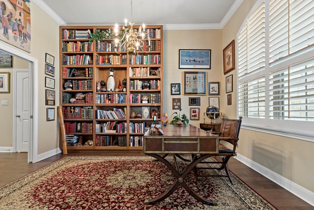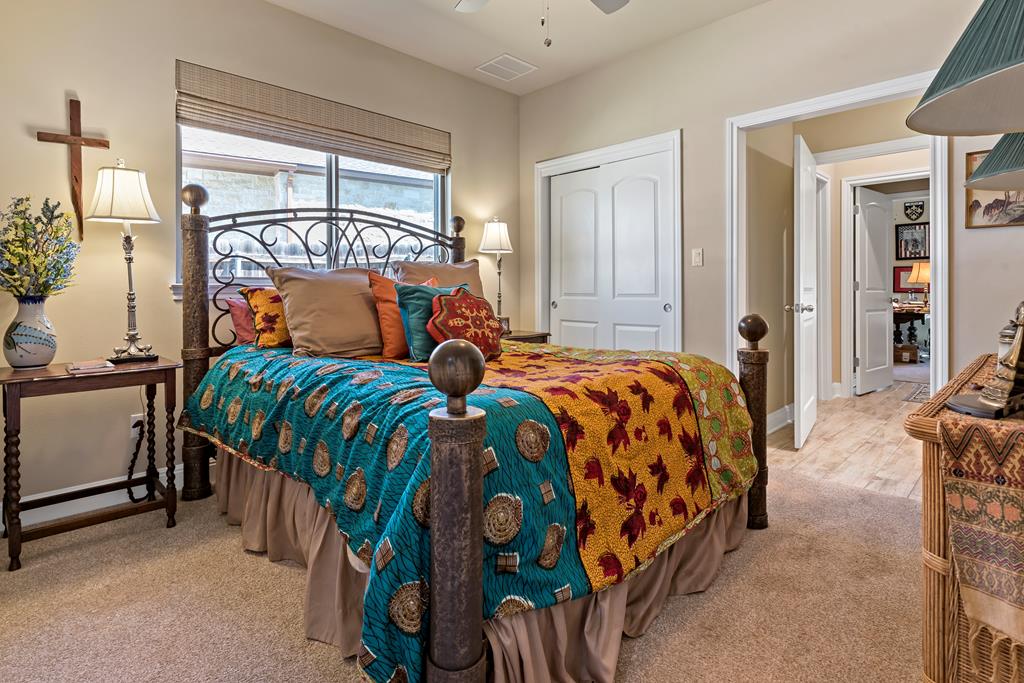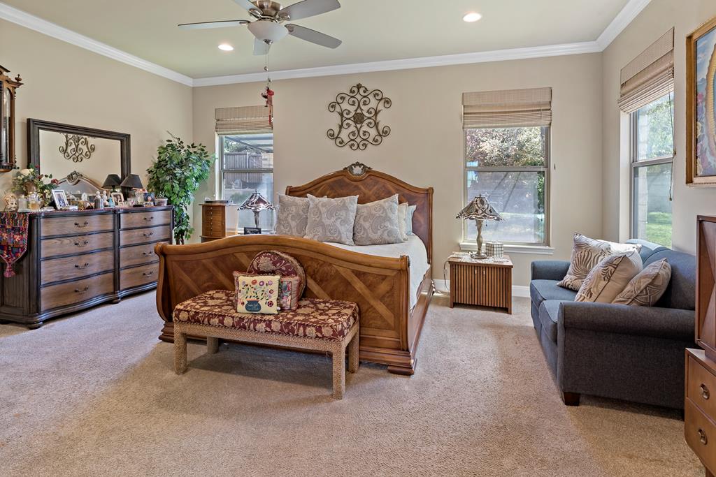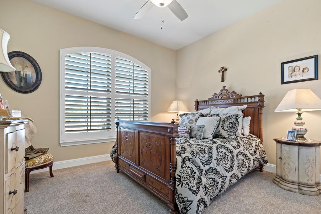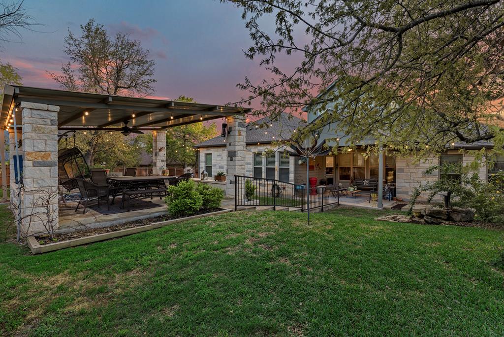 This is it! Super spacious and well maintained! 3,200+ square feet, 5 bedroom, 4 bathroom home PLUS home office and amazing outdoor space! Downstairs features thoughtful floor plan with open living/dining/kitchen. Split bedroom design with 3 guest bedrooms and 2 bathrooms on one side of the home, with primary bedroom and ensuite bath on the other side. Upstairs features 5th bedroom with full bathroom and plentiful storage space. Outside you'll find a custom pavilion for outdoor entertaining and charming water fountain. Other features include spacious two car garage, custom window coverings, home generator and new carpet installed in primary bedroom and closet.
