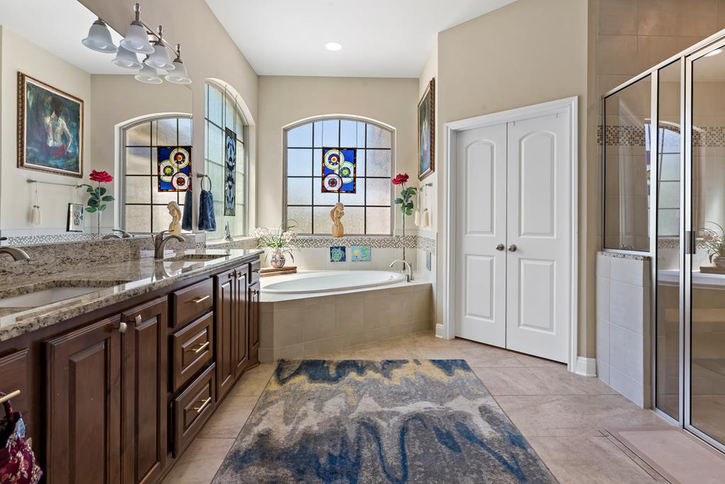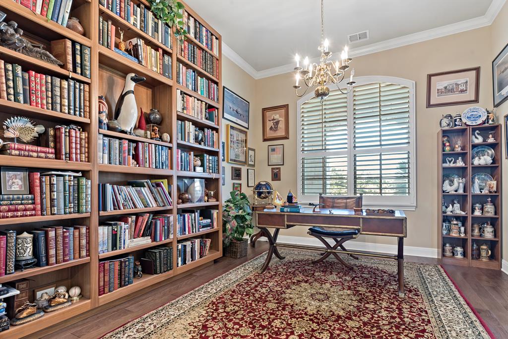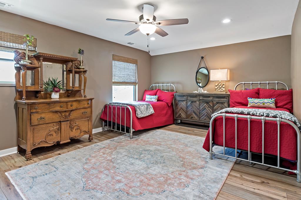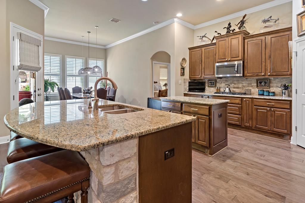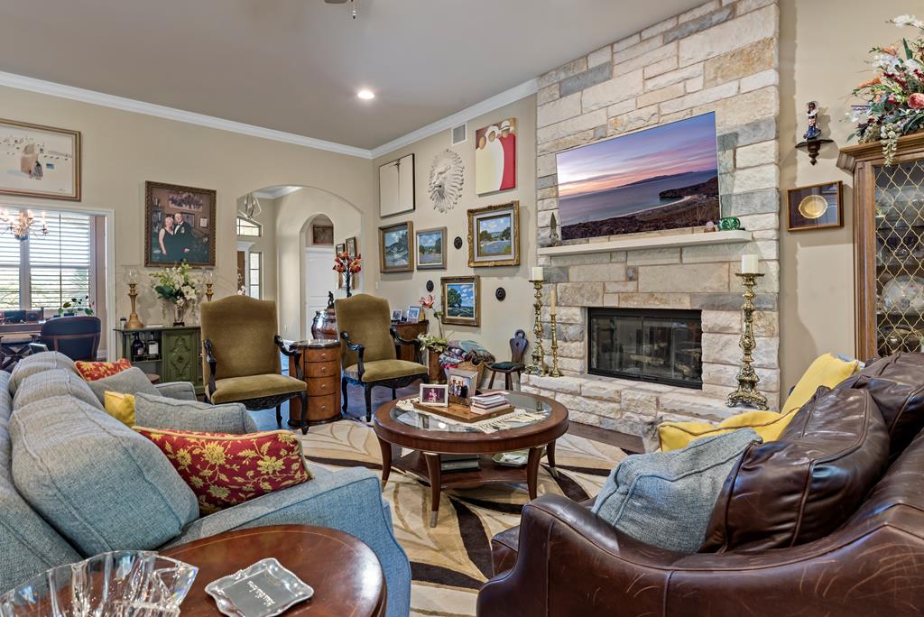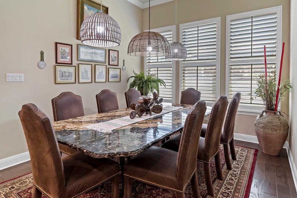 This is it! Super spacious and well maintained! 3,200+ square feet, 5 bedroom, 4 bathroom home PLUS home office and amazing outdoor space! Downstairs features thoughtful floor plan with open living/dining/kitchen. Split bedroom design with 3 guest bedrooms and 2 bathrooms on one side of the home, with primary bedroom and ensuite bath on the other side. Upstairs features 5th bedroom with full bathroom and plentiful storage space. Outside you'll find a custom pavilion for outdoor entertaining and charming water fountain. Other features include spacious two car garage, custom window coverings, home generator and new carpet installed in primary bedroom and closet.