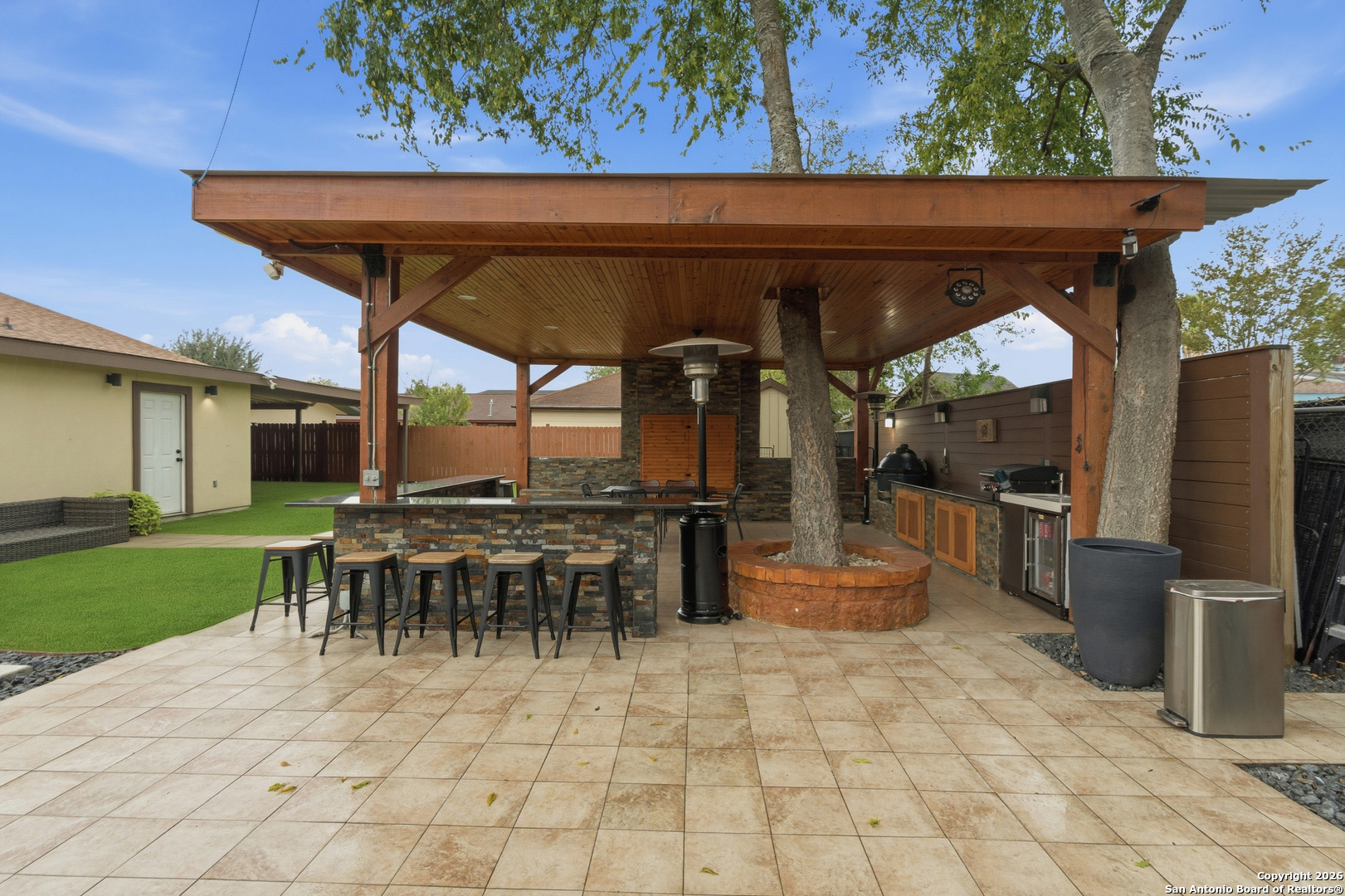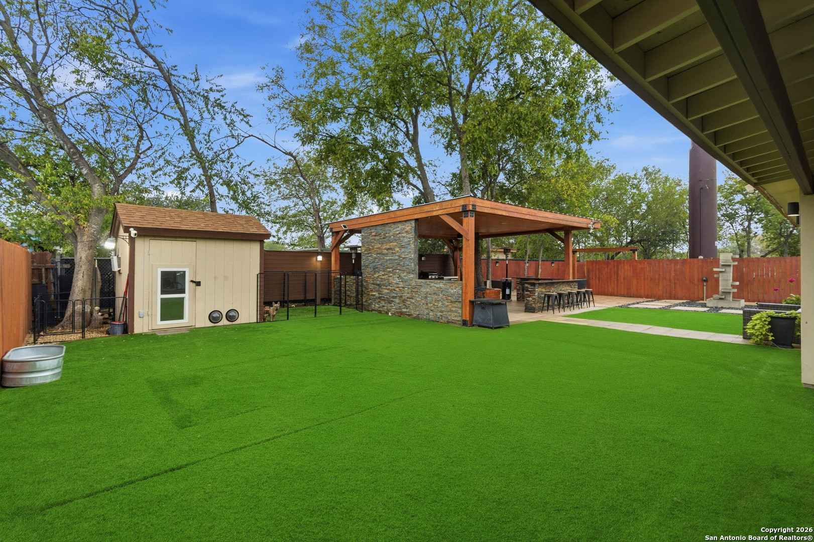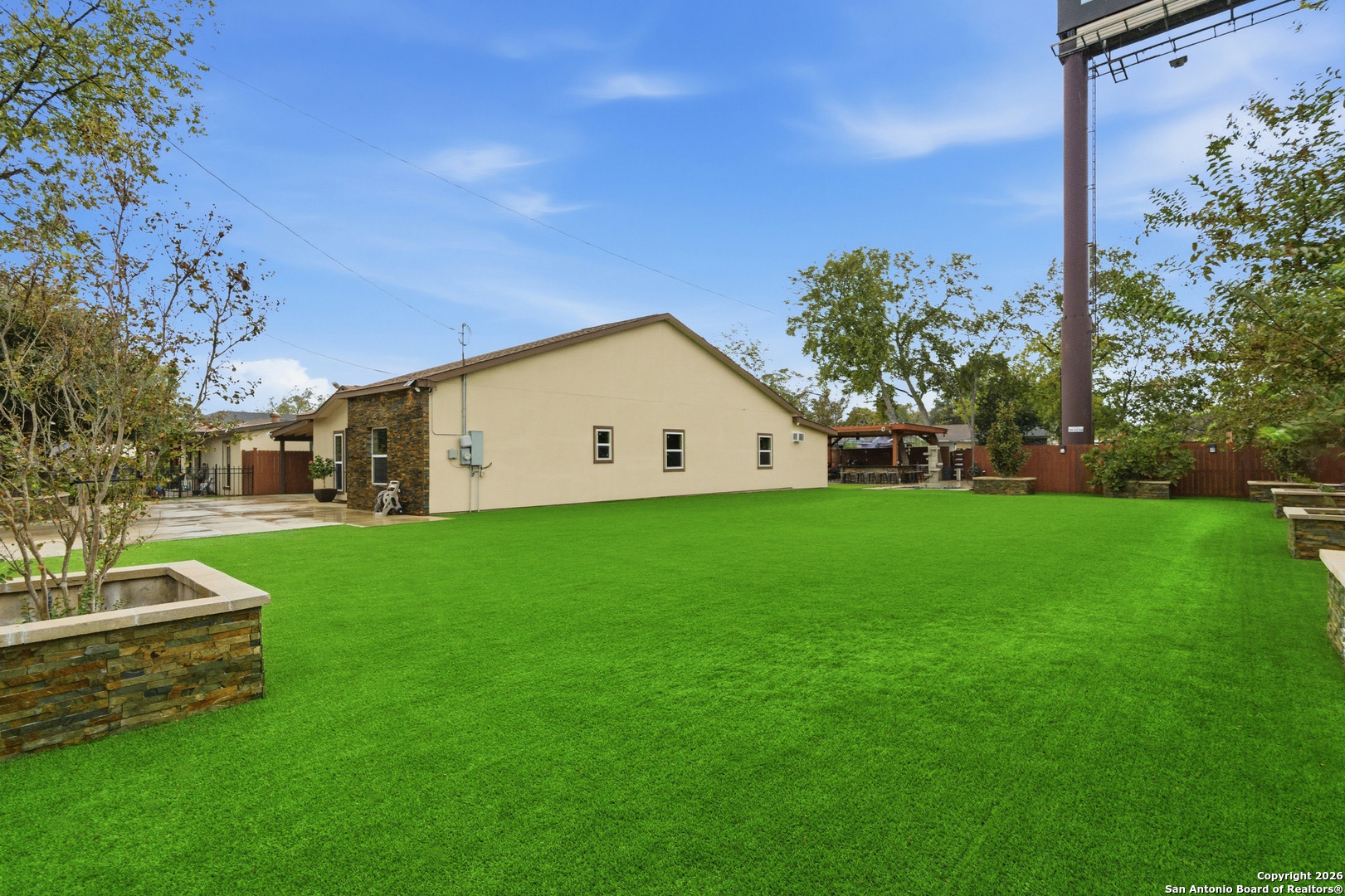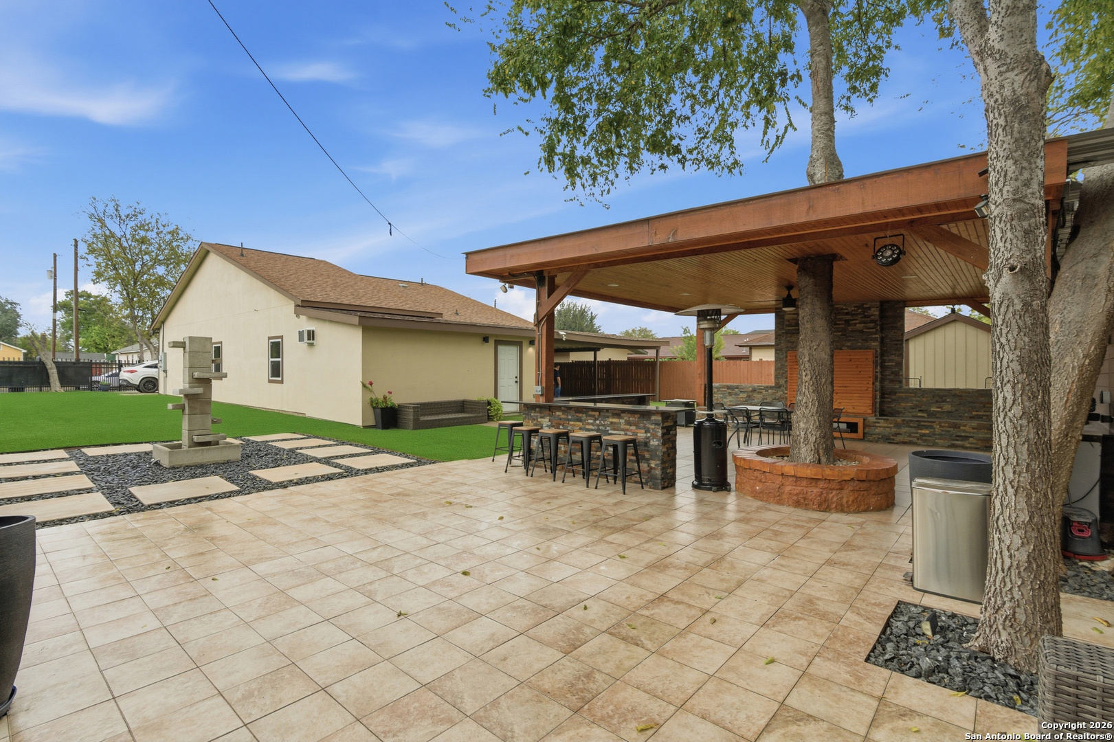 Welcome to this exceptional 4 bedroom, 2 bathroom home situated on two lots offering space, style, and endless possibilities. Step inside to enjoy high ceilings and an open-concept floor plan ideal for both everyday living and entertaining. The outdoor space truly sets this property apart. The spacious backyard, finished with low-maintenance synthetic turf throughout, creates a clean, modern look and year-round usability. A covered patio with a full exterior kitchen makes this home an entertainer's dream, perfect for gatherings, celebrations, or private events. With the additional lot, this property offers incredible flexibility and potential, whether for Airbnb/short-term rental use, hosting private events, or future expansion (buyer to verify use). Adding to its appeal, this home is centrally located near major highways, offering easy access to downtown, Lackland Air Force Base, and a variety of dining, shopping, and entertainment options. This is a rare opportunity to own a versatile property that combines comfort, functionality, and income potential all in one!
