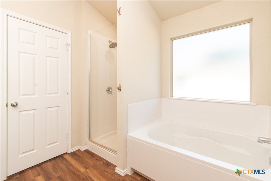This amazing home offers a well-designed layout with thoughtful features throughout. The kitchen is equipped with custom cabinets, granite countertops, a breakfast bar, a pantry, recessed lighting, and stainless steel appliances—perfect for both everyday living and entertaining. A dedicated laundry room with washer and dryer hookups adds convenience. The rooms are decent in size, and the primary bedroom provides a relaxing retreat with a separate shower, garden tub, and double vanity. Step outside to enjoy the privately fenced backyard, and appreciate the added benefit of a front-entry attached garage. Creekside Hills offers a swimming pool and play area for residents to enjoy!