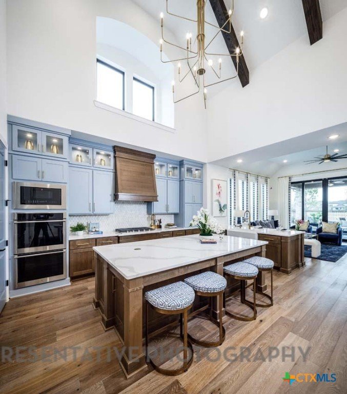 This is a spacious 4/4.5 baths/3 Car tandem garage, open floorplan backing to open space. The Vaulted ceiling in dining/kitchen and a beautiful kitchen with an island and peninsula, are great for entertaining. Enjoy a spacious family room, open to the dining/kitchen area with tall windows surround!