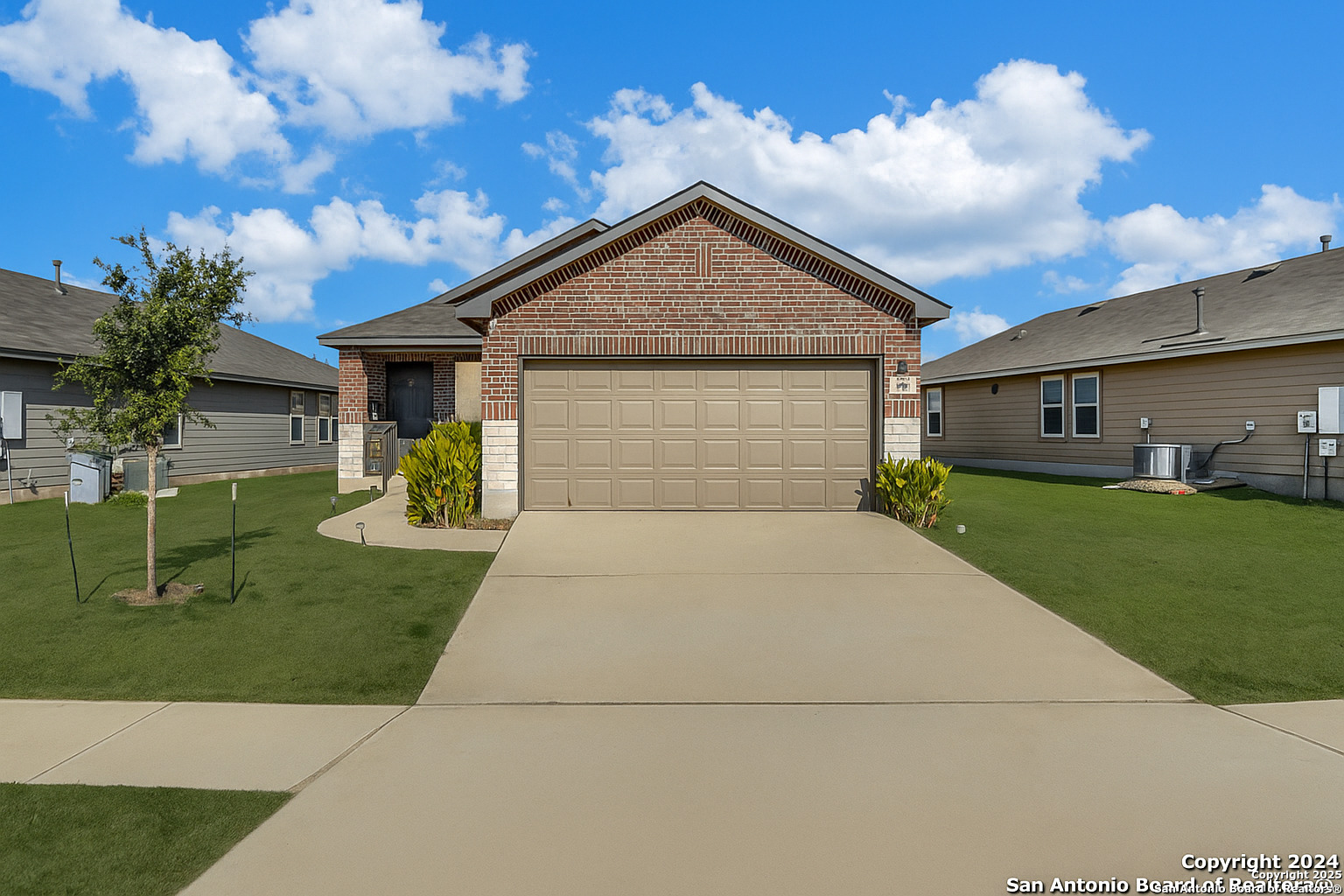 Discover the perfect blend of comfort and convenience in this beautifully designed 3-bedroom, 2-bathroom home nestled in the sought-after River Bend Golf Community in Floresville, Texas. With 1,296 sqft of thoughtfully planned living space, this one-story gem offers an inviting open floor plan, ideal for both relaxing and entertaining. The heart of the home features a modern kitchen adorned with granite countertops, stylish cabinetry, and a layout that flows seamlessly into the living and dining areas. The spacious primary suite boasts an oversized shower, ensuring your daily routines feel like a retreat. Step outside to enjoy the covered patio overlooking a fully landscaped oversized space equipped with full-yard irrigation and privacy fencing-perfect for weekend gatherings or serene evenings under the Texas sky. The home also includes blinds throughout for added privacy and comfort. Located just minutes from shopping, recreation, and only a 25-minute commute to San Antonio, this home combines the best of suburban tranquility with city convenience. Whether you're hitting the golf course or exploring the charming town of Floresville, you'll love calling this place home.