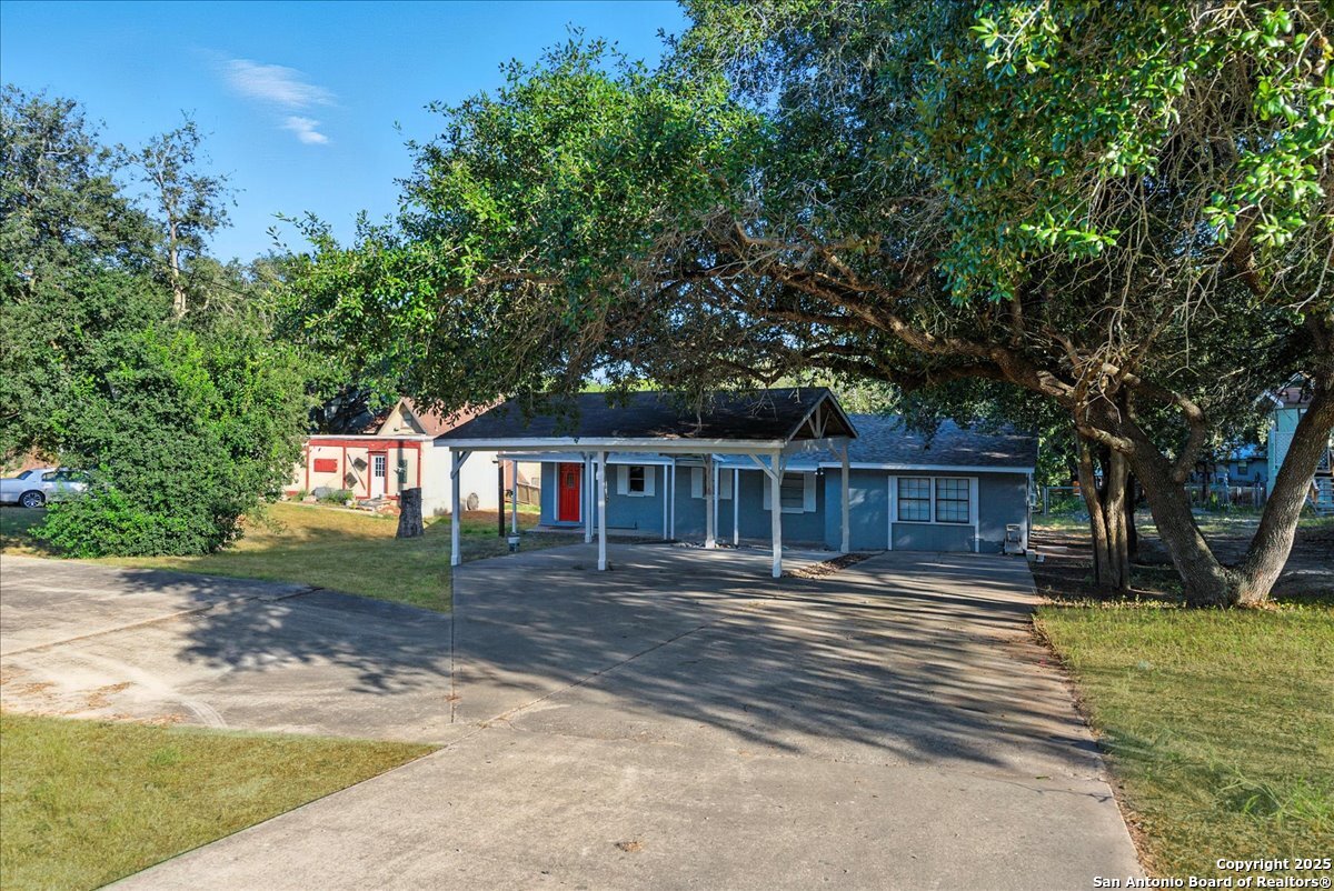 Discover comfort, character, and true country living in this spacious Live Oak County home. Set just outside the city limits, this property offers peaceful surroundings, generous living space, and a welcoming lakeside atmosphere-perfect for everyday living or weekend escapes. At the center of the home is a beautifully remodeled kitchen designed for both style and efficiency. You'll find stainless steel appliances, an oversized island with a built-in cooktop, a sleek stainless vent hood, a stone backsplash, and abundant cabinet and counter space. Whether you're cooking for guests or enjoying a relaxed evening in, this kitchen delivers both practicality and appeal. The main living area is warm and inviting, featuring a corner stone wood-burning fireplace, a wet bar, and a convenient corner guest bath. This spacious room is ideal for hosting or simply unwinding with loved ones. An elevated second living area adds even more flexibility-great for a game room, office, or an extra lounge space. The primary suite provides plenty of room to relax, complete with a beautifully renovated ensuite bath and a separate shower. The second bedroom also offers a full ensuite bath, and a third room-currently used as a bedroom-adds additional versatility. Outdoors, the property continues to impress. A large, covered patio sits just steps from the water, offering peaceful lake views and the perfect spot for outdoor gatherings. Enjoy direct lake access with your own boat slip, plus a storage building and a 2-car carport. Mature shade trees-including pecan, fig, and mulberry-create a serene, natural setting. Additional Highlights: * All-electric home * Fresh exterior paint * Community water * Two living areas * Wet bar * Formal dining room * Spacious layout with room to grow Don't miss the chance to own this lakeside retreat in Arrowhead Cove. Schedule your showing today and experience the peaceful lifestyle this property has to offer!