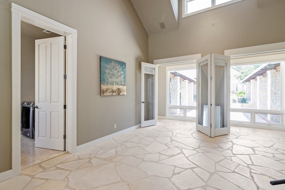 SUMMIT OF STYLE – Welcome to a home that truly stands out—an architectural showpiece crafted by acclaimed local architect Jon Pankratz and brought to life by Tony Martin Homes. Sitting on an expansive corner lot of nearly three-quarters of an acre, this property delivers both space and sophistication. The main house features three bedrooms and four and a half baths, while a separate guest house adds an extra bedroom and bath for even more flexibility. The moment you arrive, you will be impressed with the stately front elevation of this exceptional limestone home. Step inside, and you are greeted by soaring vaulted ceilings with exposed wood beams accented by the warmth of long leaf pine and real oak floors. Every detail, from the custom cabinetry and doors to the striking stone fireplace, creates an inviting atmosphere you'll want to come home to every day. The living, dining and kitchen all flow together seamlessly creating a warm atmosphere which is perfect for entertaining or spending a quiet night at home. The state of the art kitchen is outfitted with beautiful long leaf pine cabinetry, a generous seven-foot granite island, and professional grade appliances, including a Thermador 6-burner gas range, double ovens, griddle, Subzero fridge (new in 2021), and a whisper-quiet Miele dishwasher (2025) along with a huge walk-in pantry large enough for an culinary enthusiast. Adding to the daily living space is a spacious home office and lovely sun room setting area with limestone walls and a wood beamed ceiling just off the kitchen overlooking the lush landscaping – a lovely spot for morning coffee or reading. Meanwhile, the large master suite is a retreat all its own, with two separate bathrooms, each offering their own showers, sinks and walk-in closets. One bathroom even includes a private bath tub and vanity area. Down the limestone hallway overlooking the grandiose outdoor courtyard of the home, you will find two additional equally well appointed spacious guest bedrooms each with their own ensuite bathrooms. At the heart of the home is a large flexible space – perfect art studio, workout room or additional bedroom that connects to a utility room and the oversized two-car garage. Natural light pours in from walls of windows surrounding the courtyard, giving every room an open and airy feel. The home's unique floor plan is full of thoughtful details and finishing touches, designed for both beauty and practicality. GUEST HOUSE – Just across the courtyard sits a charming guest house, complete with its own master bedroom and bathroom with a walk-in shower, small kitchen area and attached two-car garage/workshop. The guest house offers a great setting for long-term guests, teens needing their own space or a quiet home office. OUTSIDE – You'll want to spend as much time outdoors as inside. The spacious front porch and a shaded back porch facing the courtyard offer the perfect spots to relax, grill, or enjoy a glass of wine with friends. The backyard is private and serene, enclosed by sturdy stone walls. Stone pavers and flower beds invite you to create your own garden oasis, while a separate grassy side yard with mature trees is perfect for pets—or for stringing up a hammock and enjoying a lazy afternoon. The home overlooks the front of Summit Forest Street and the corner lot with access from both the front and street behind providing access to both garage entrances, making coming and going a breeze. The home provides more than beauty, its also practical with tons of storage, a standing seam metal roof for durability and even has its own Kohler 26KW whole house generator installed in 2024. If you have been looking for not just a home but a real show place then you will love living in the SUMMIT OF STYLE !